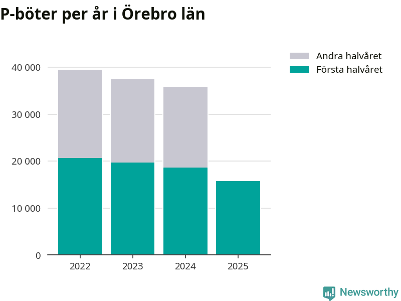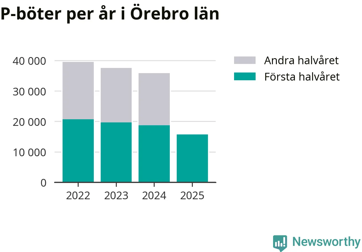Under det första halvåret 2025 har totalt 15 741 parkeringsanmärkningar utfärdats av kommunerna i i Örebro län. Det är 2 950 färre än under första halvåret 2024.