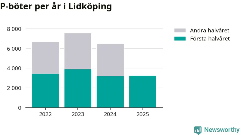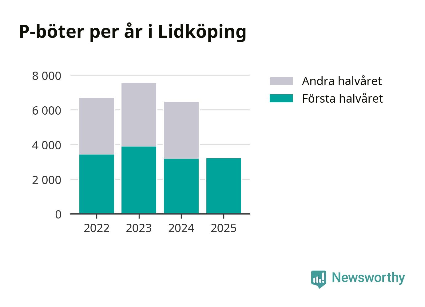 Under första halvåret 2025 har 3 213 parkeringsanmärkningar, med en total felparkeringsavgift på omkring 2,2 miljoner kronor, delats ut på gatumark i Lidköpings kommun. Det är ungefär lika många som året innan.