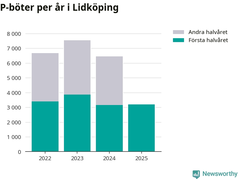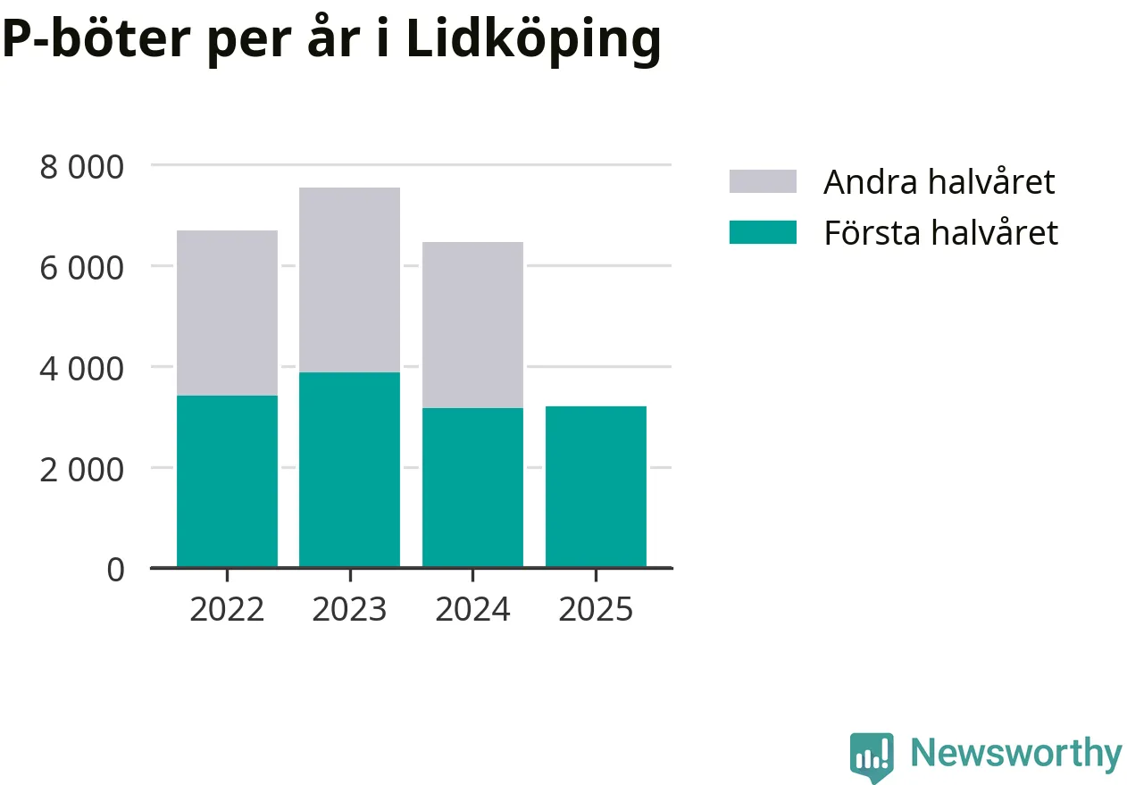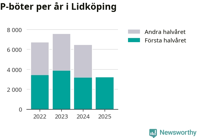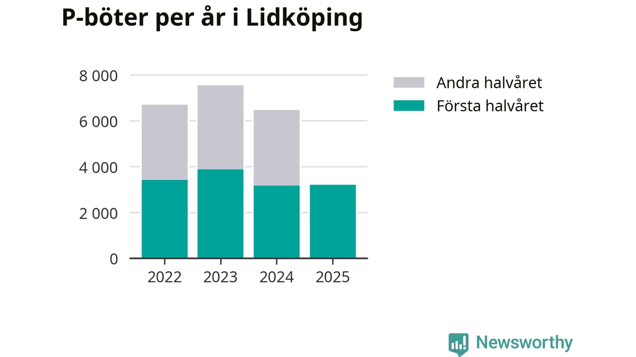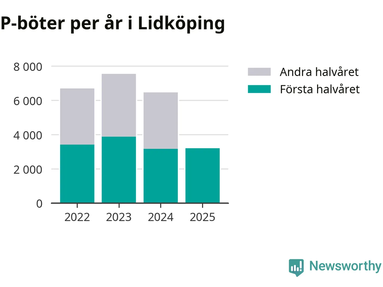 Totalt, från 1 januari 2022 till och med juni 2025, rör det sig om 23 915 parkeringsförsyndelser med ett totalt bötesbelopp på omkring 13,1 miljoner kronor i kommunen, visar Newsworthys genomgång av kommunernas parkeringsanmärkningar i Transportstyrelsens databas.