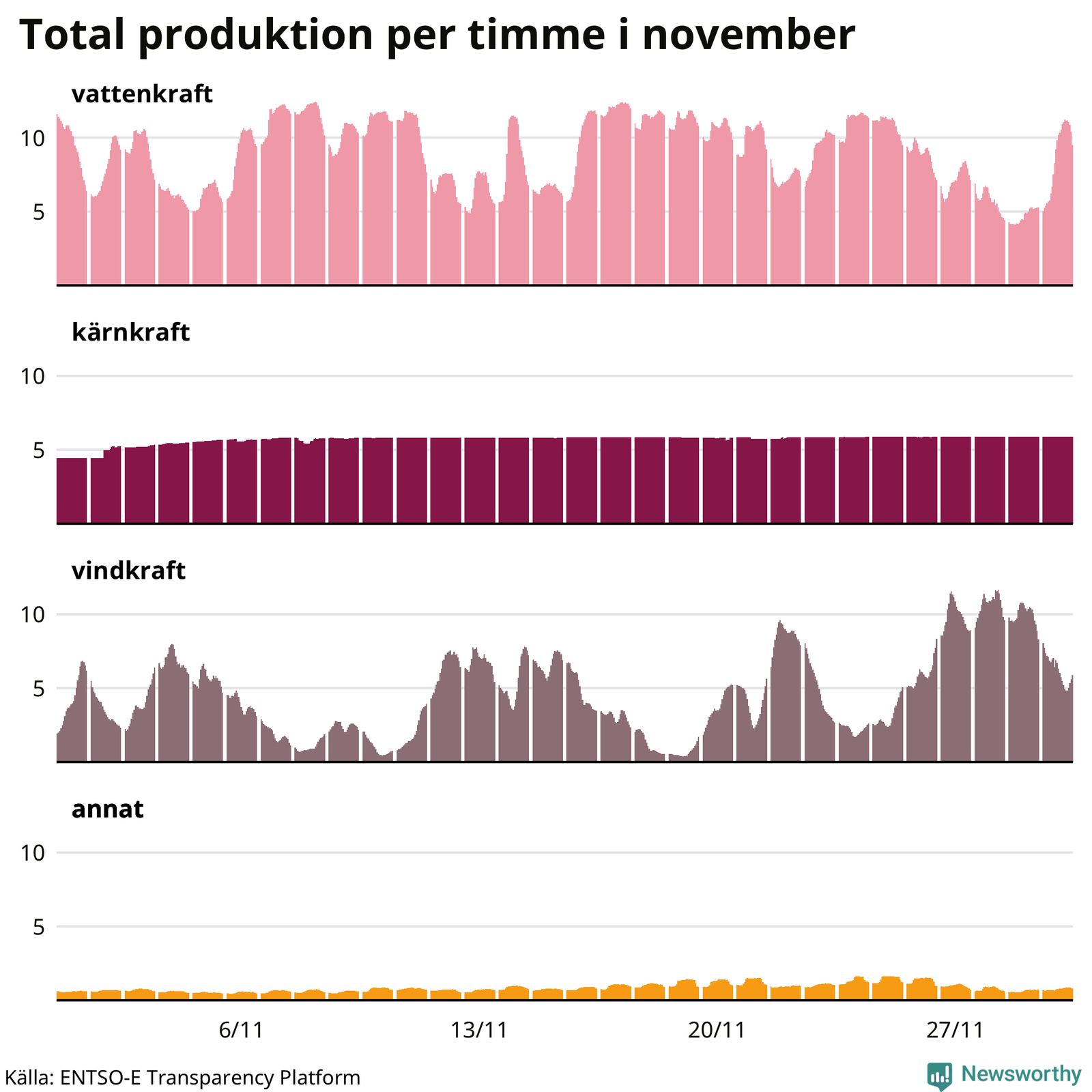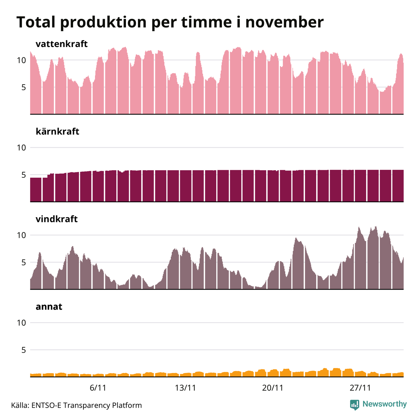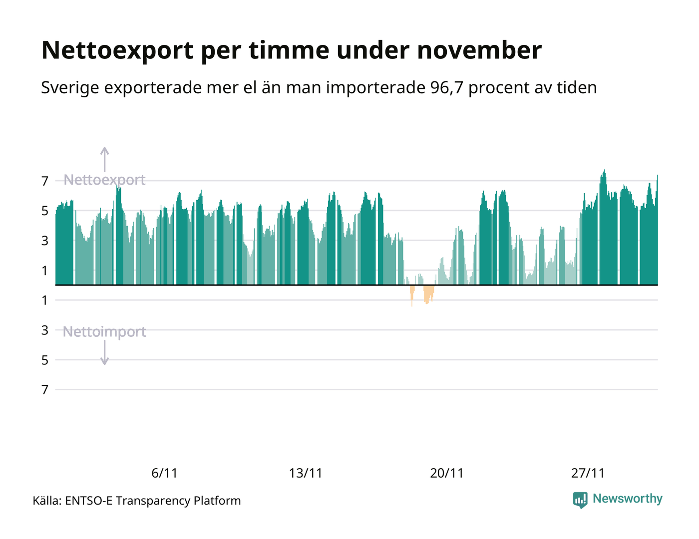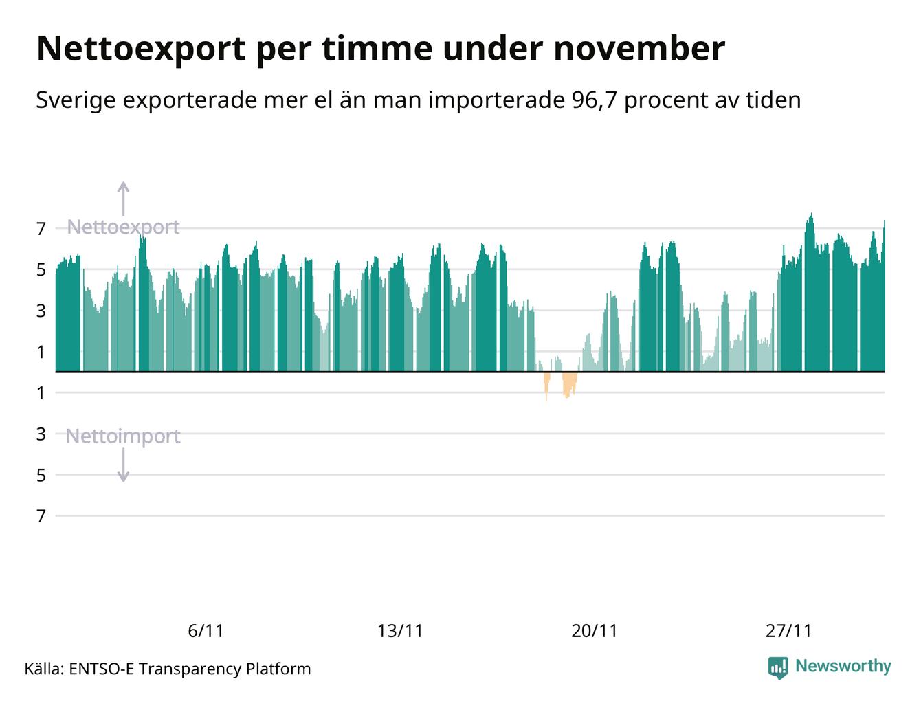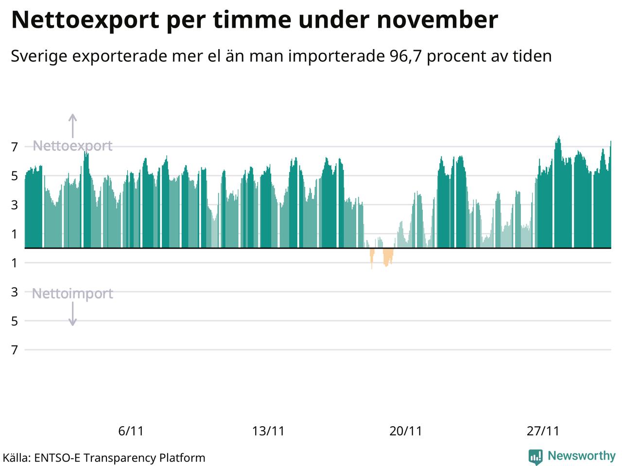 Det är också relativt ovanligt hela dygn där importen totalt är större än exporten, men det hände en gång under månaden – den 19 november.