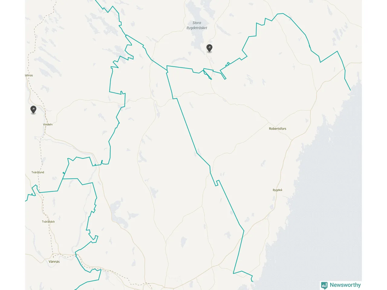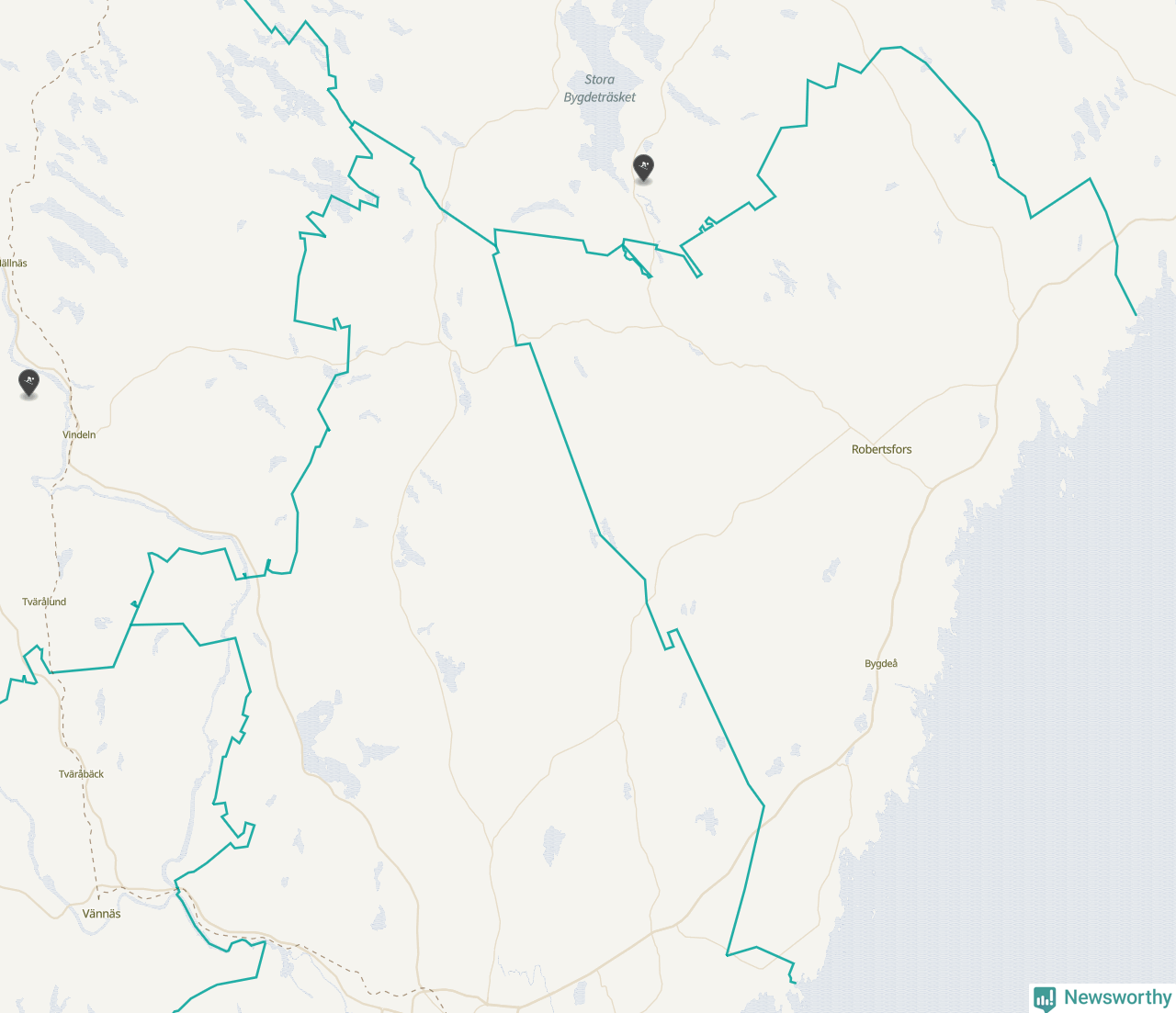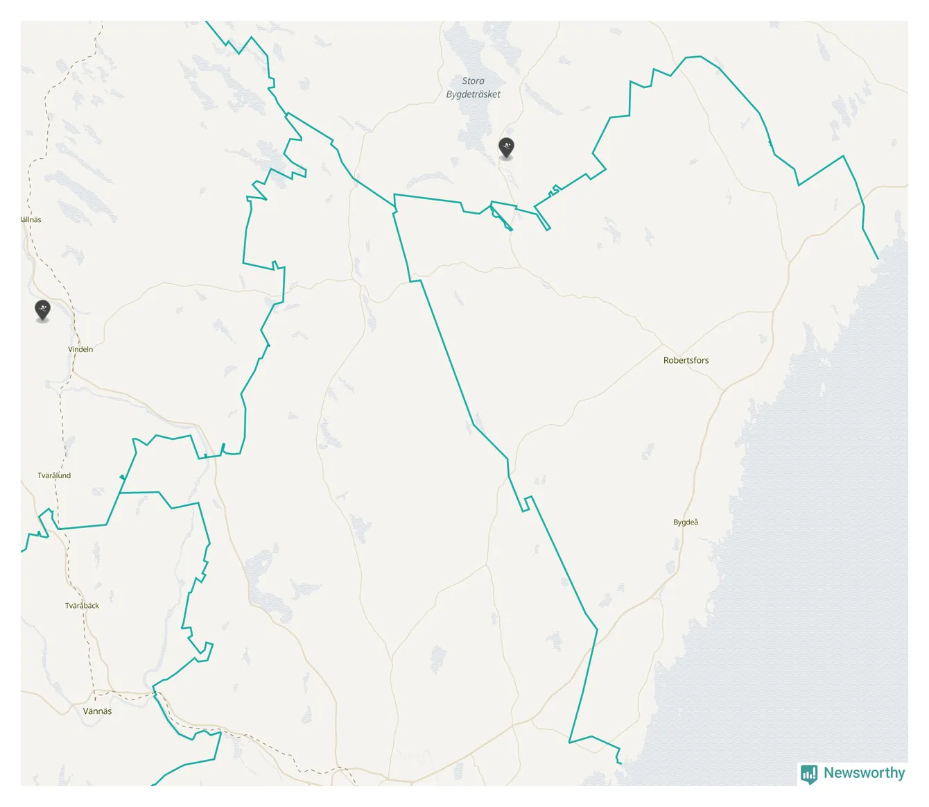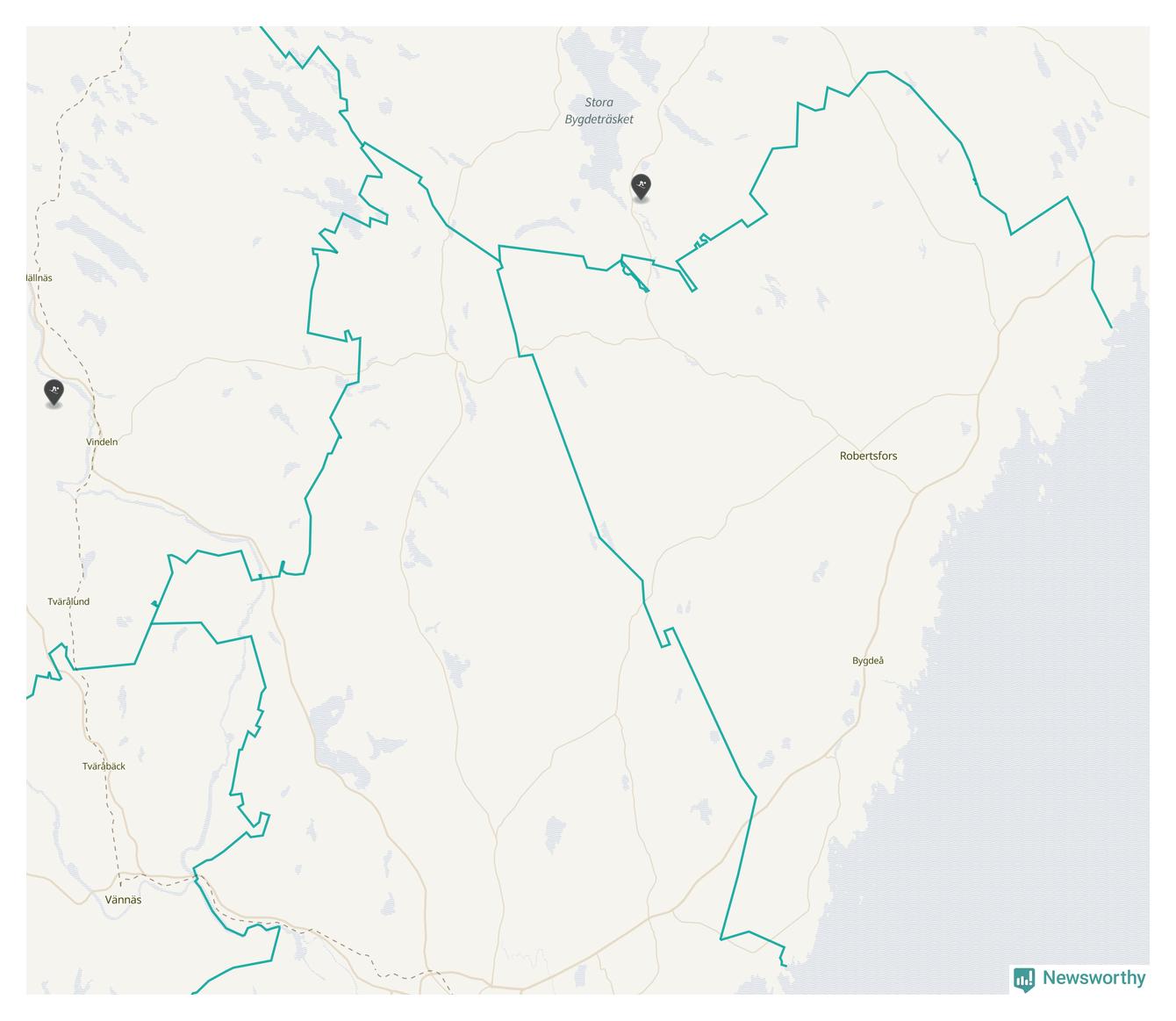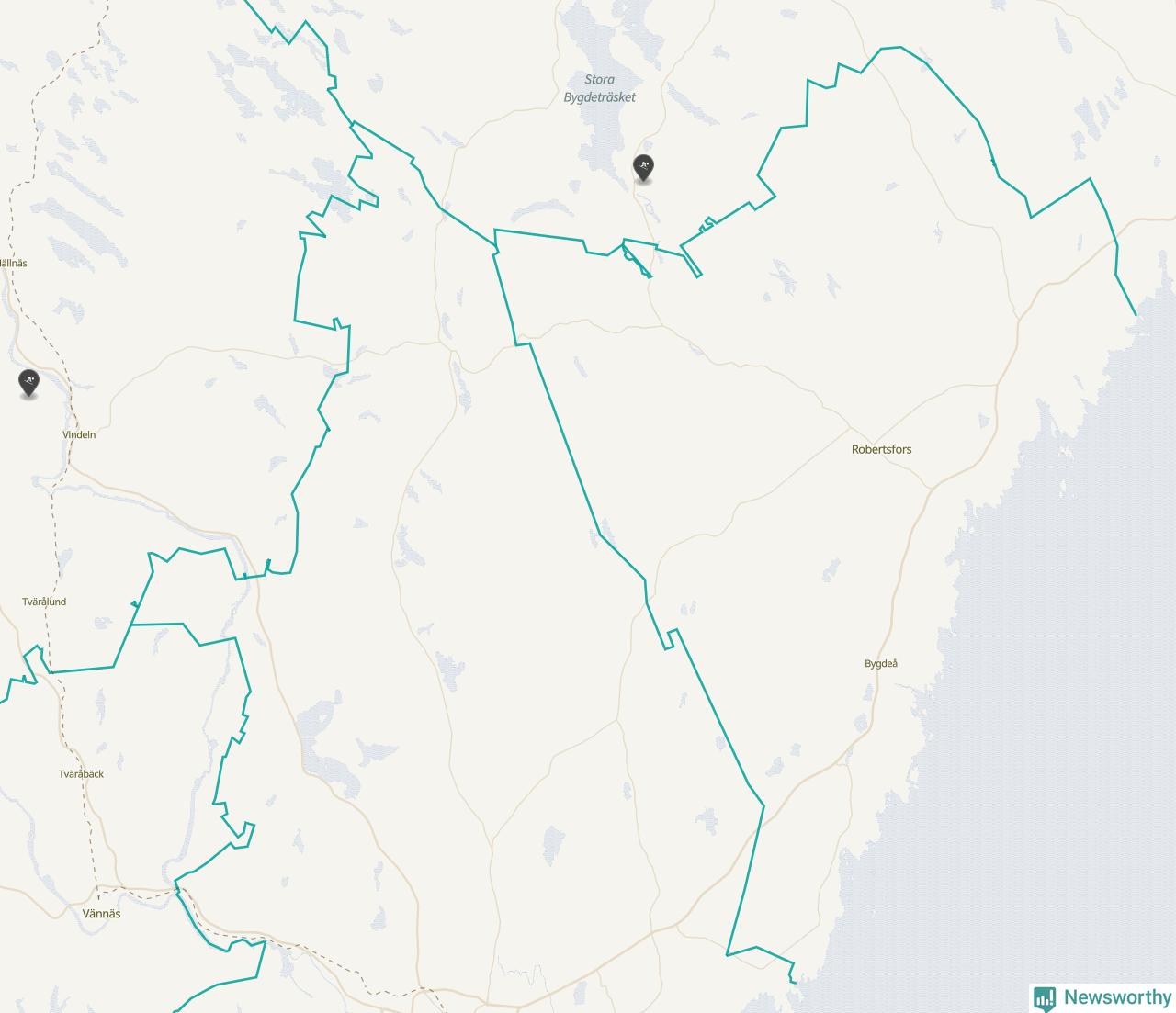 Karta över Robertsfors kommun