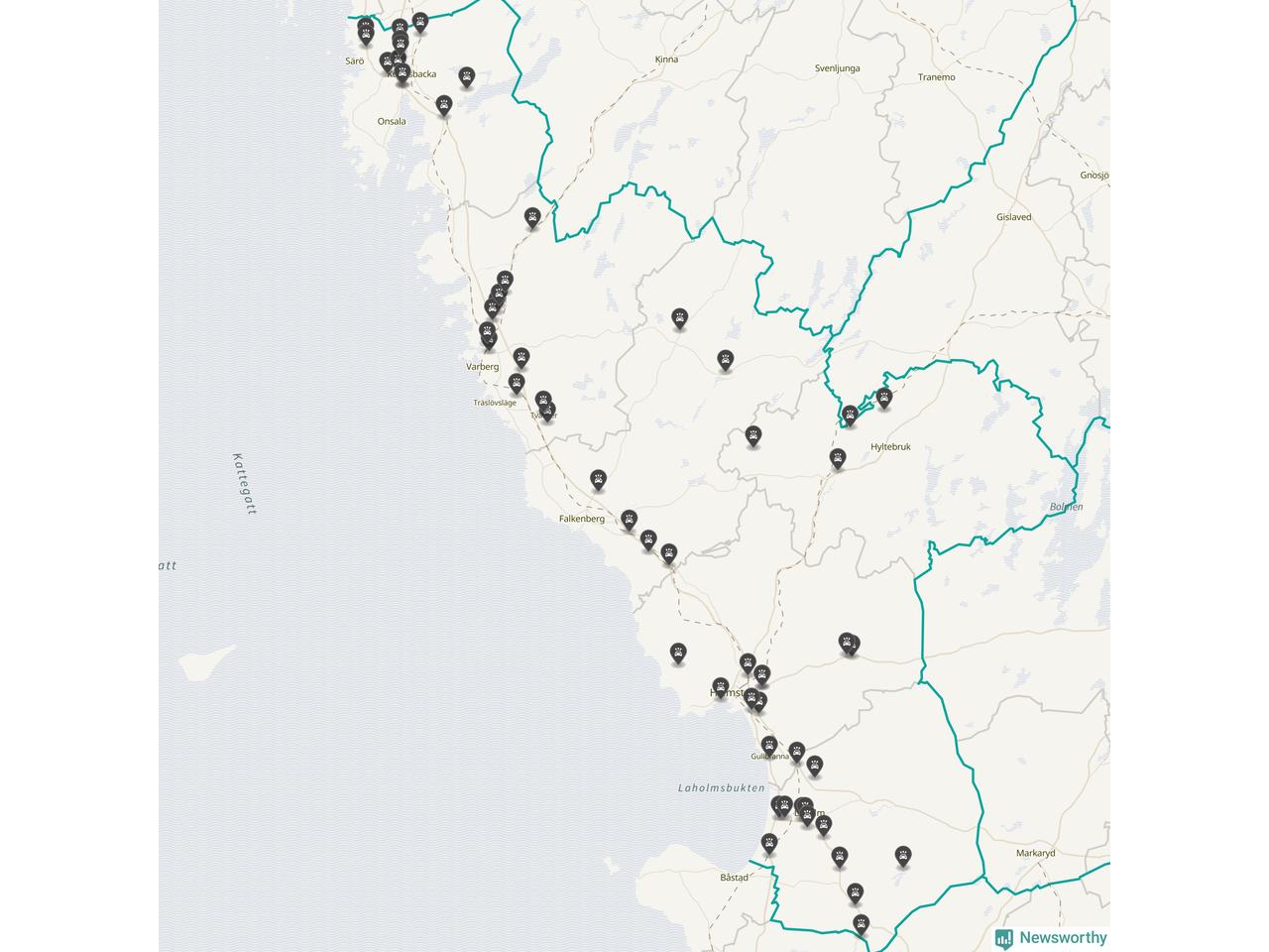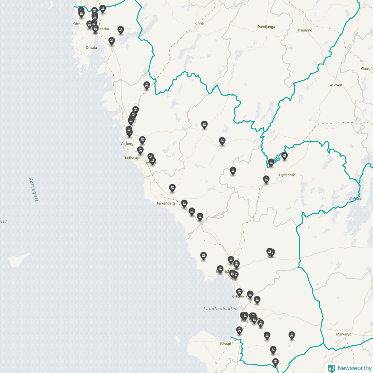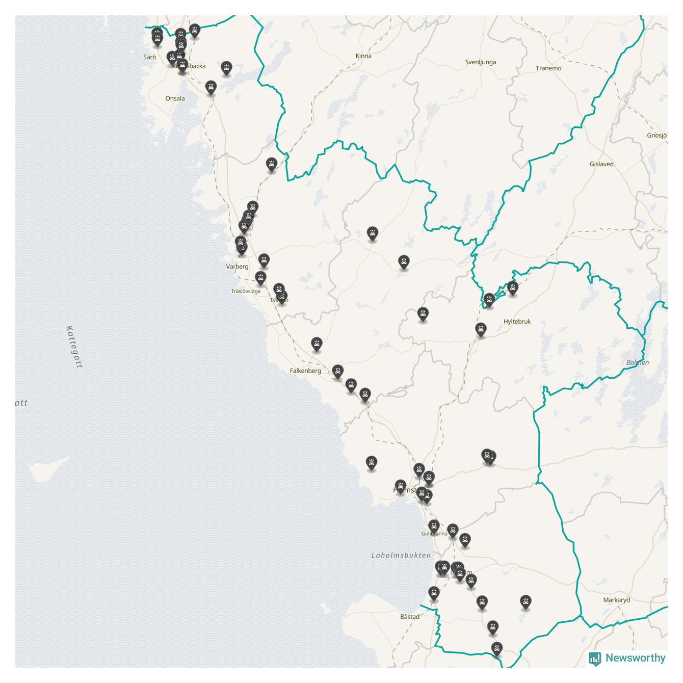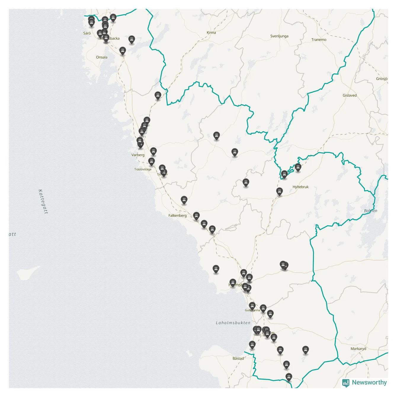I Hallands län var trafikolyckorna fler än under samma månad i fjol: 58 olyckor längs de stora vägarna i länet. Det visar data från Trafikverket som Newsworthy sammanställt.