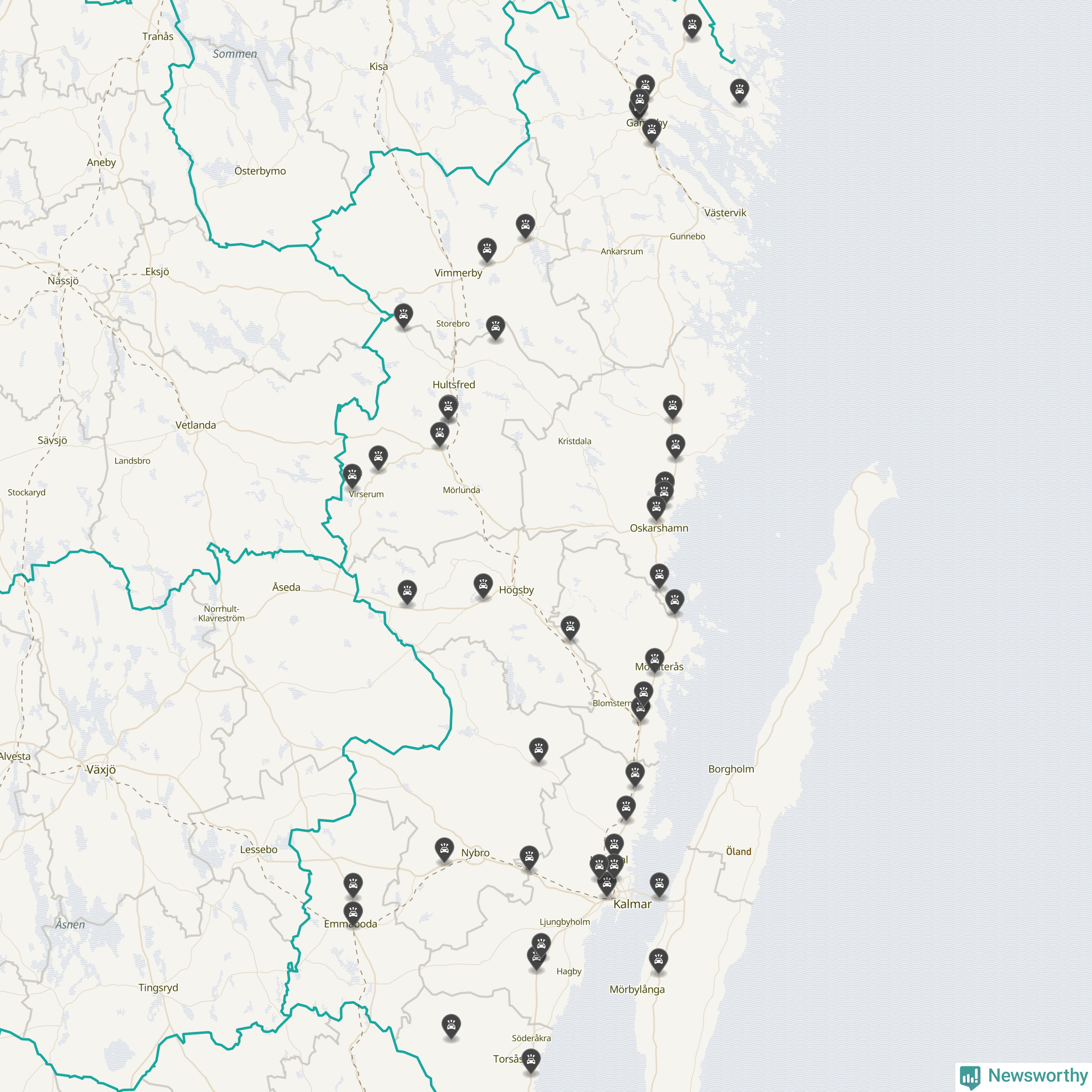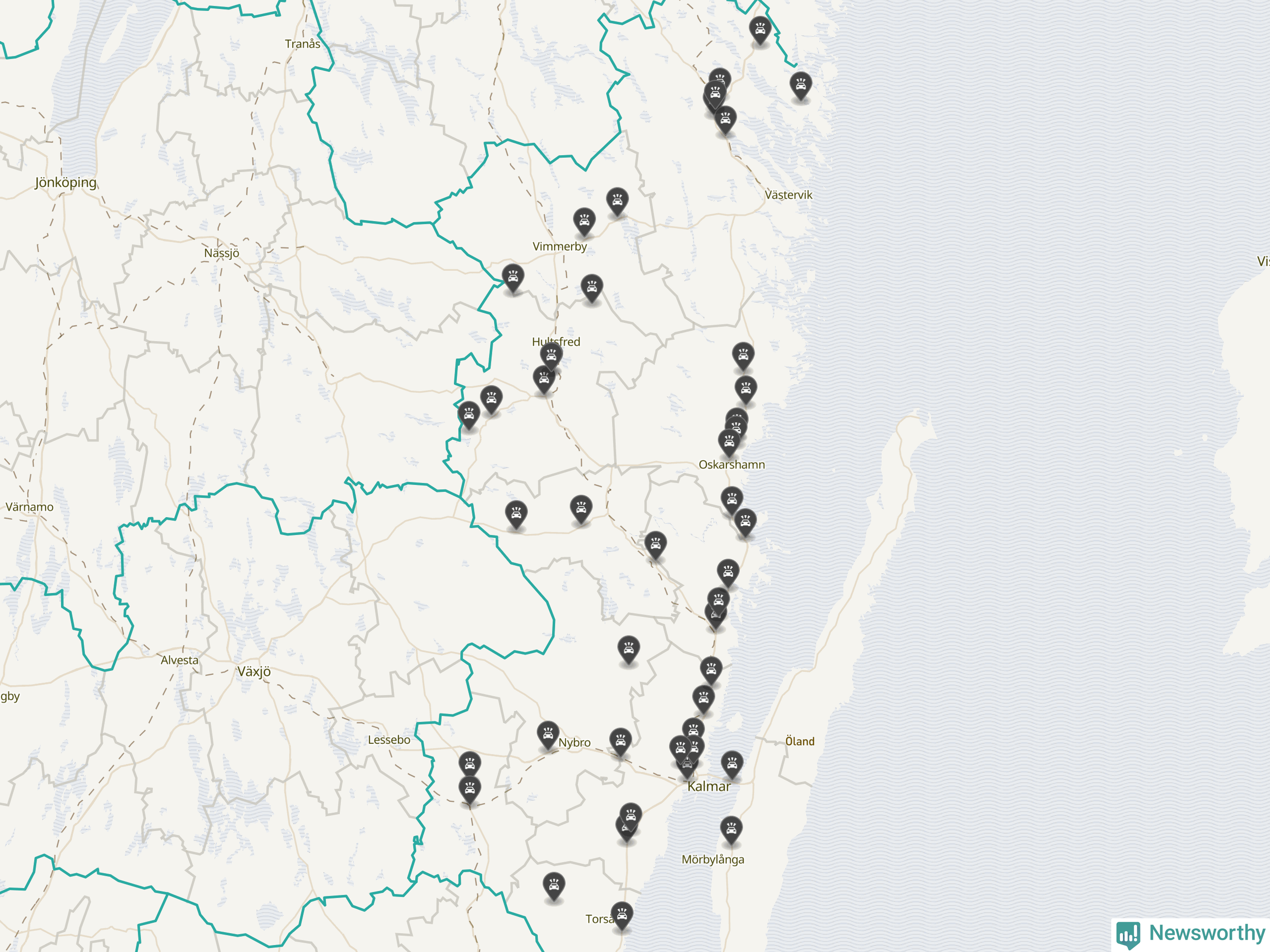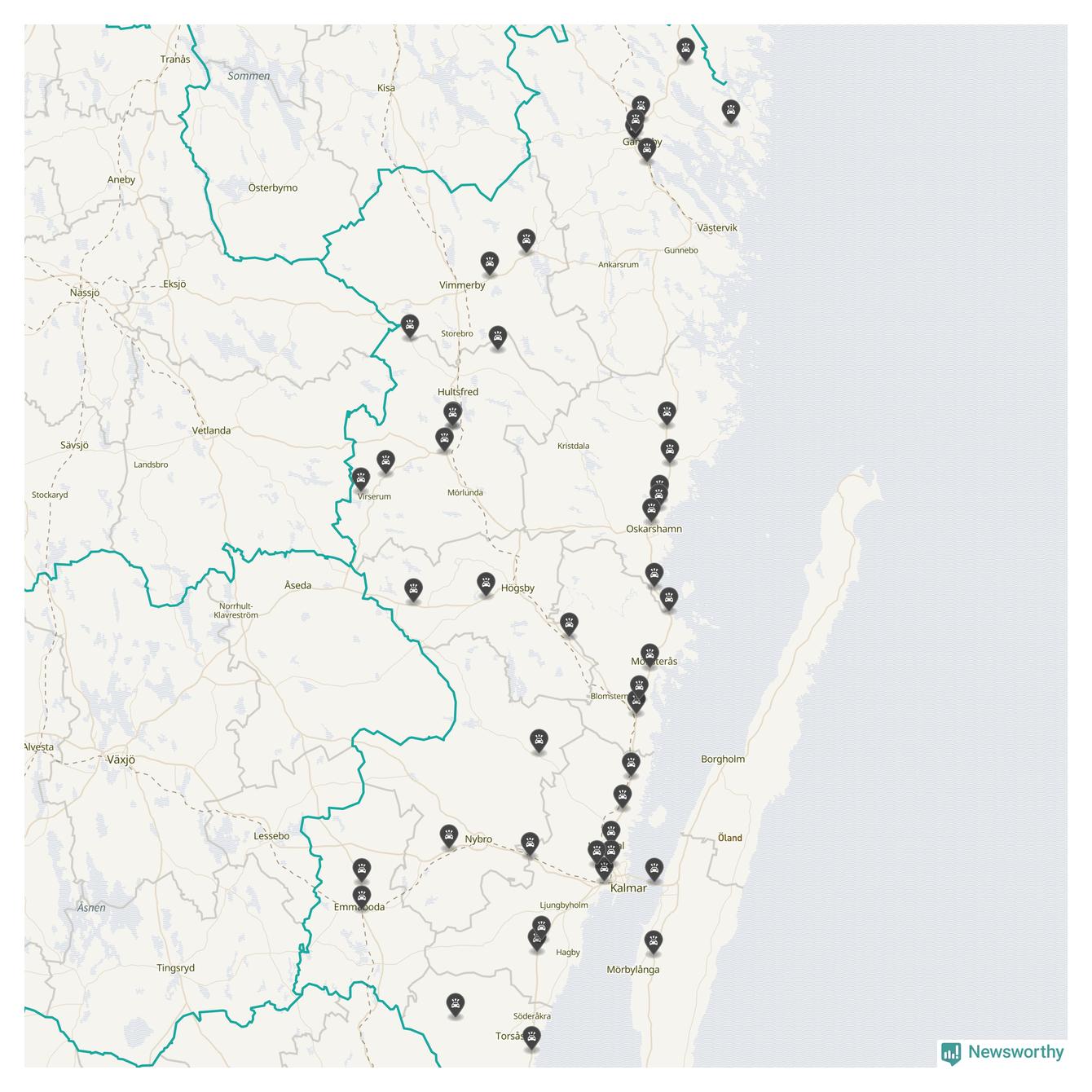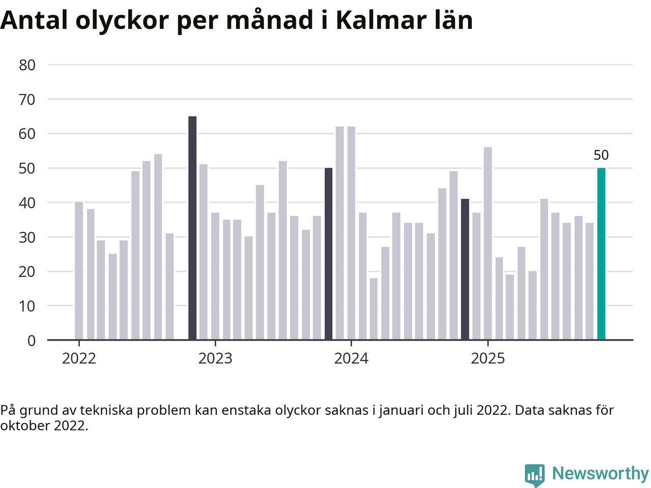 I Kalmar län var trafikolyckorna fler än under samma månad i fjol: 50 olyckor längs de stora vägarna i länet. Det visar data från Trafikverket som Newsworthy sammanställt.