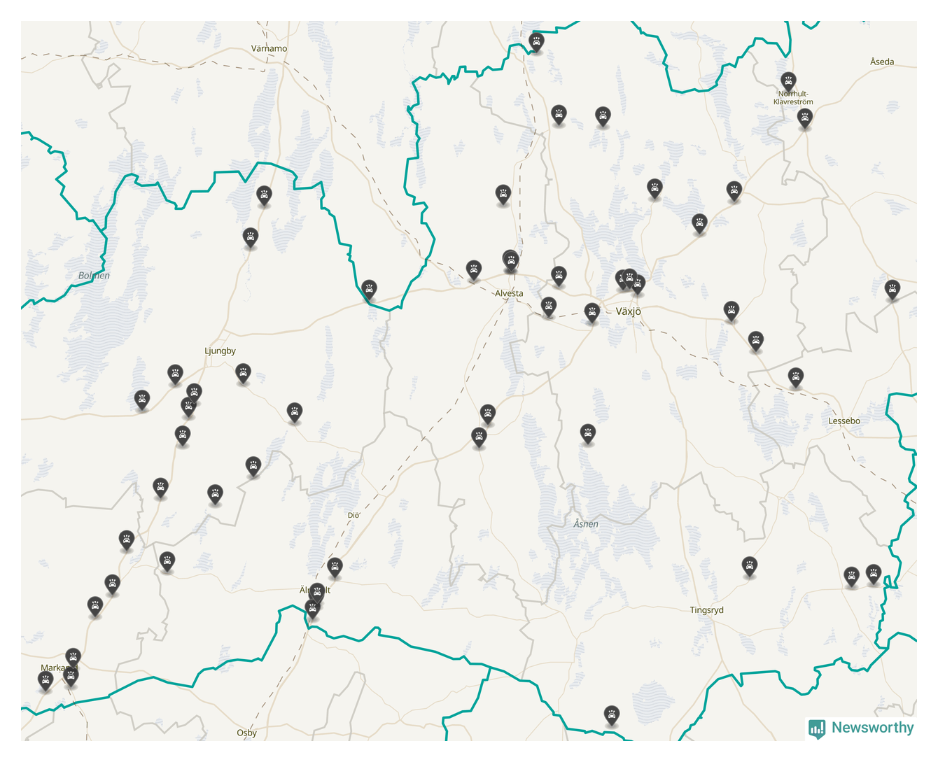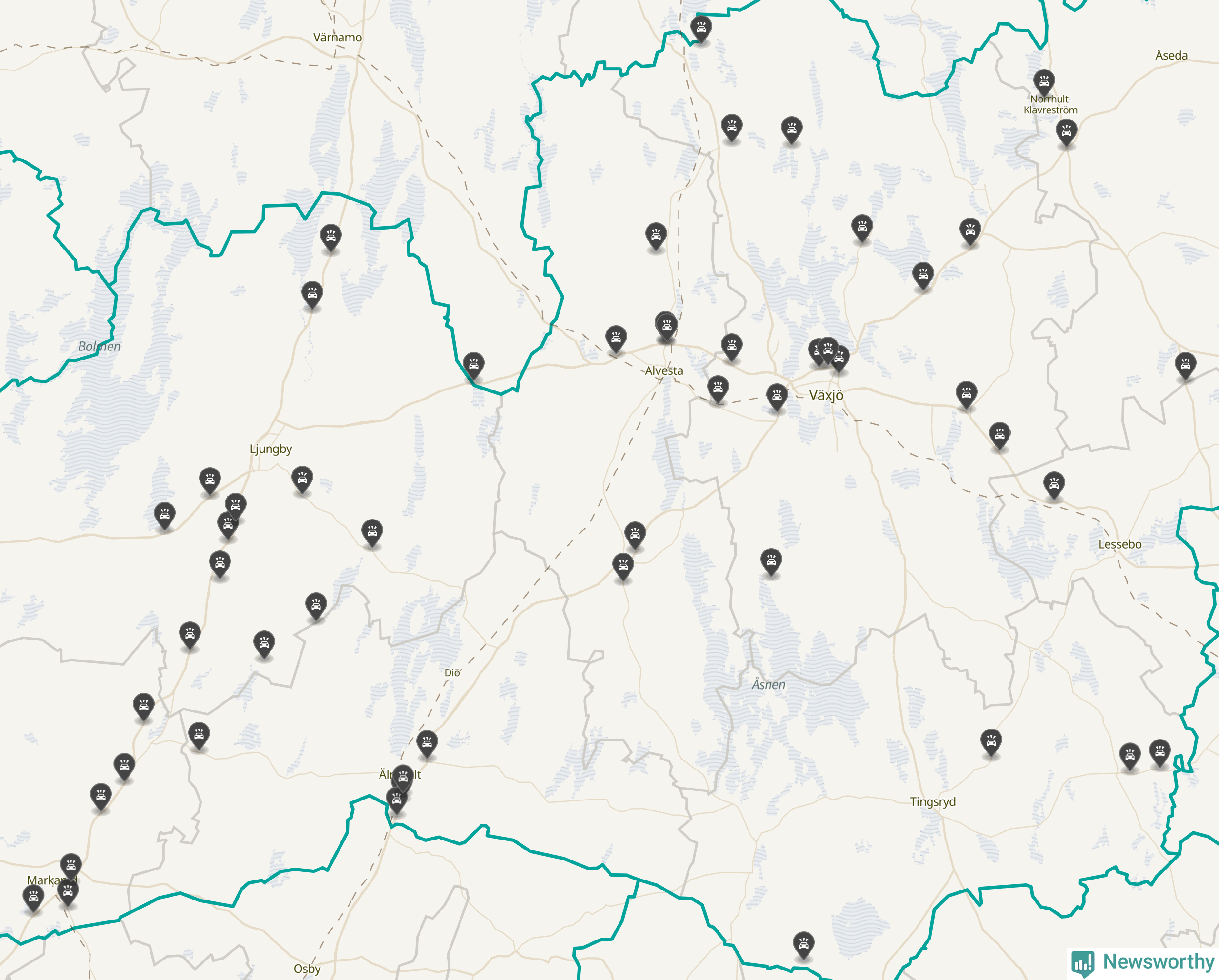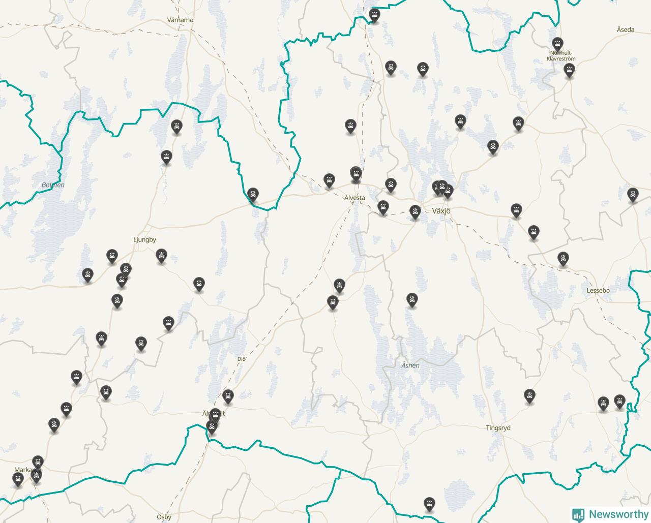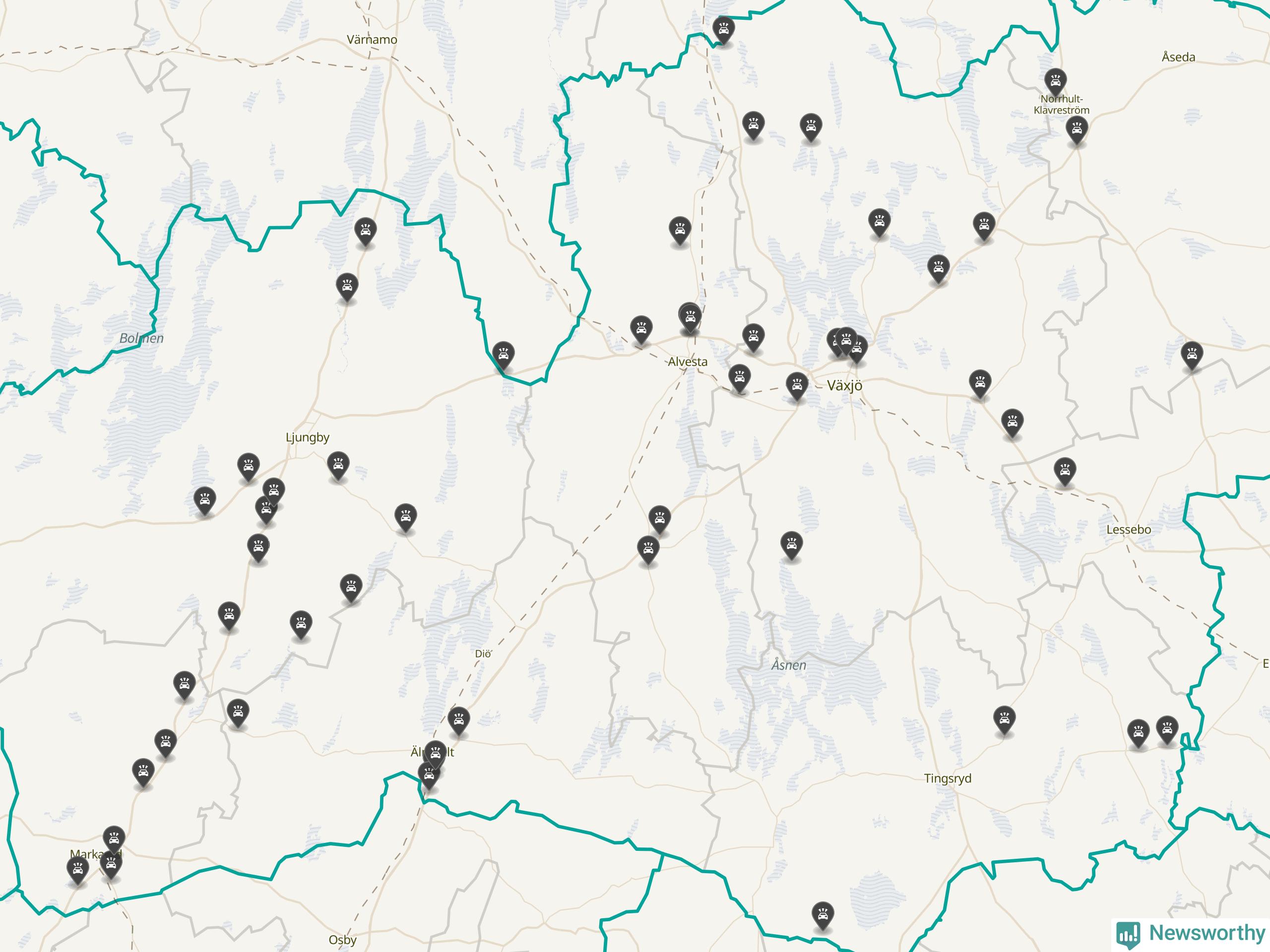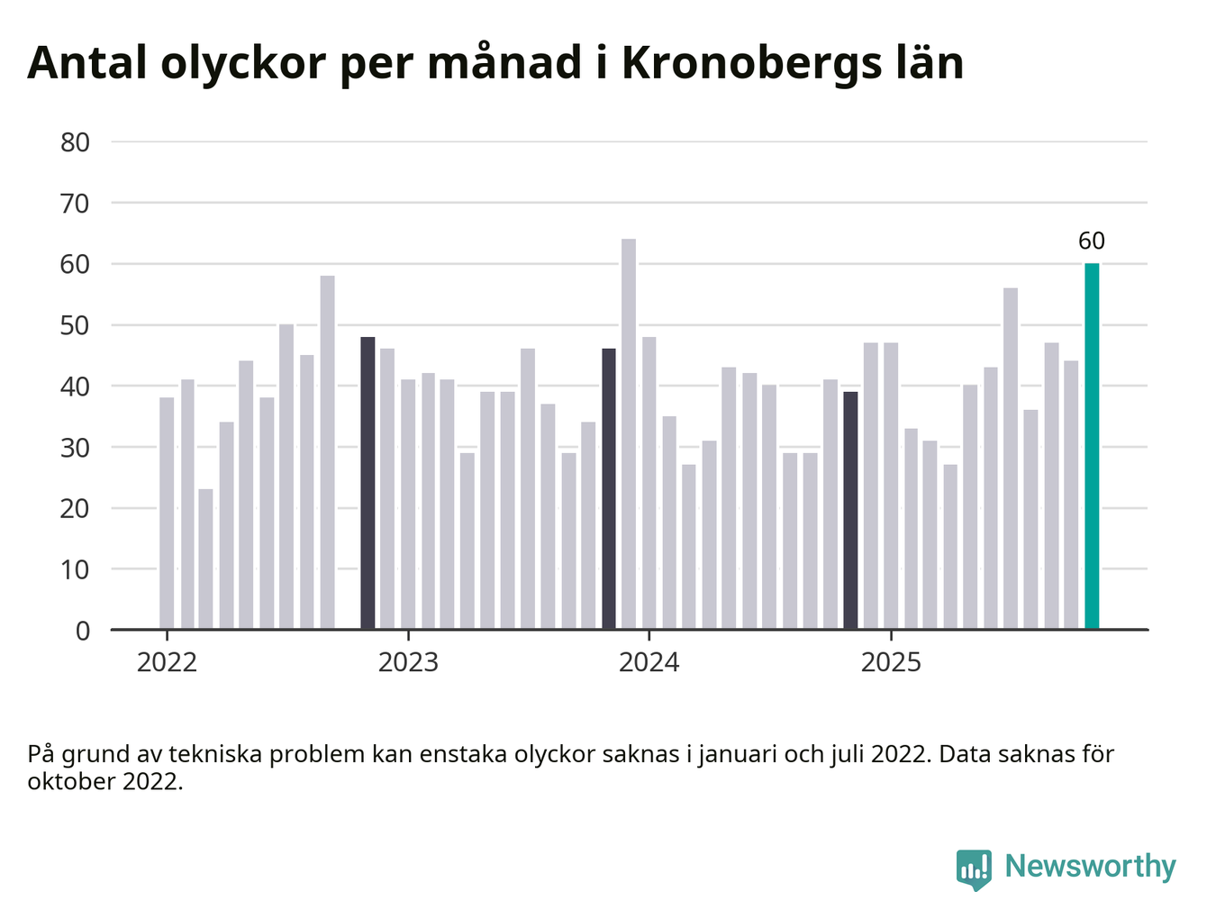 I Kronobergs län var trafikolyckorna fler än under samma månad i fjol: 60 olyckor längs de stora vägarna i länet. Det visar data från Trafikverket som Newsworthy sammanställt.
