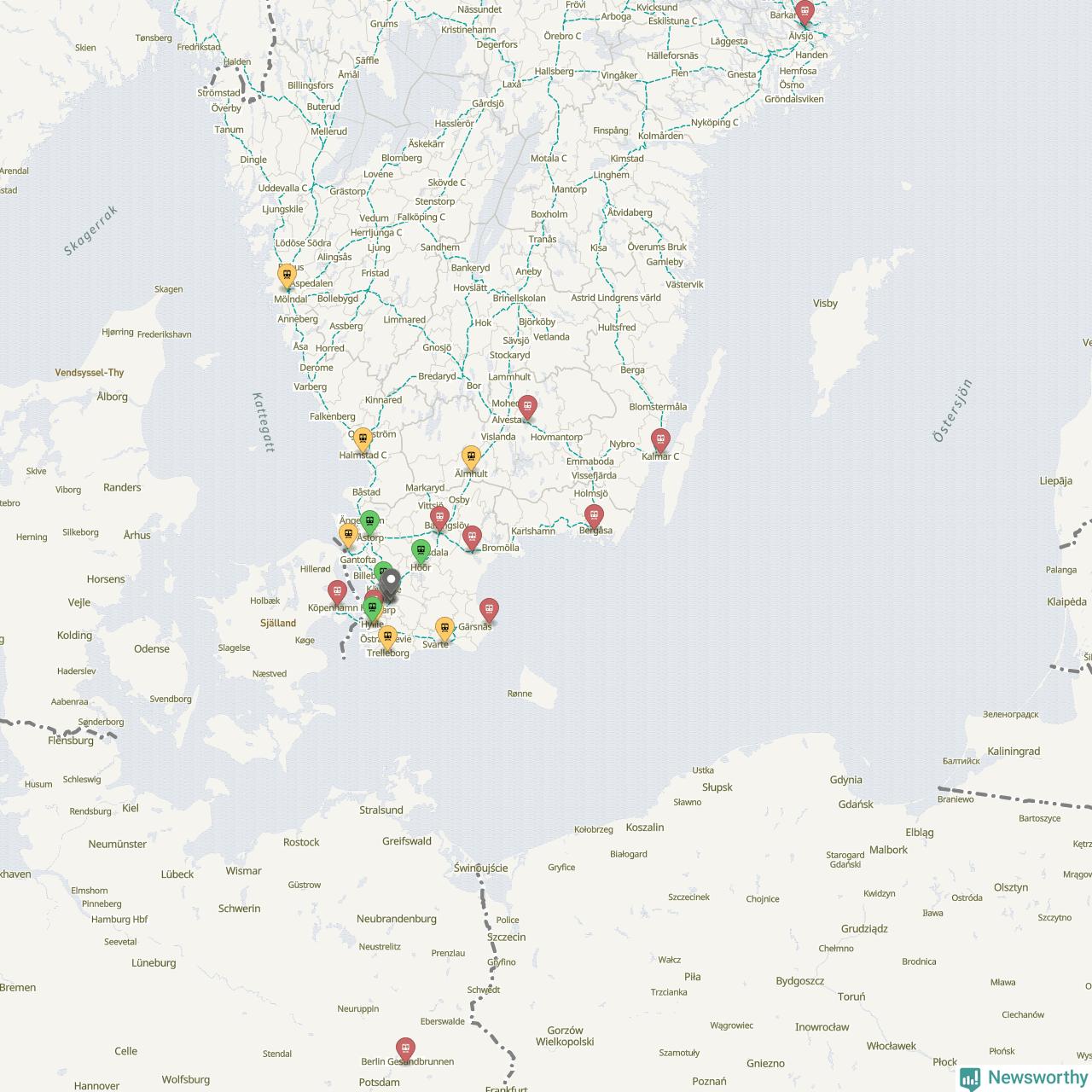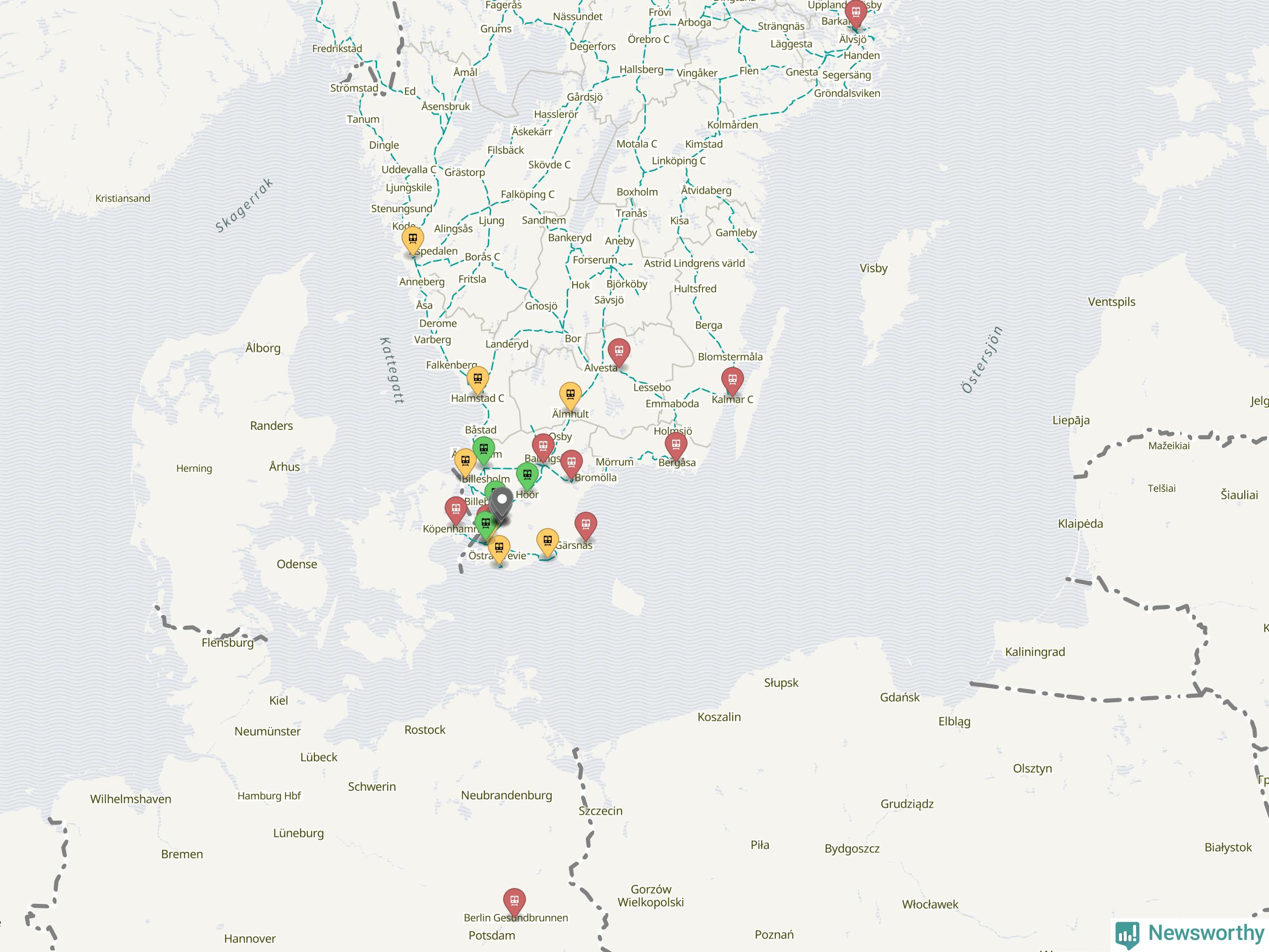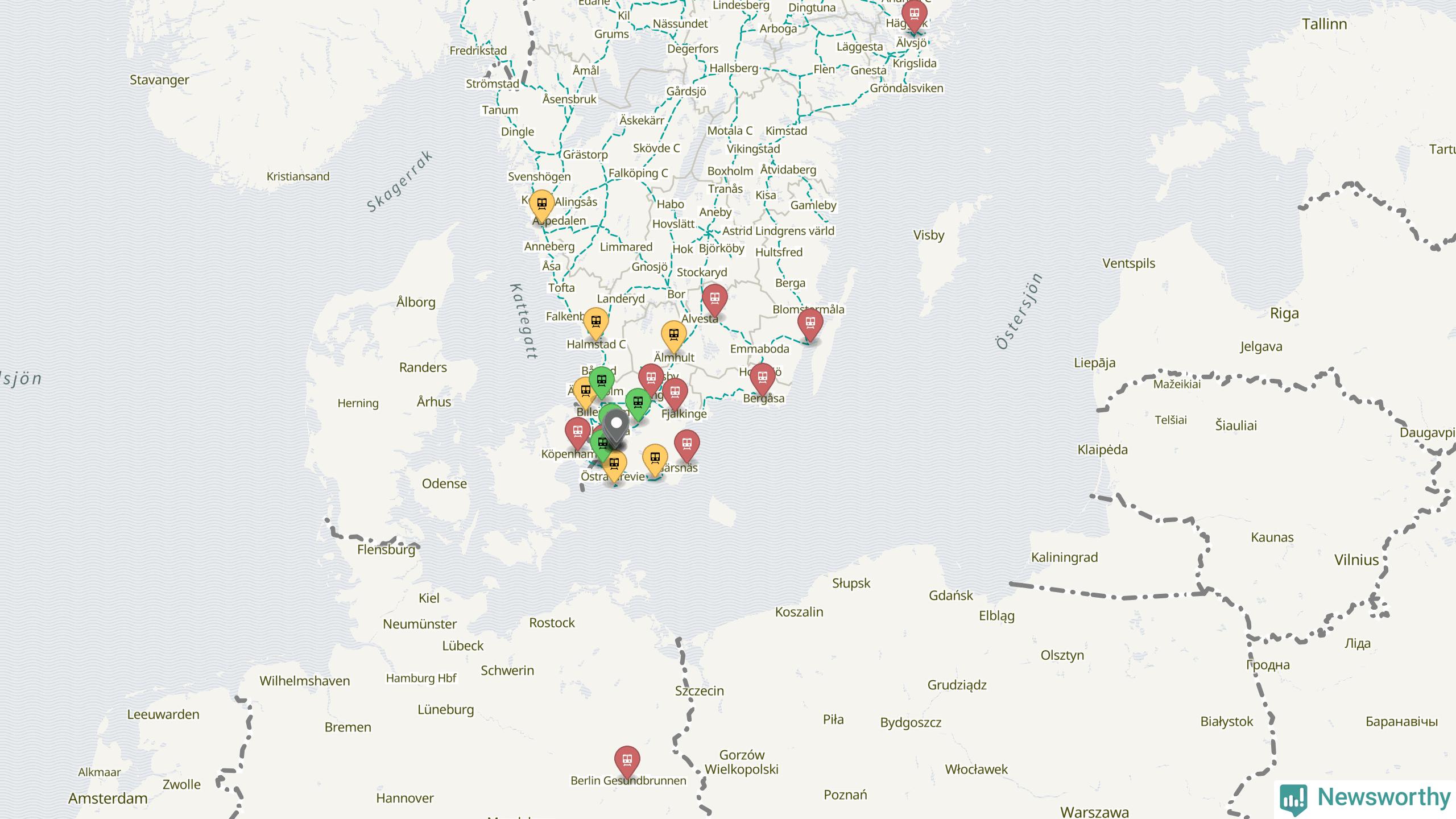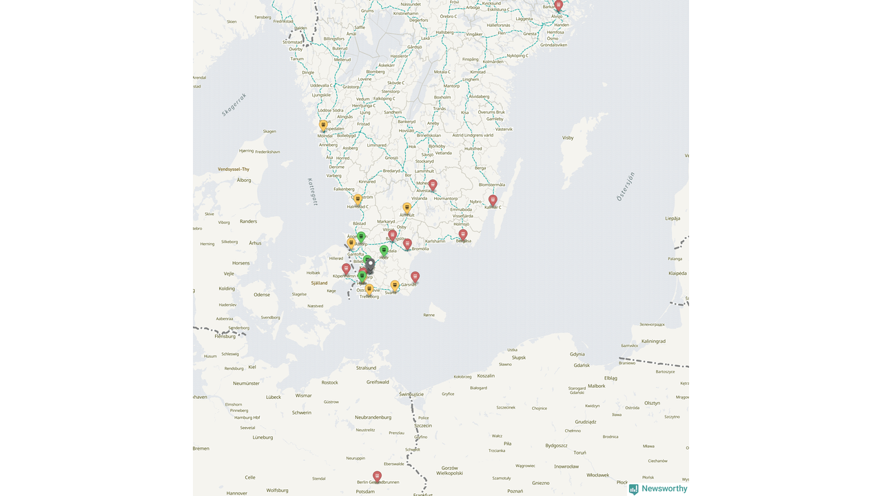 Kartdata från Mapbox, Newsworthy, OpenStreetMap och Trafikverket. Uppgifter om sträckor med passagerartrafik från jarnvag.net.