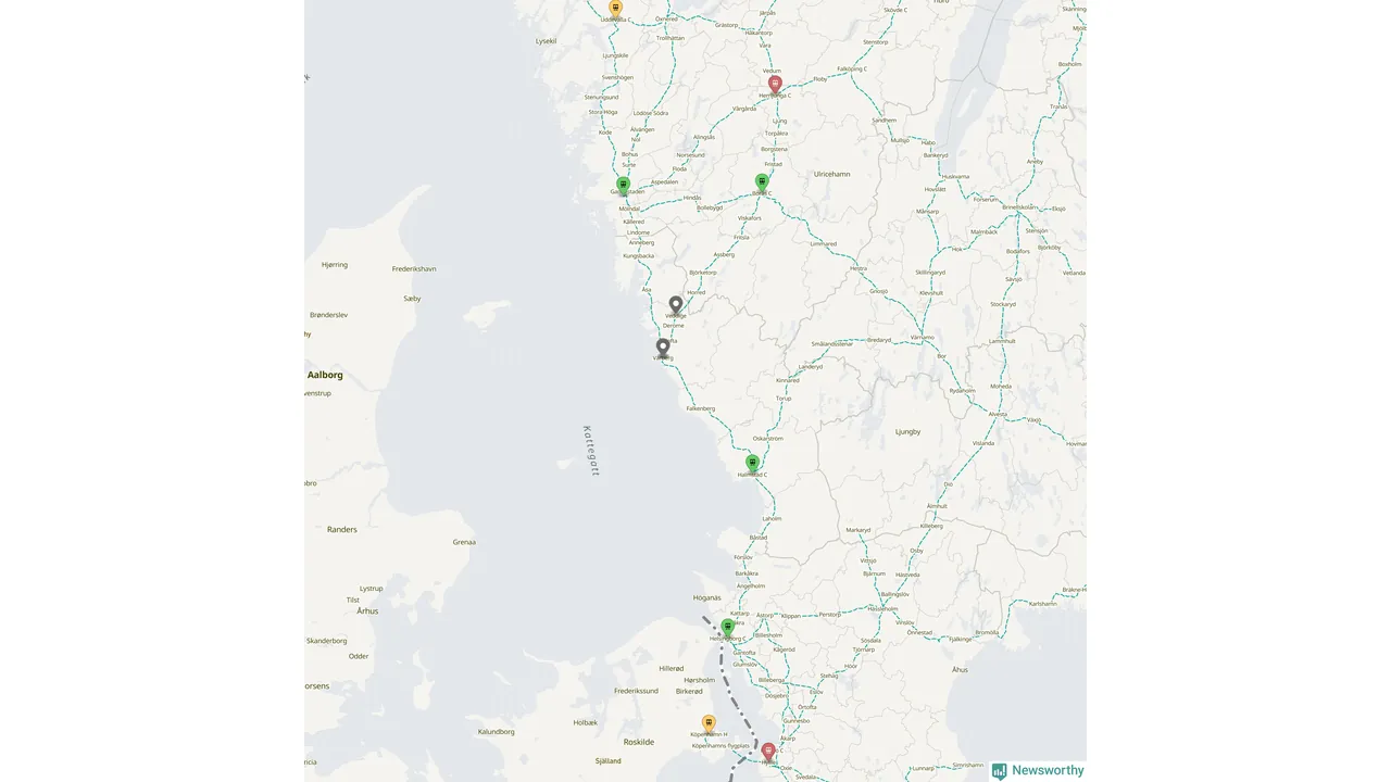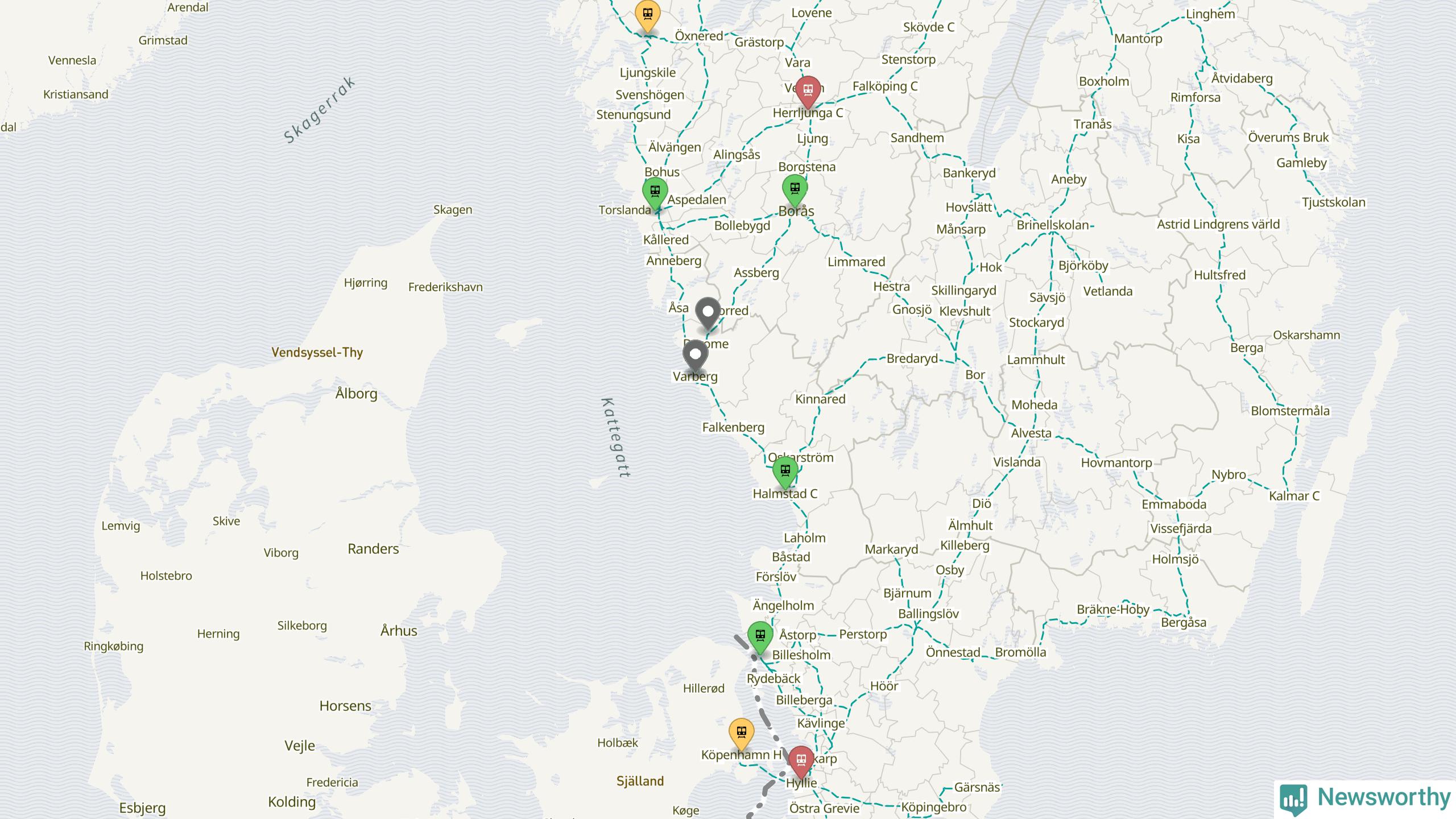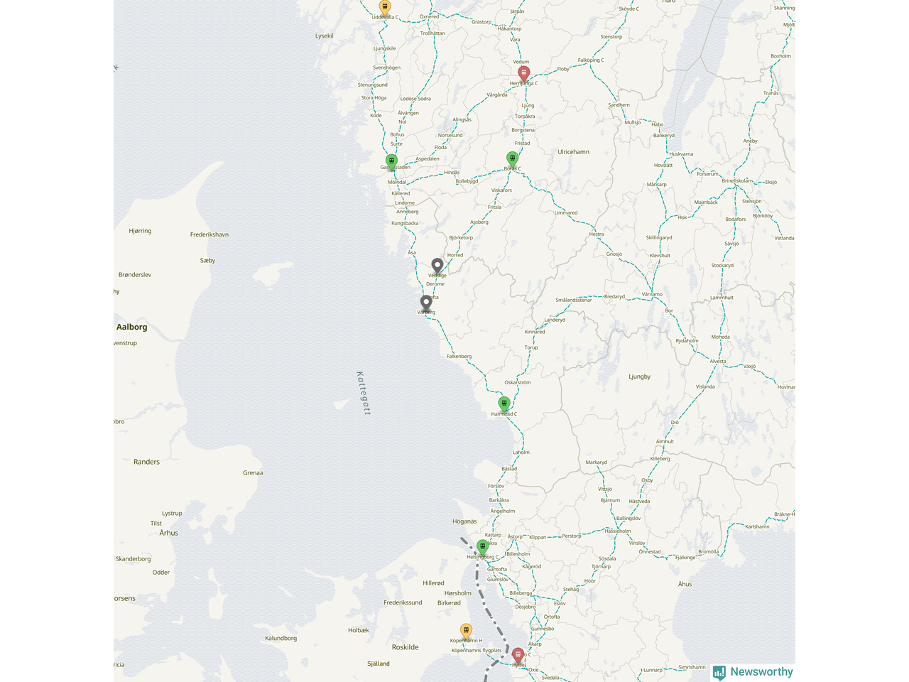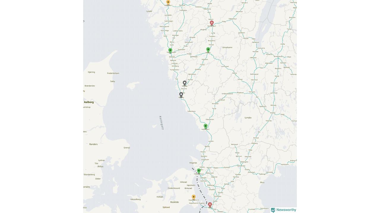 Kartdata från Mapbox, Newsworthy, OpenStreetMap och Trafikverket. Uppgifter om sträckor med passagerartrafik från jarnvag.net.