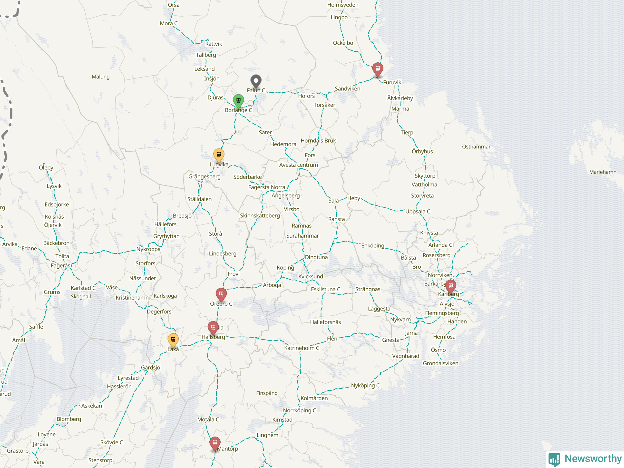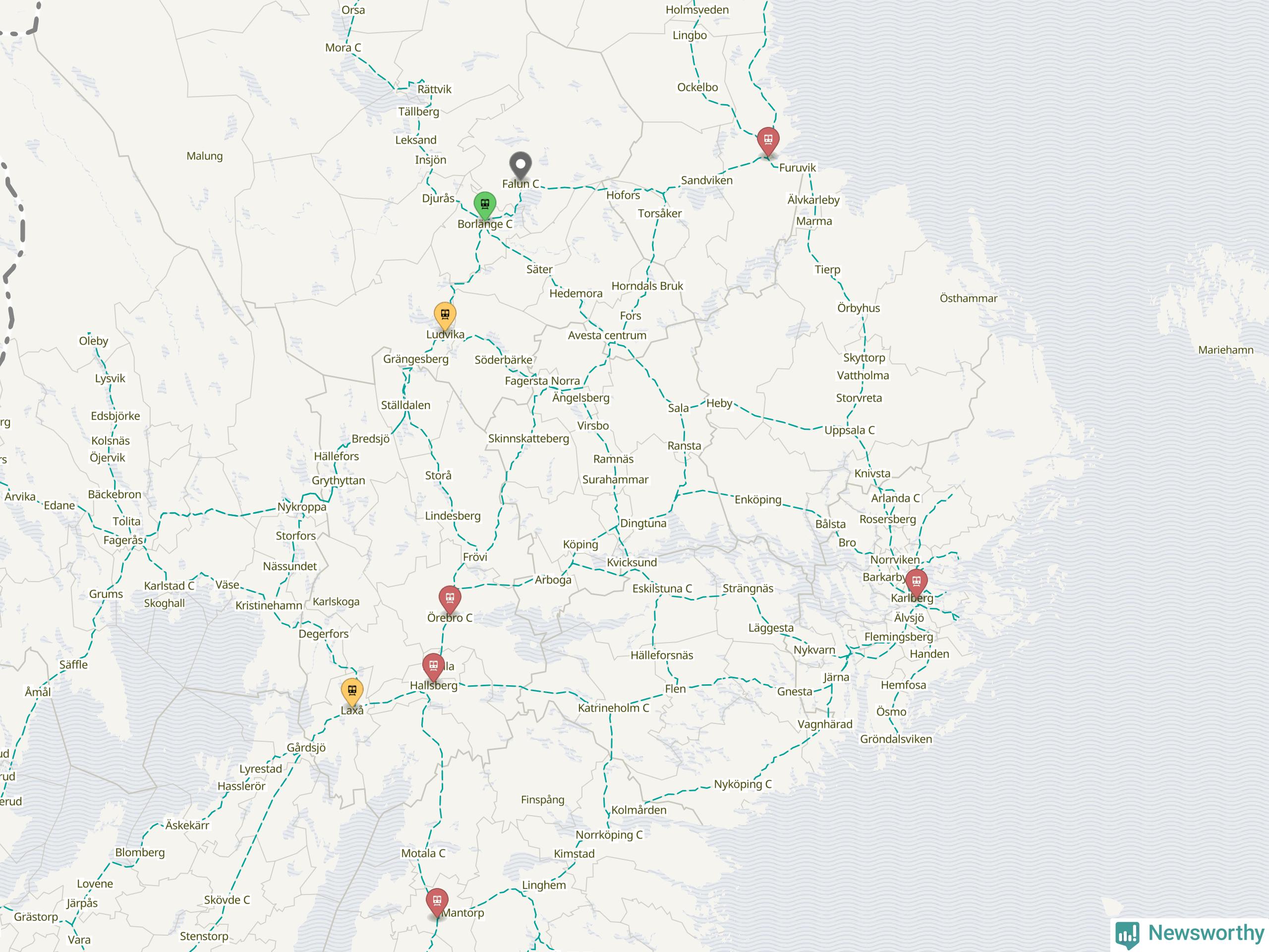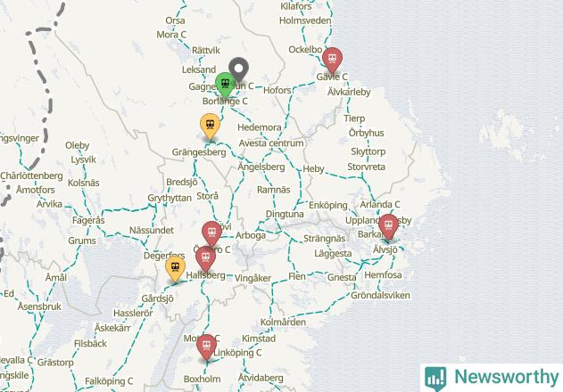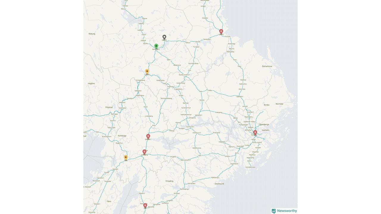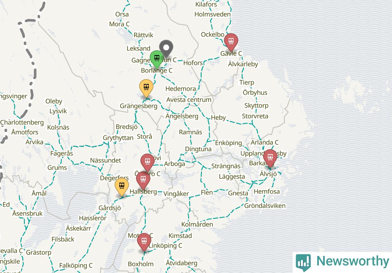 Kartdata från Mapbox, Newsworthy, OpenStreetMap och Trafikverket. Uppgifter om sträckor med passagerartrafik från jarnvag.net.