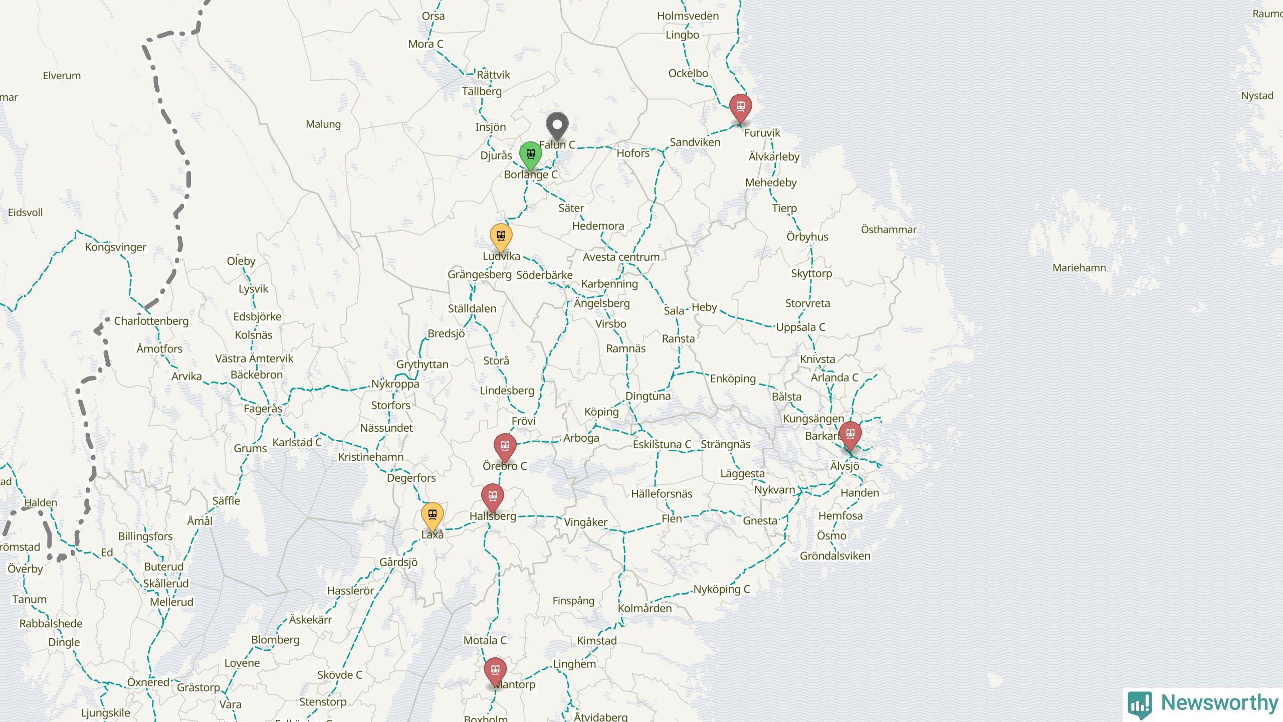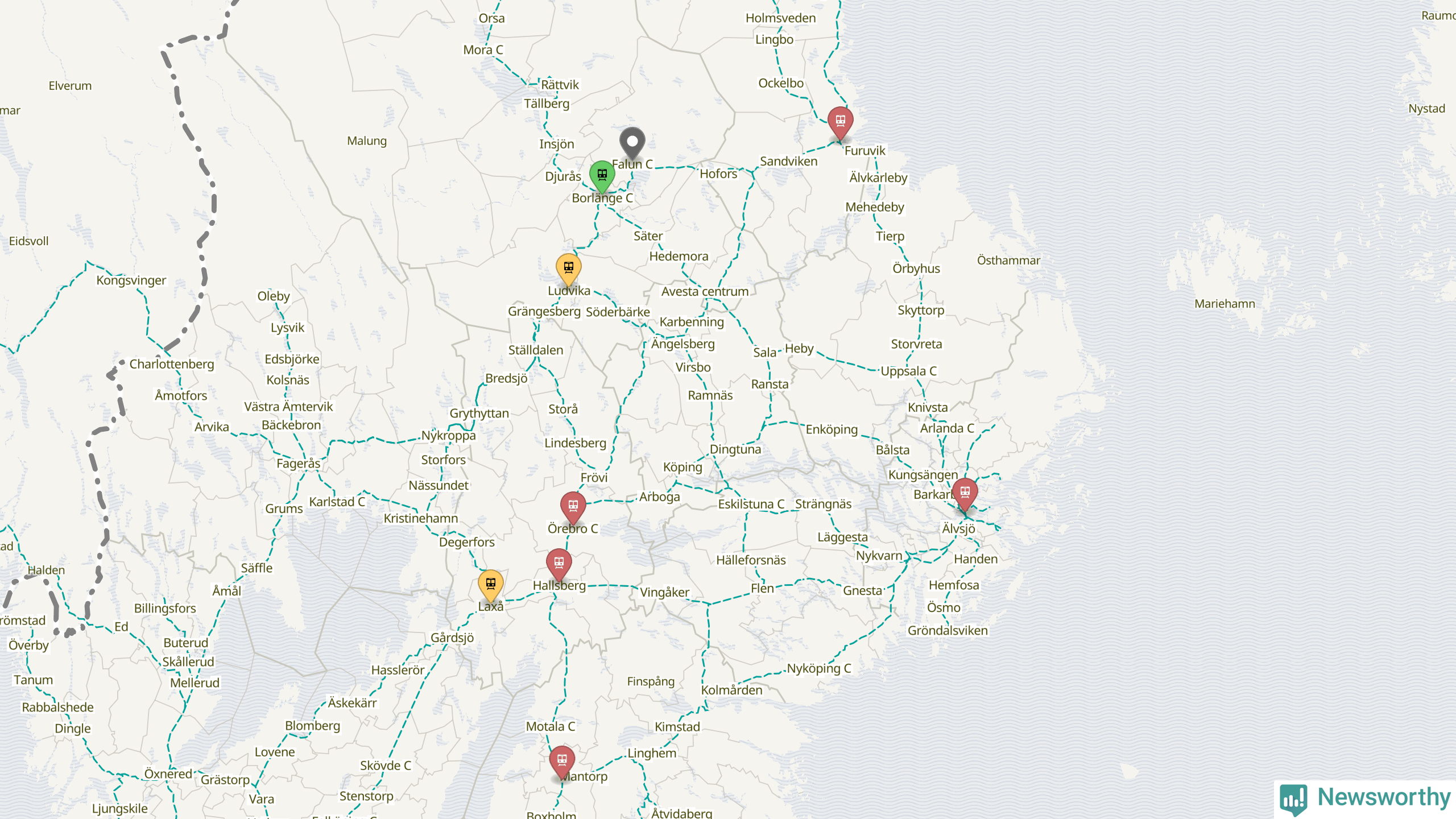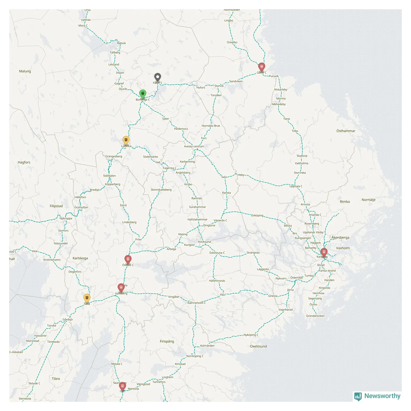 Kartdata från Mapbox, Newsworthy, OpenStreetMap och Trafikverket. Uppgifter om sträckor med passagerartrafik från jarnvag.net.