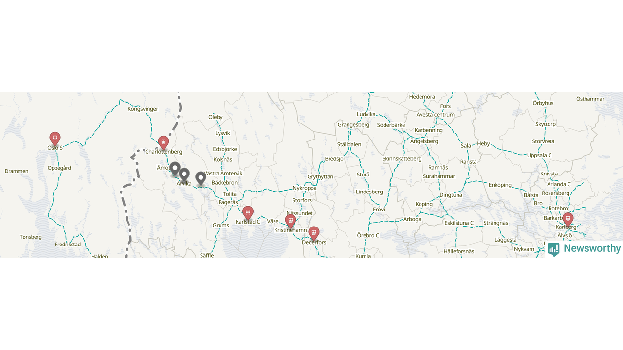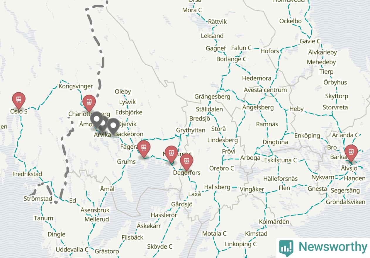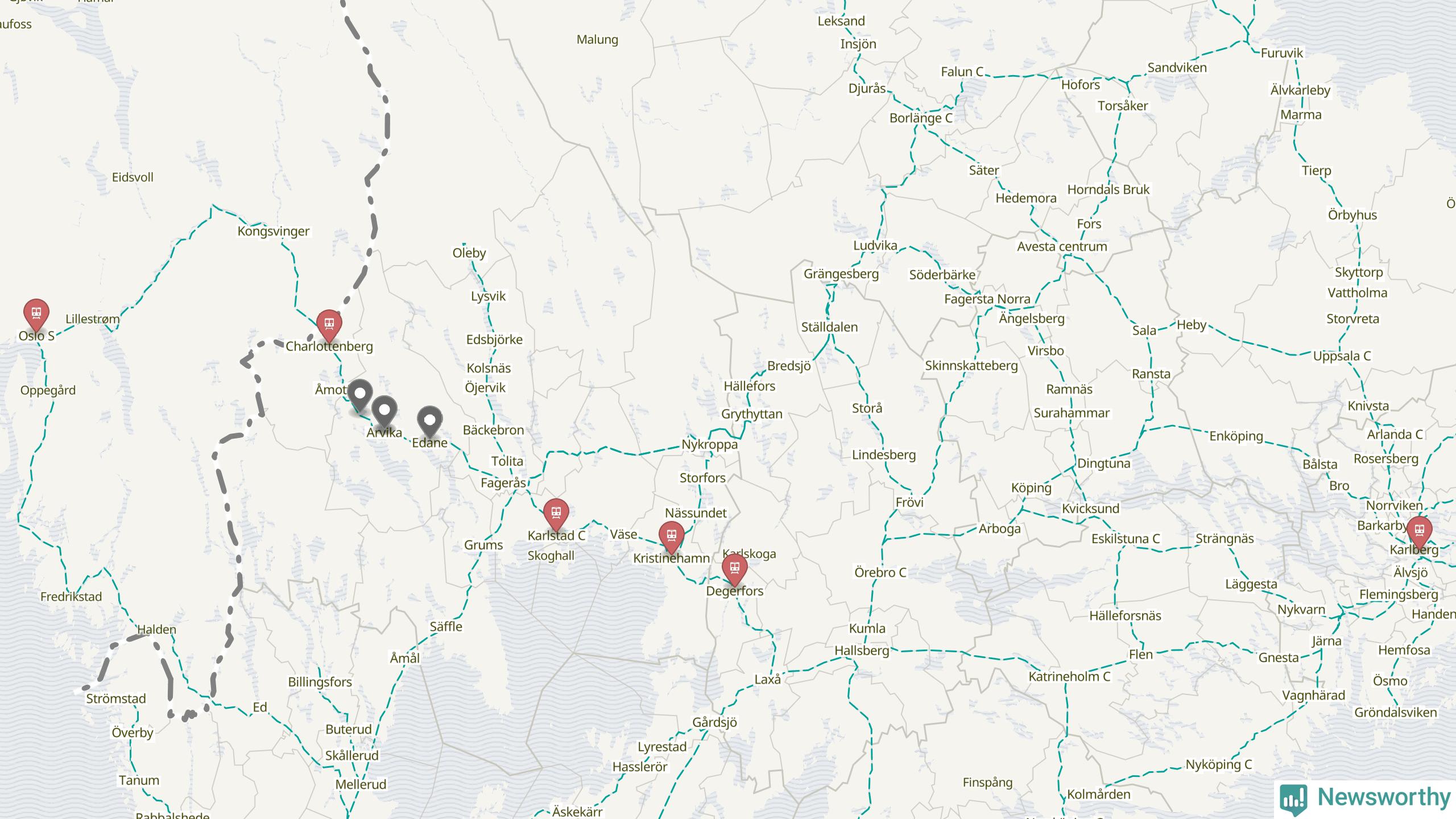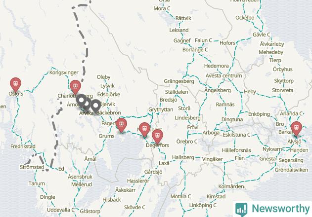 Kartdata från Mapbox, Newsworthy, OpenStreetMap och Trafikverket. Uppgifter om sträckor med passagerartrafik från jarnvag.net.