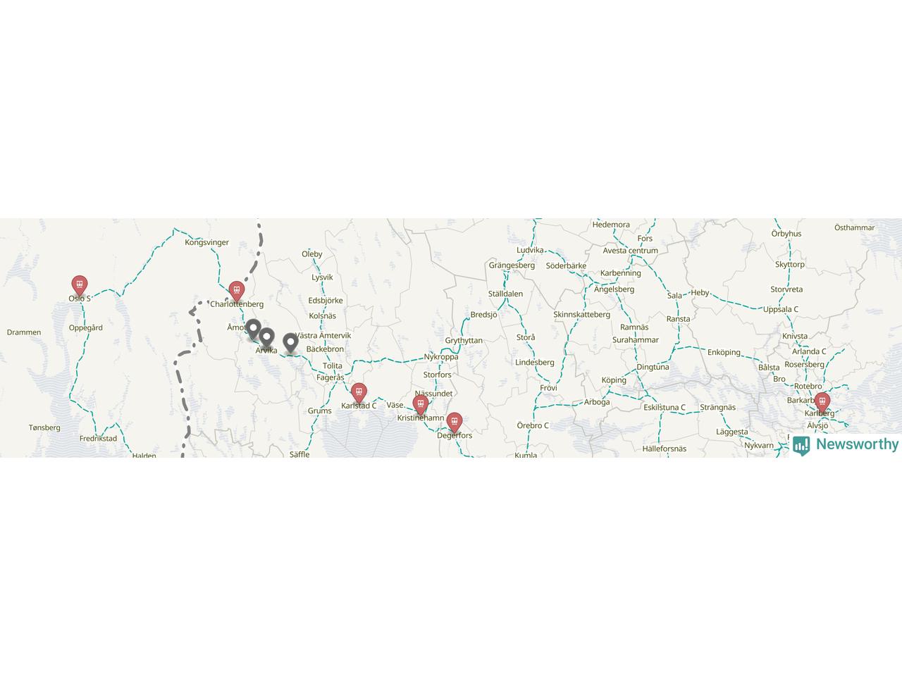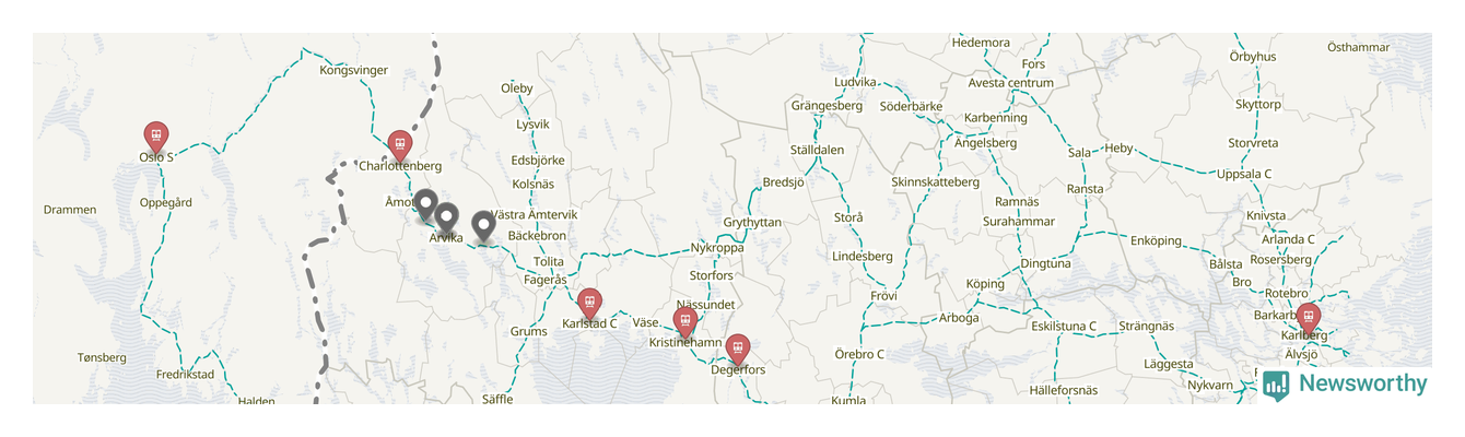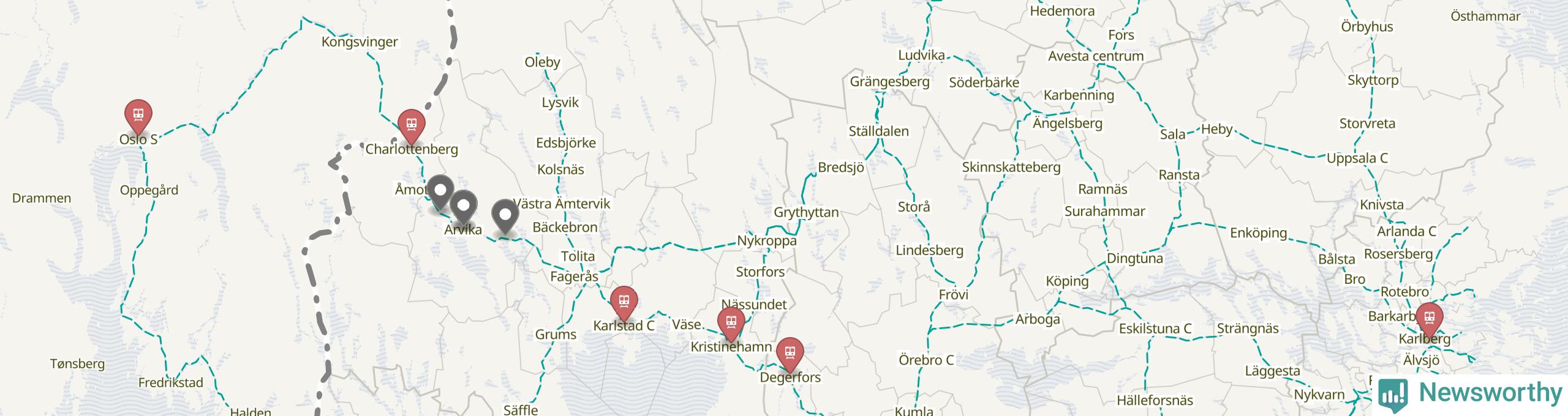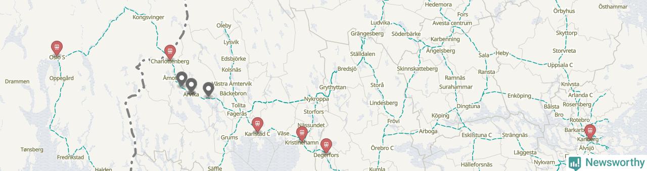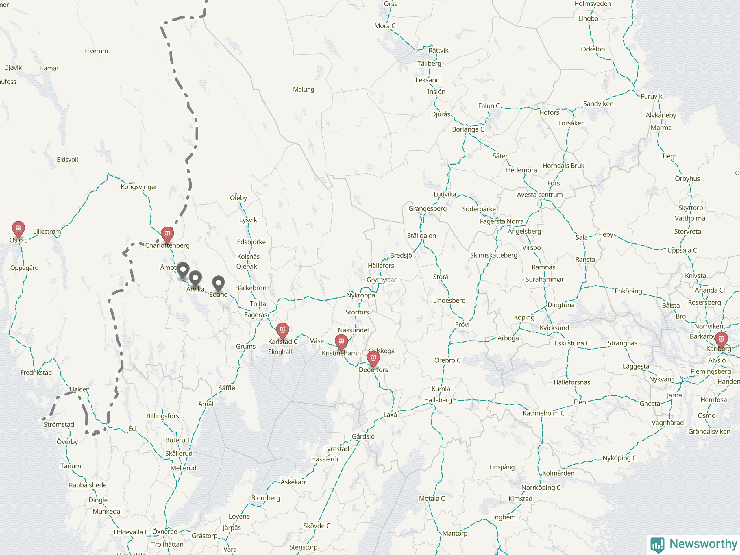 Kartdata från Mapbox, Newsworthy, OpenStreetMap och Trafikverket. Uppgifter om sträckor med passagerartrafik från jarnvag.net.