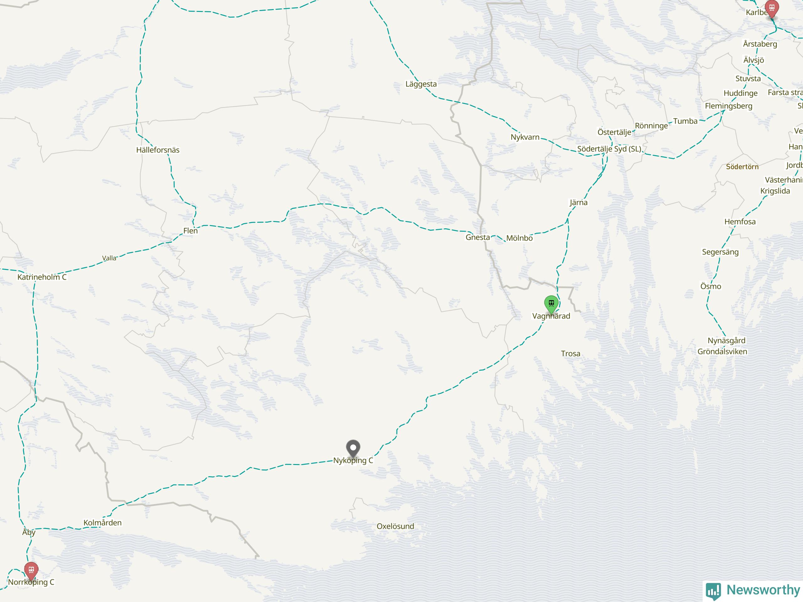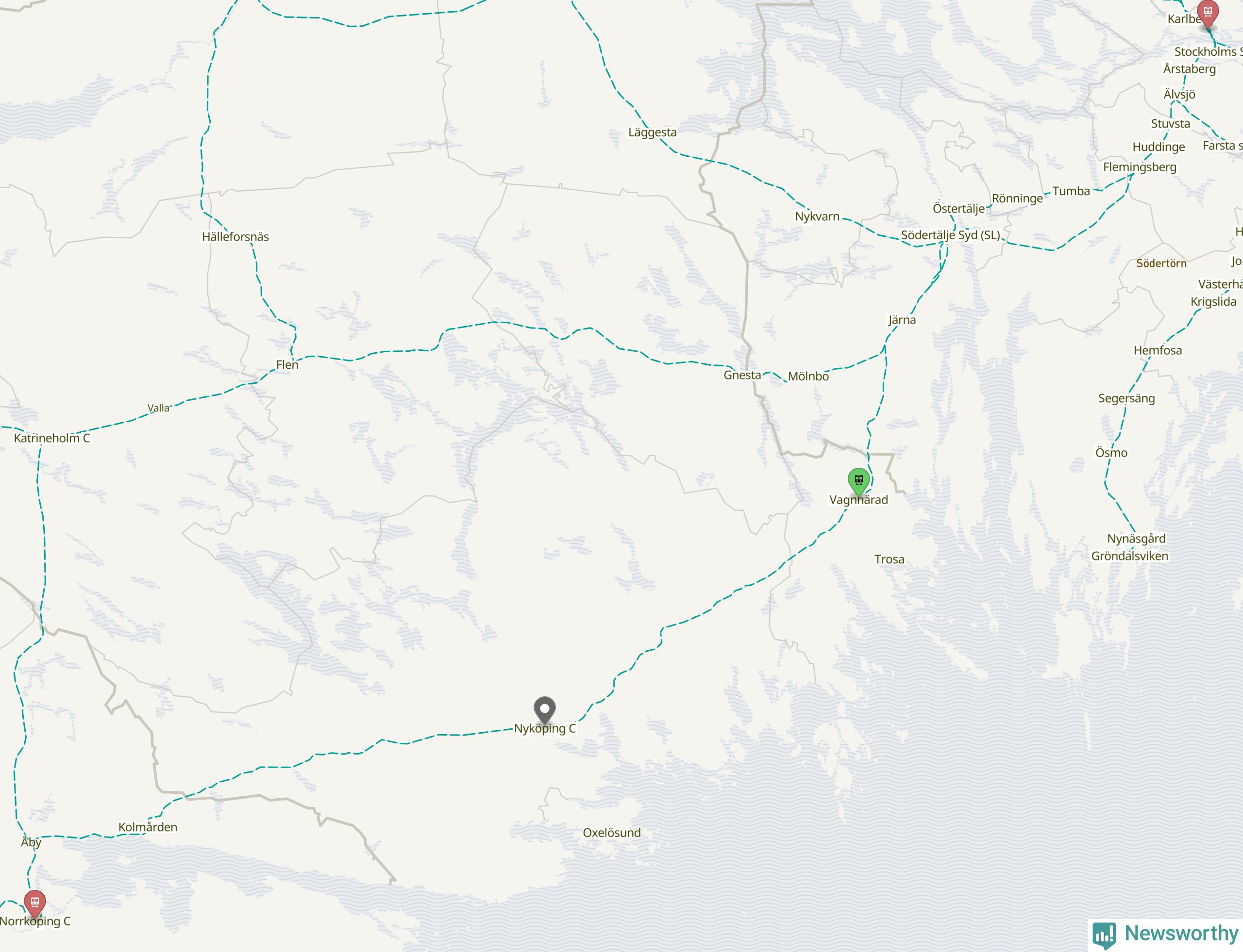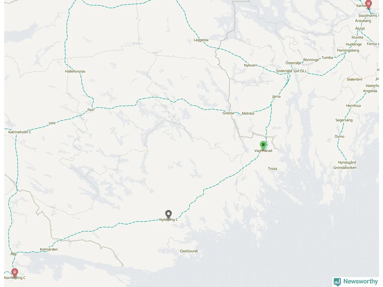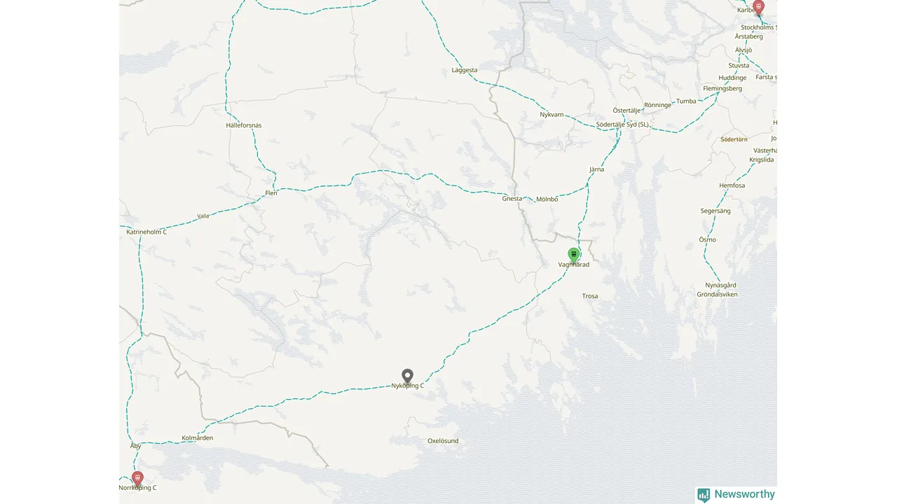 Kartdata från Mapbox, Newsworthy, OpenStreetMap och Trafikverket. Uppgifter om sträckor med passagerartrafik från jarnvag.net.
