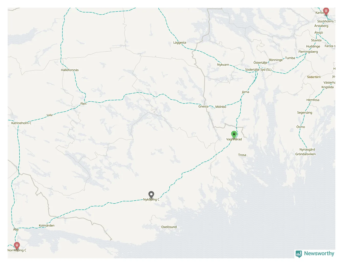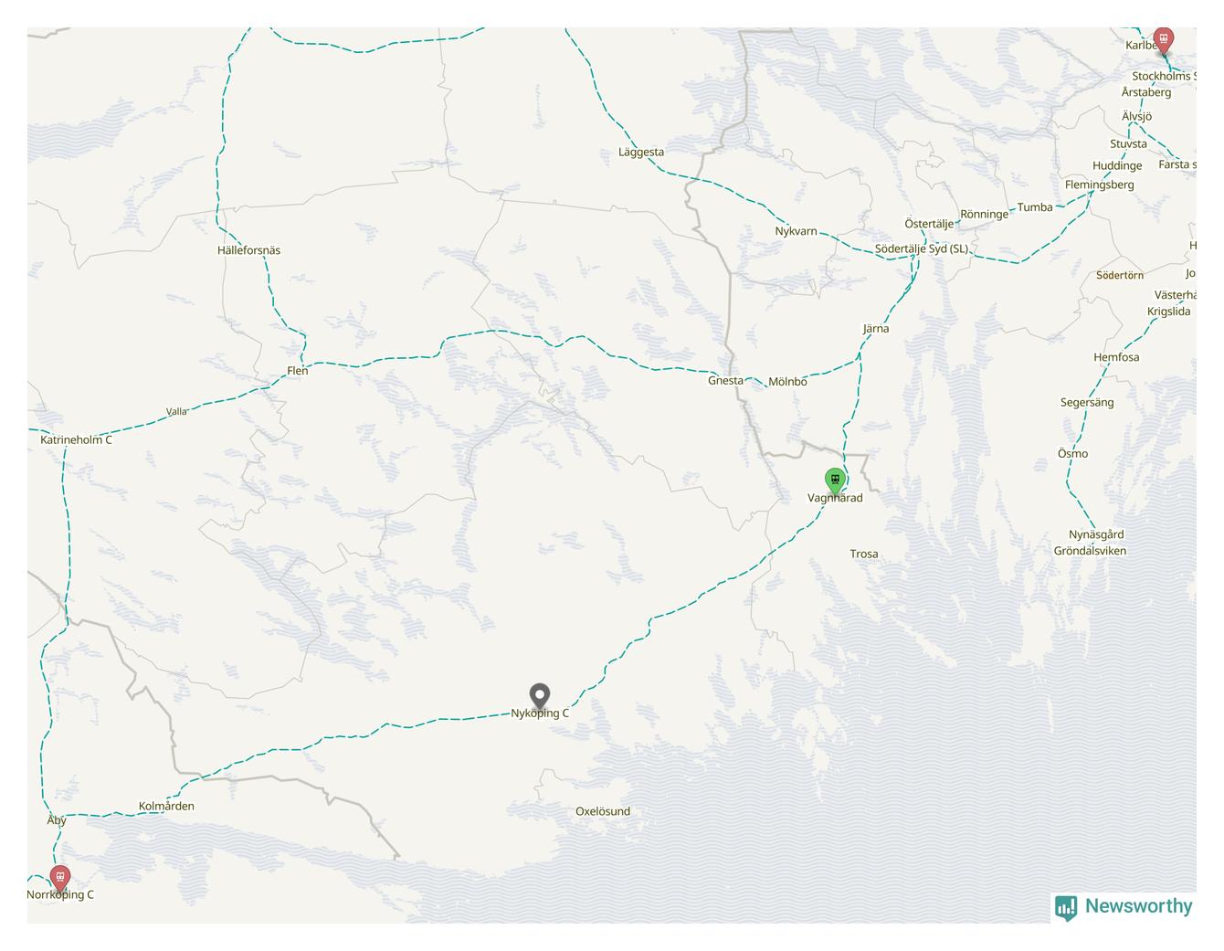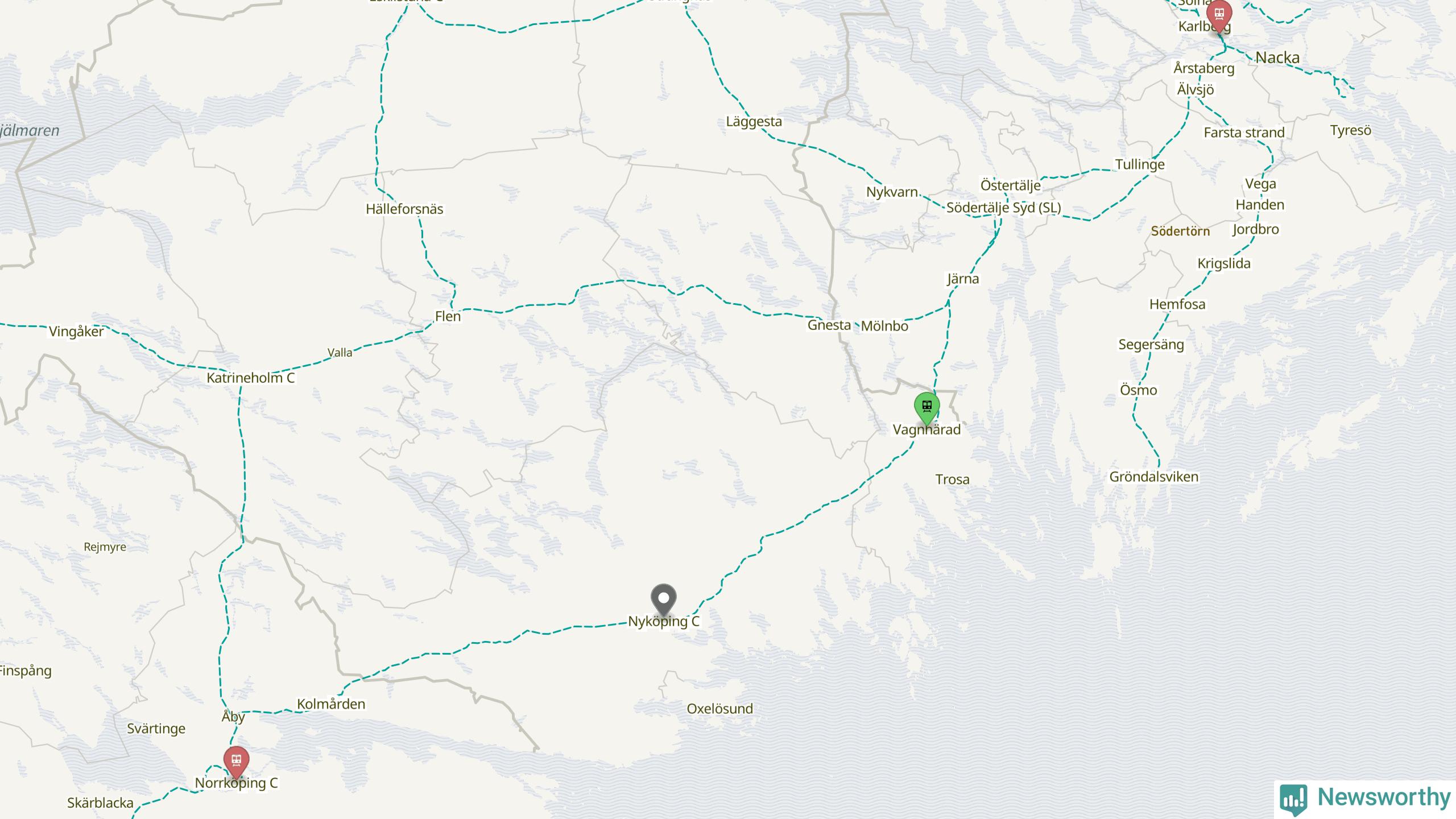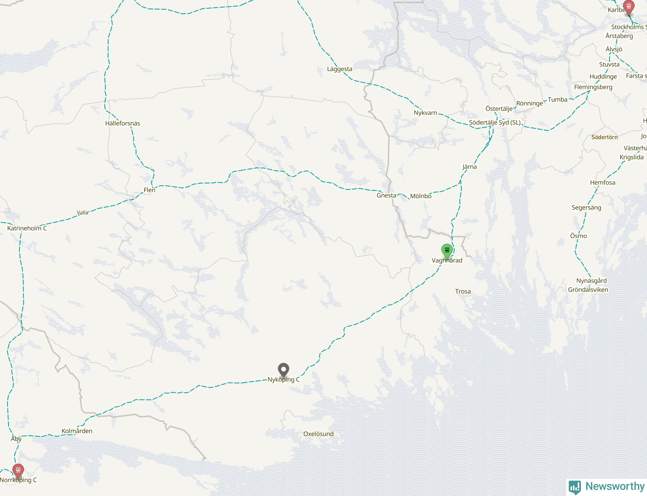 Kartdata från Mapbox, Newsworthy, OpenStreetMap och Trafikverket. Uppgifter om sträckor med passagerartrafik från jarnvag.net.