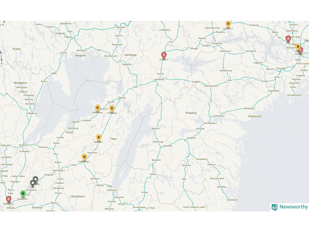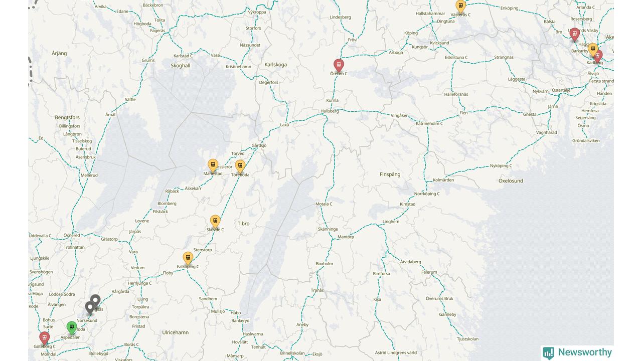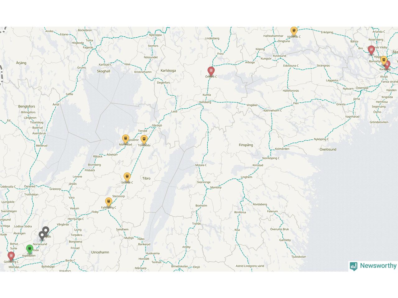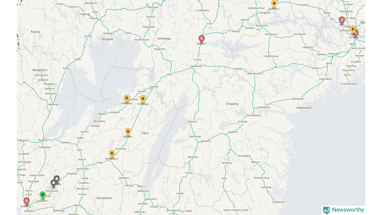 Kartdata från Mapbox, Newsworthy, OpenStreetMap och Trafikverket. Uppgifter om sträckor med passagerartrafik från jarnvag.net.