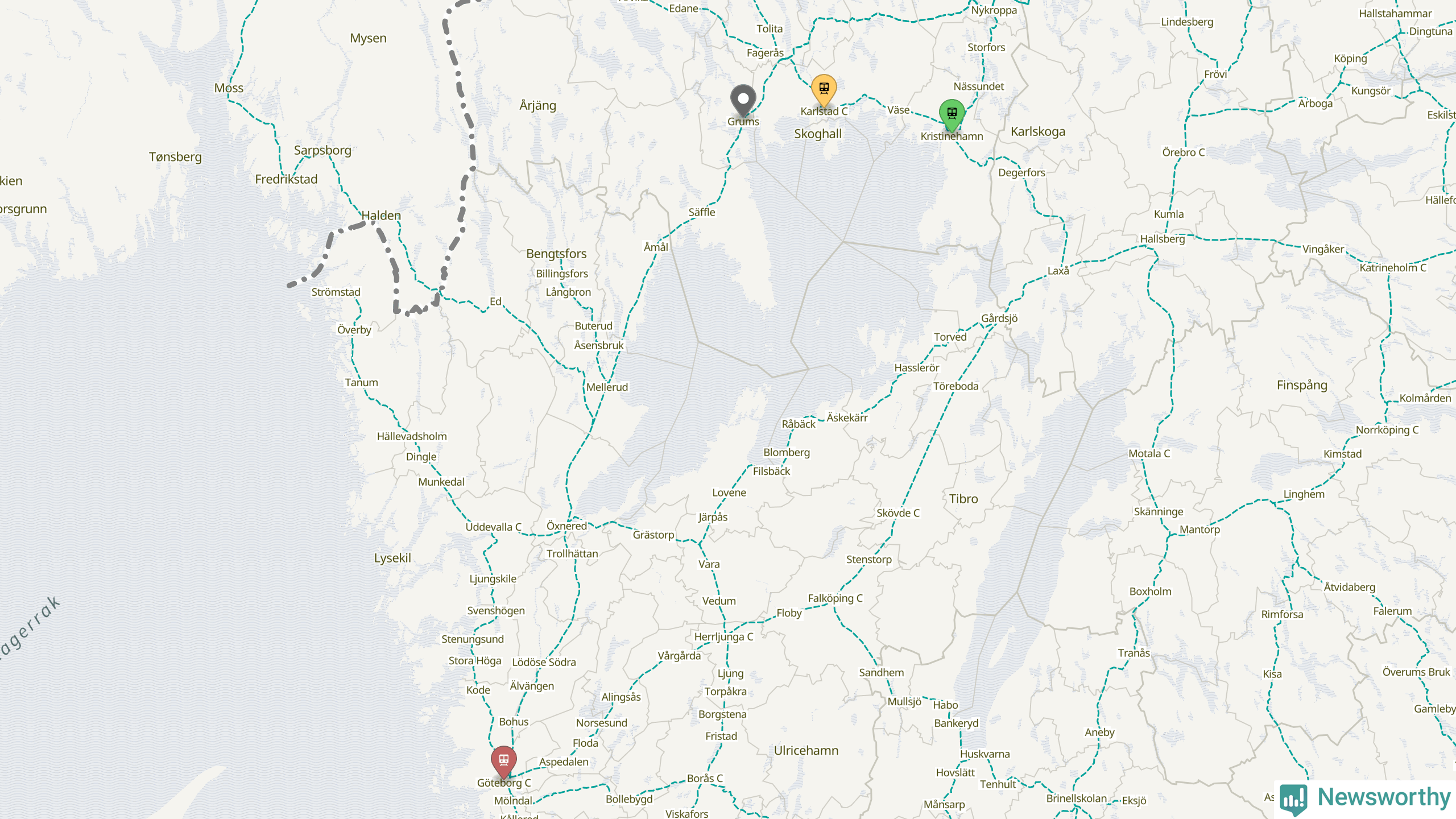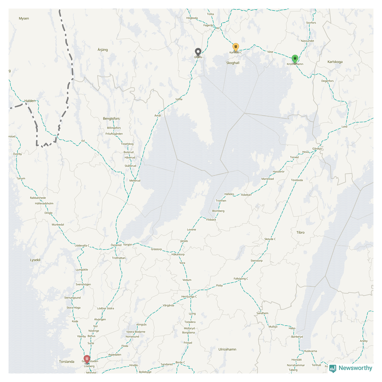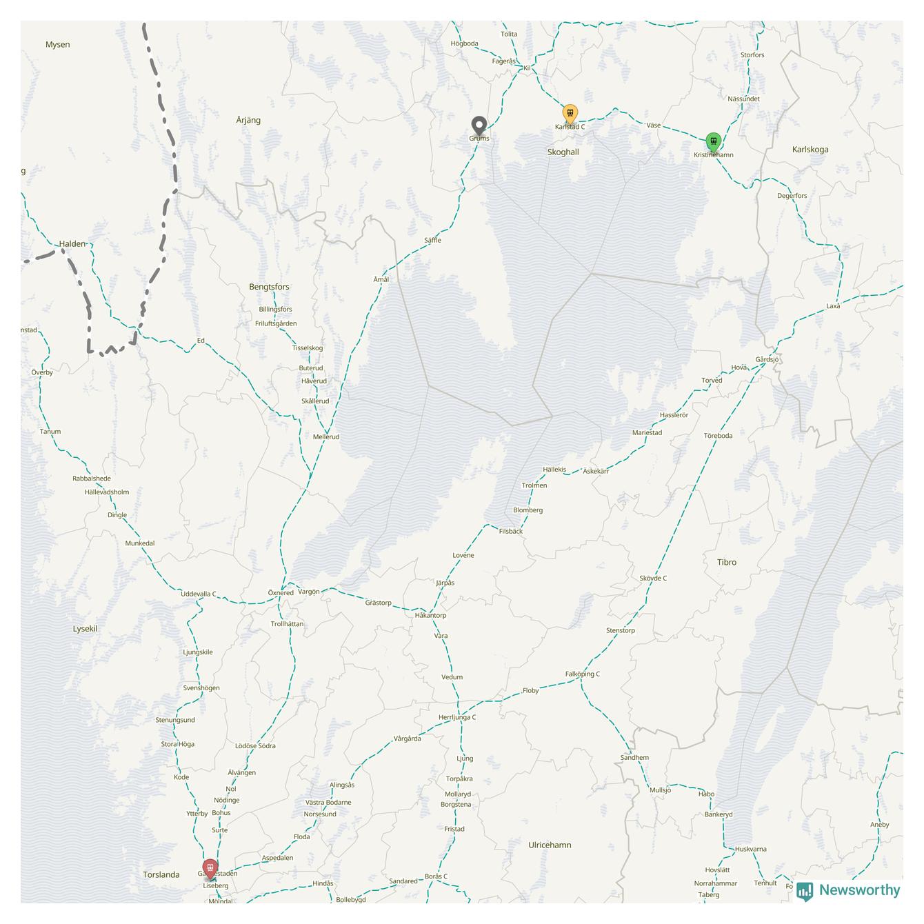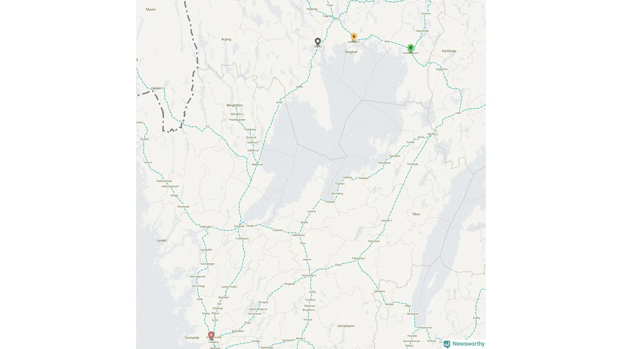 Kartdata från Mapbox, Newsworthy, OpenStreetMap och Trafikverket. Uppgifter om sträckor med passagerartrafik från jarnvag.net.
