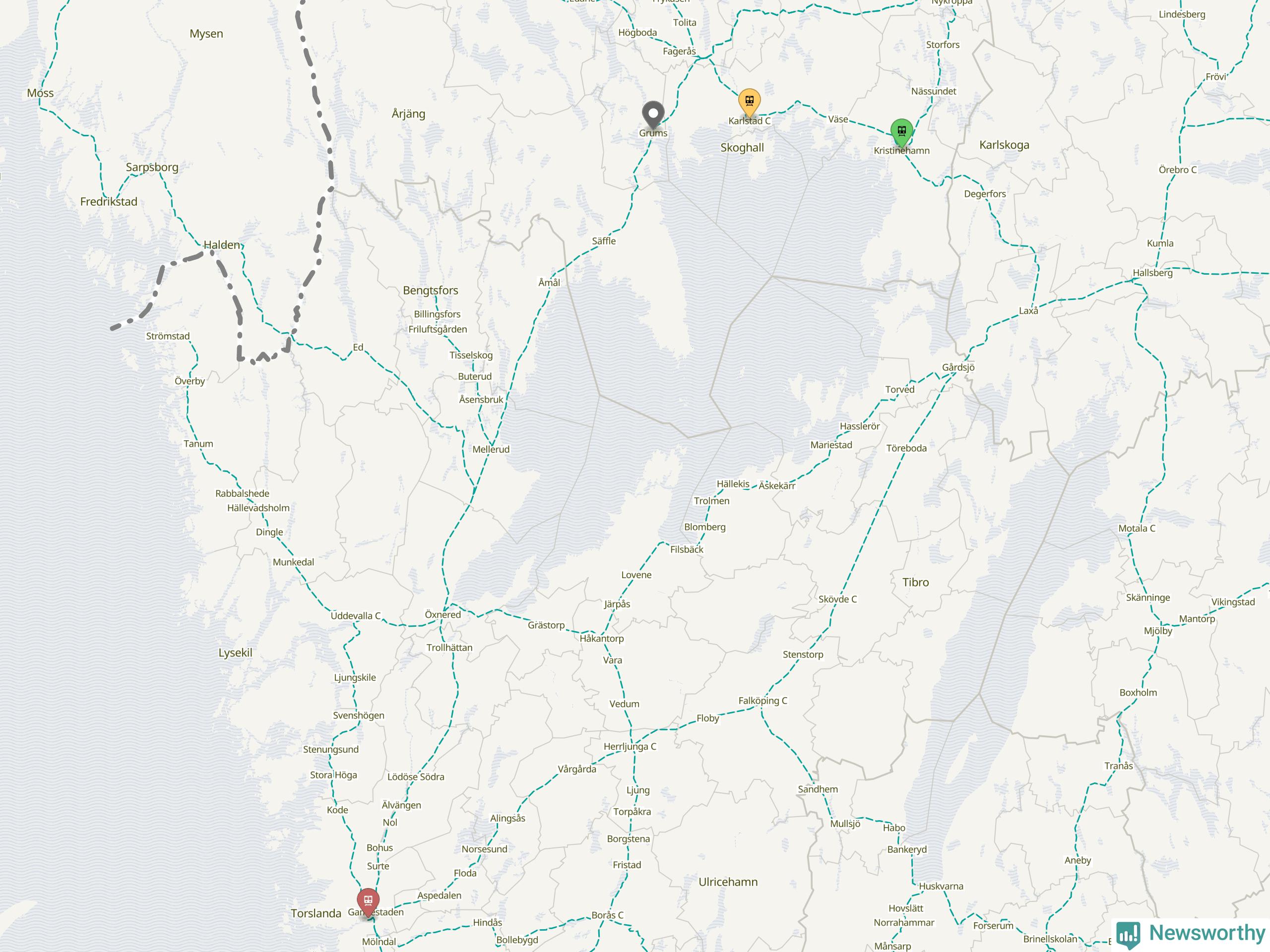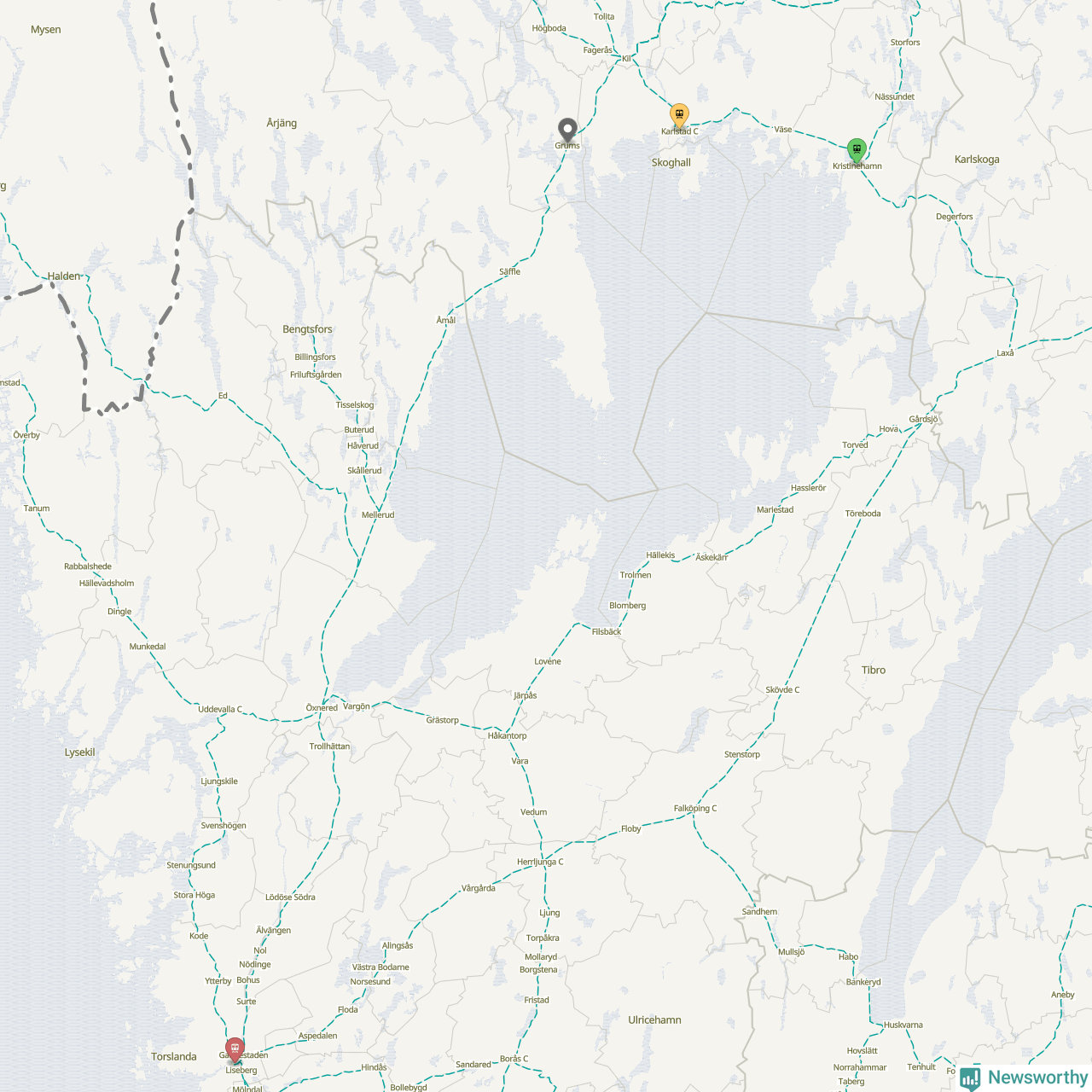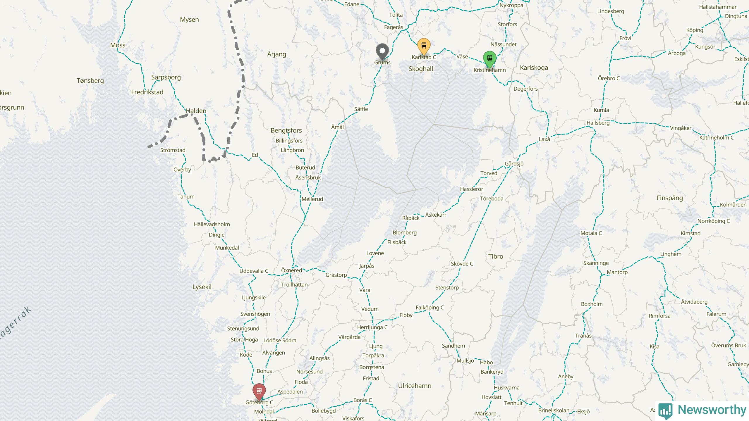 Kartdata från Mapbox, Newsworthy, OpenStreetMap och Trafikverket. Uppgifter om sträckor med passagerartrafik från jarnvag.net.