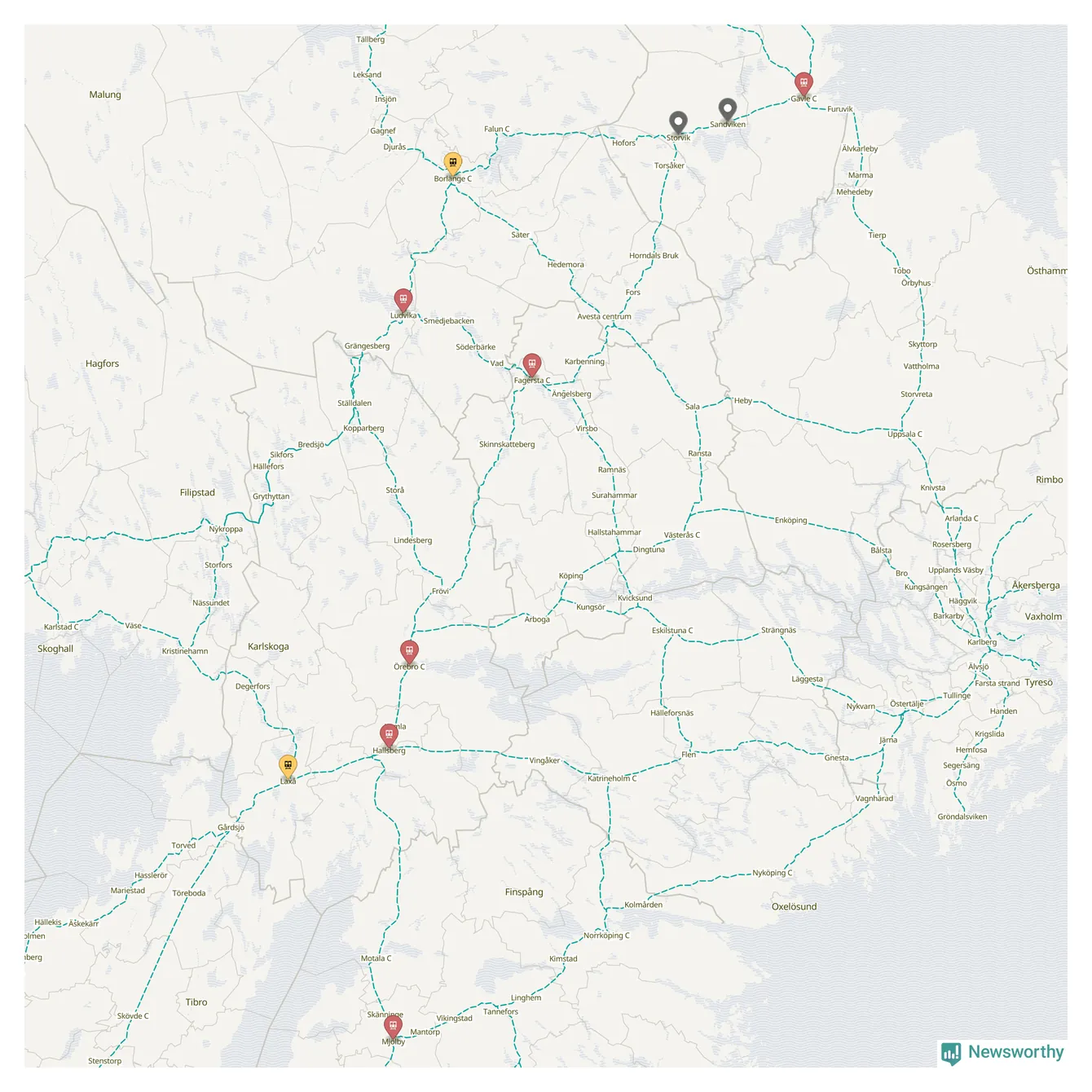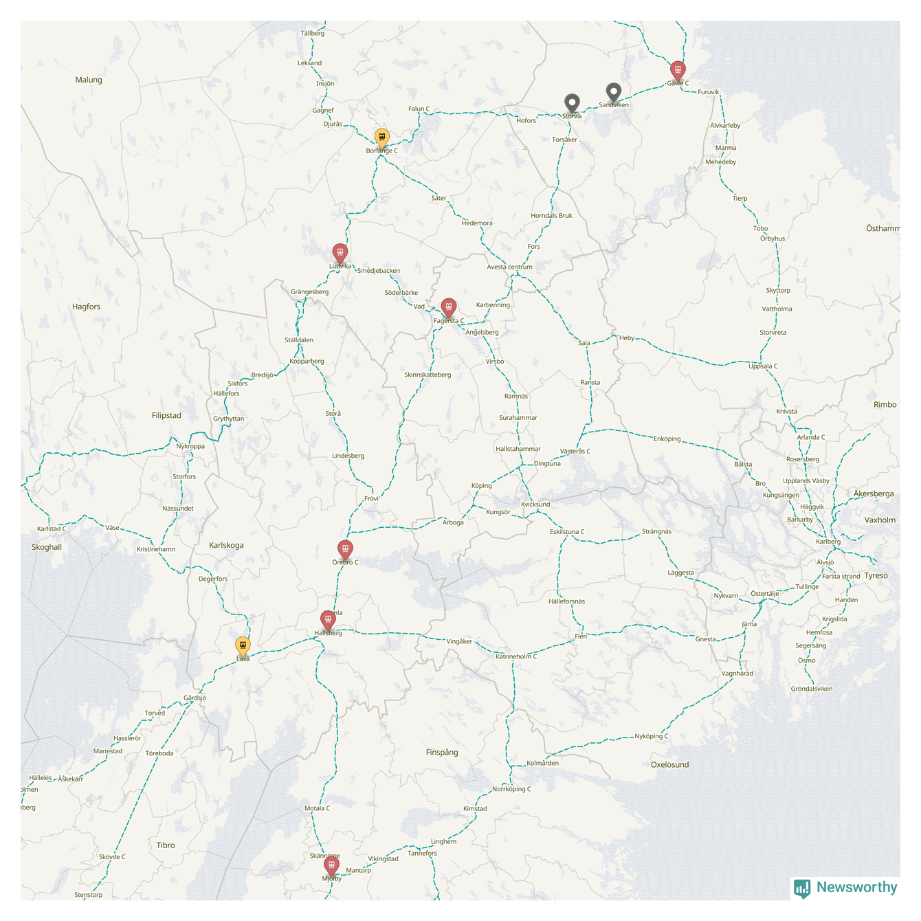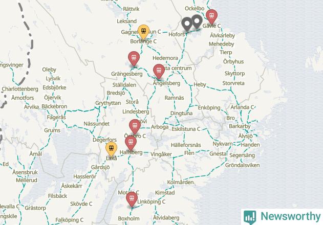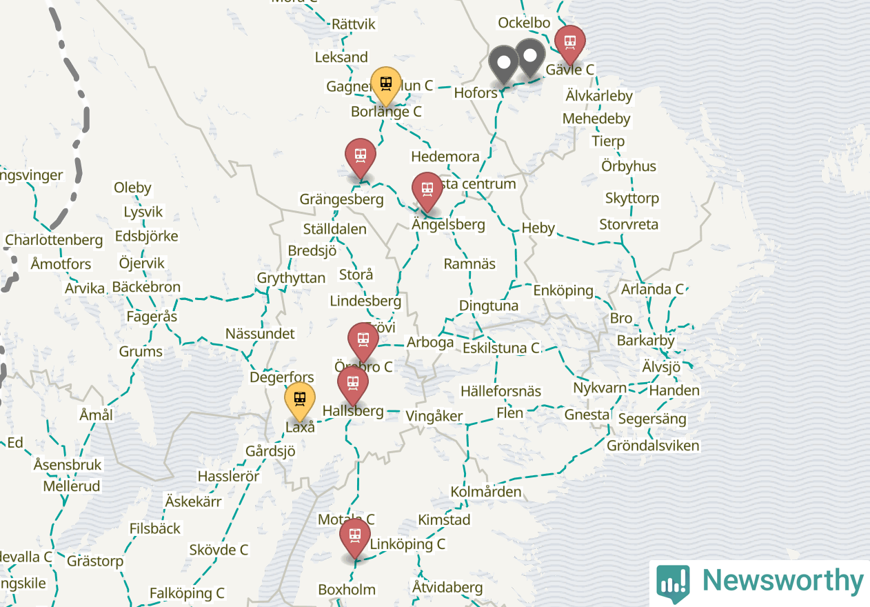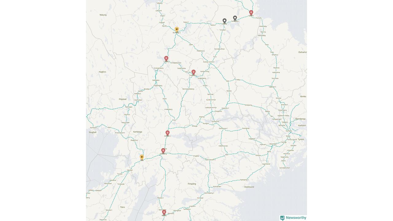 Kartdata från Mapbox, Newsworthy, OpenStreetMap och Trafikverket. Uppgifter om sträckor med passagerartrafik från jarnvag.net.