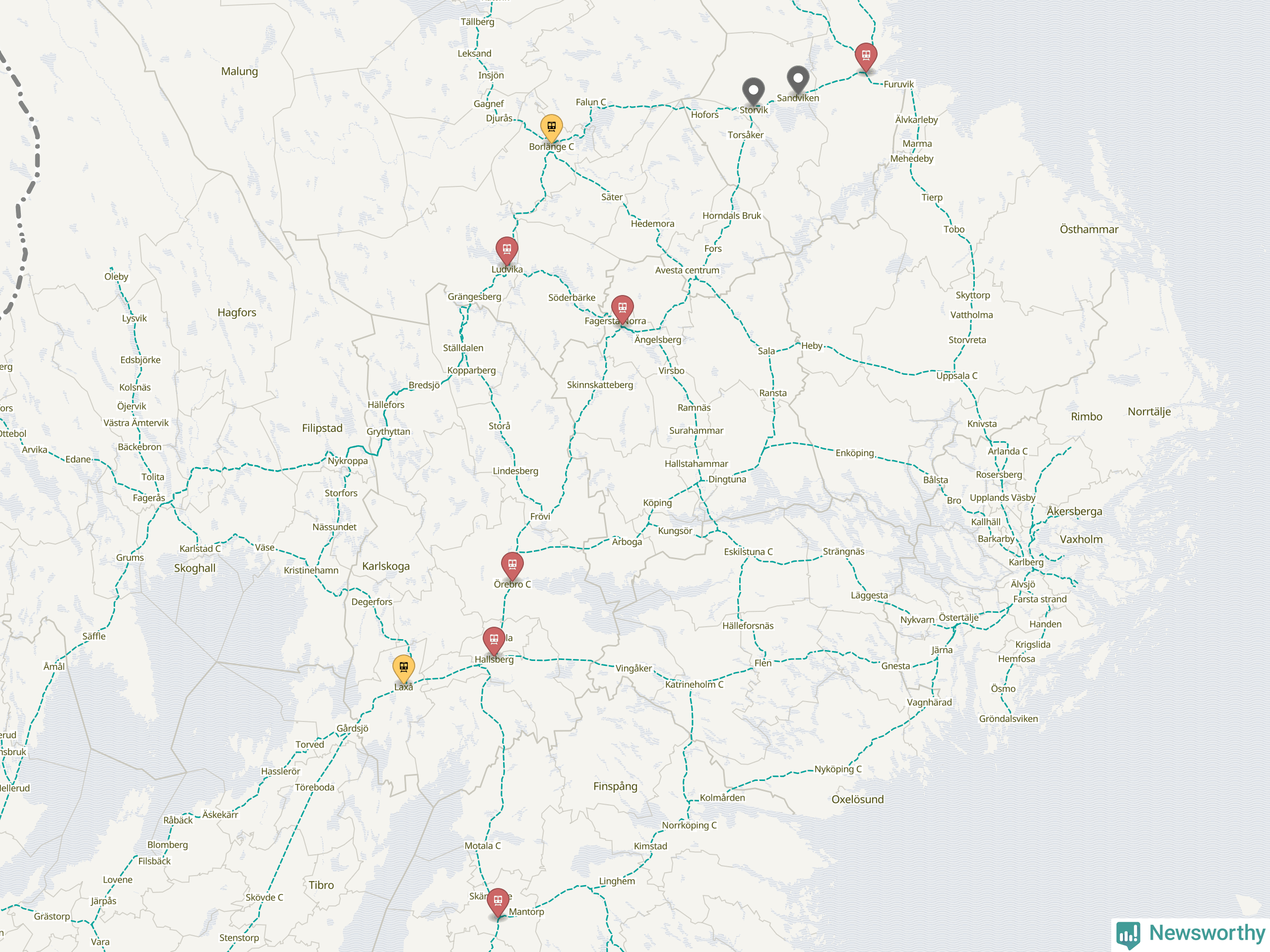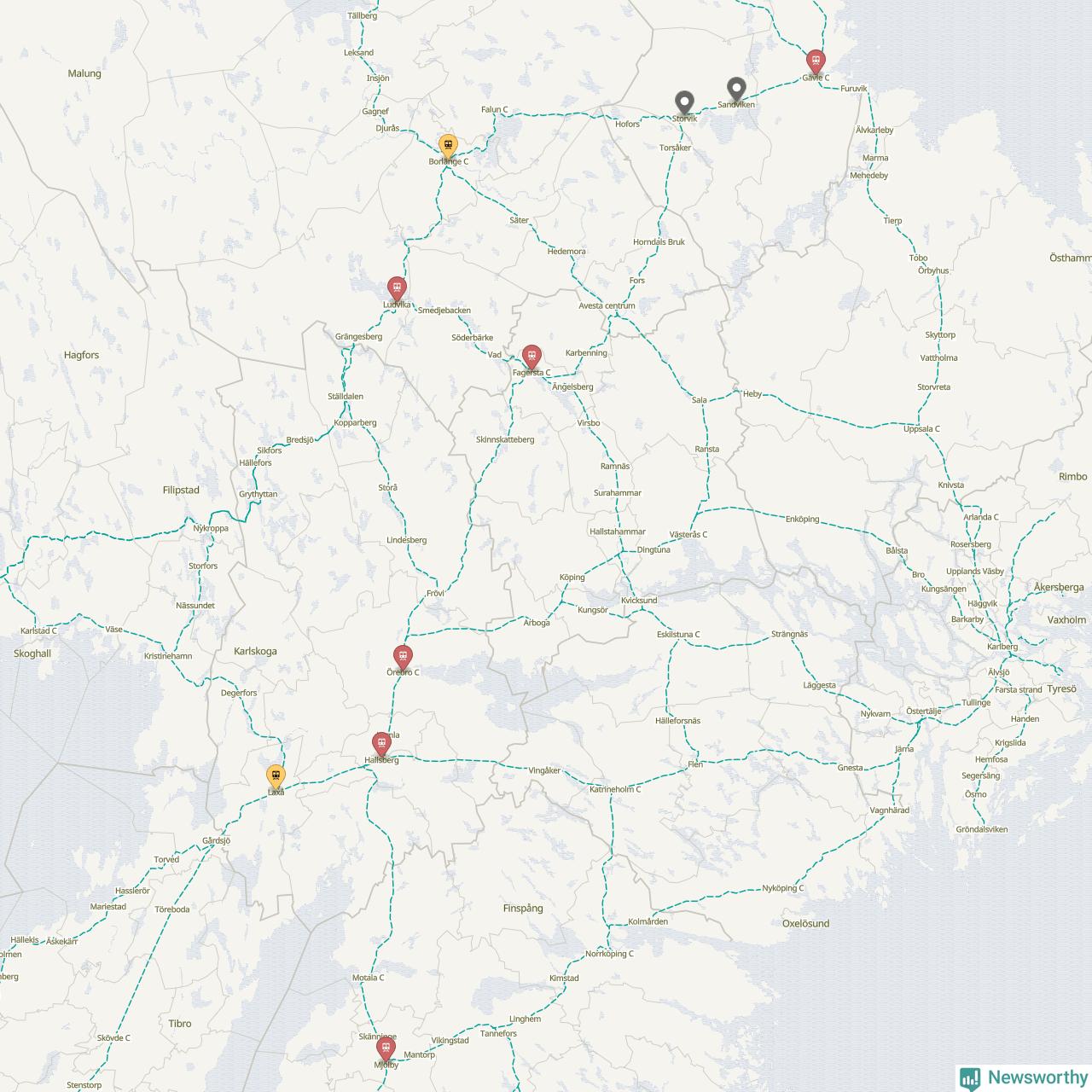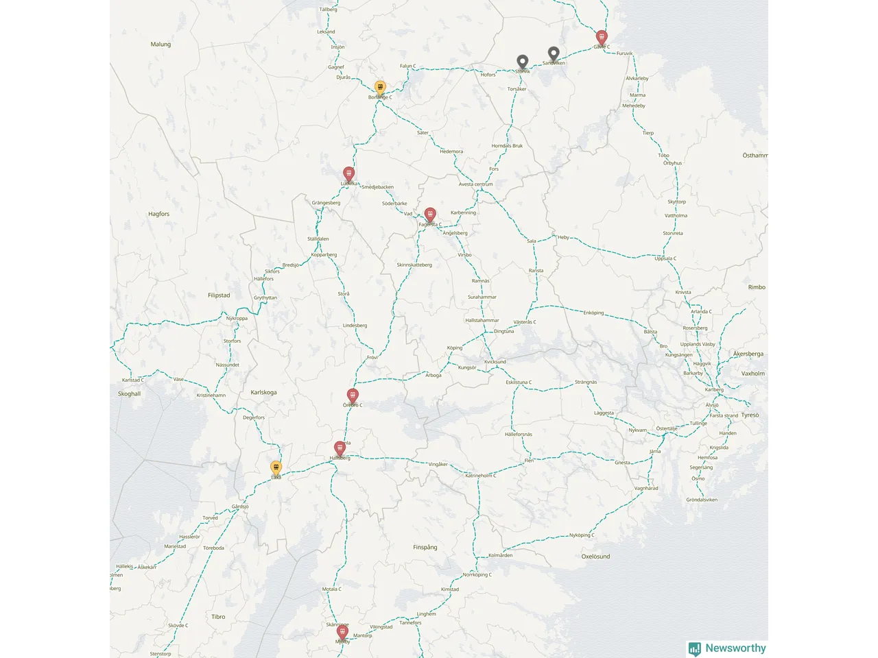 Kartdata från Mapbox, Newsworthy, OpenStreetMap och Trafikverket. Uppgifter om sträckor med passagerartrafik från jarnvag.net.