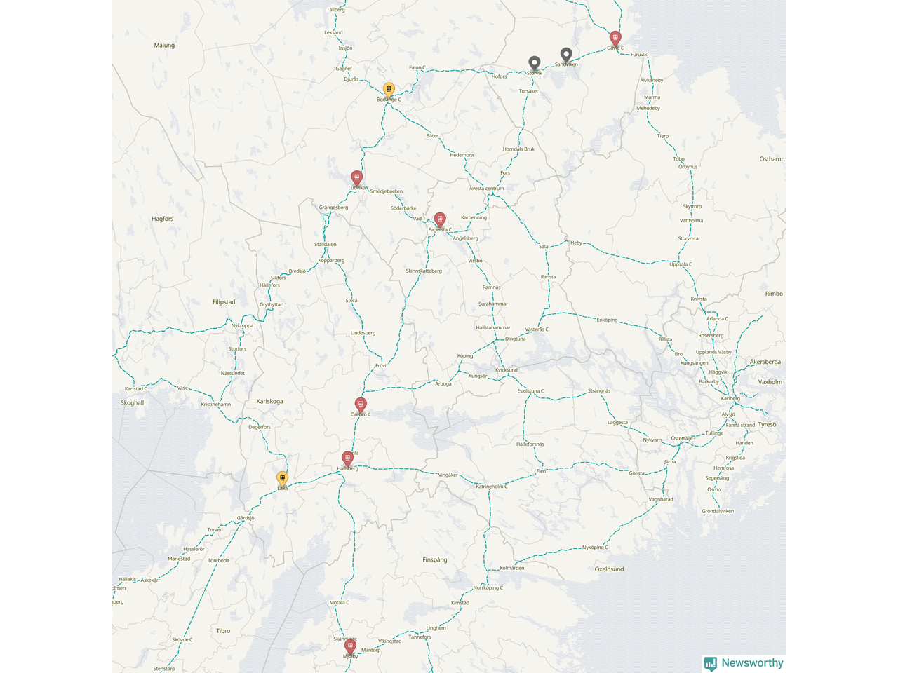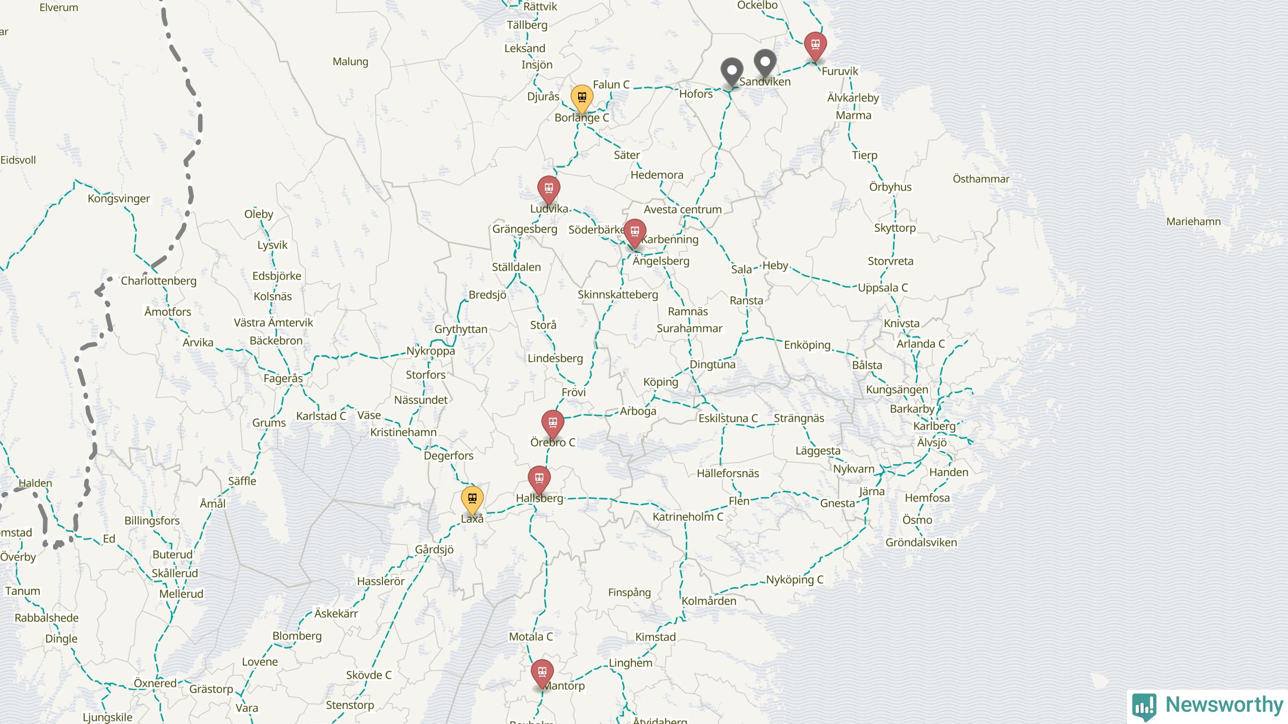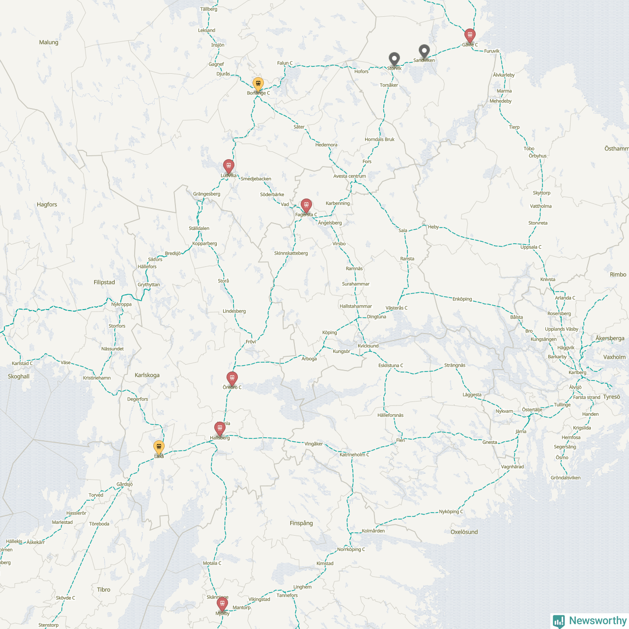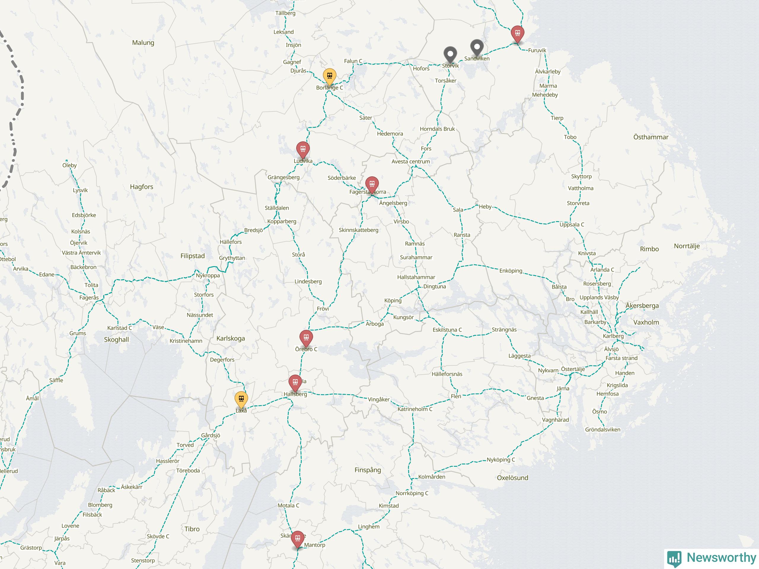 Kartdata från Mapbox, Newsworthy, OpenStreetMap och Trafikverket. Uppgifter om sträckor med passagerartrafik från jarnvag.net.