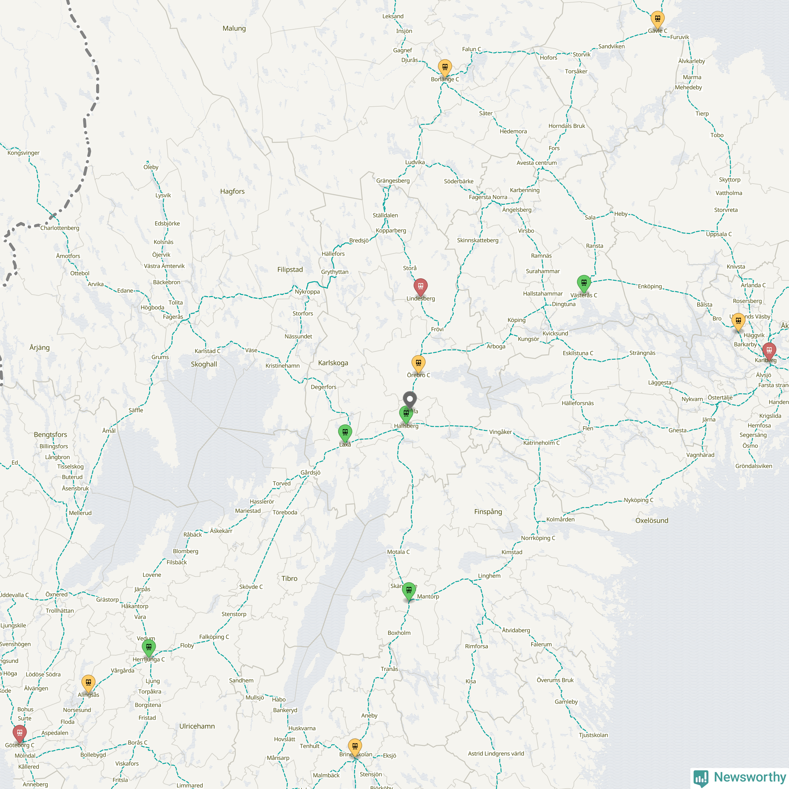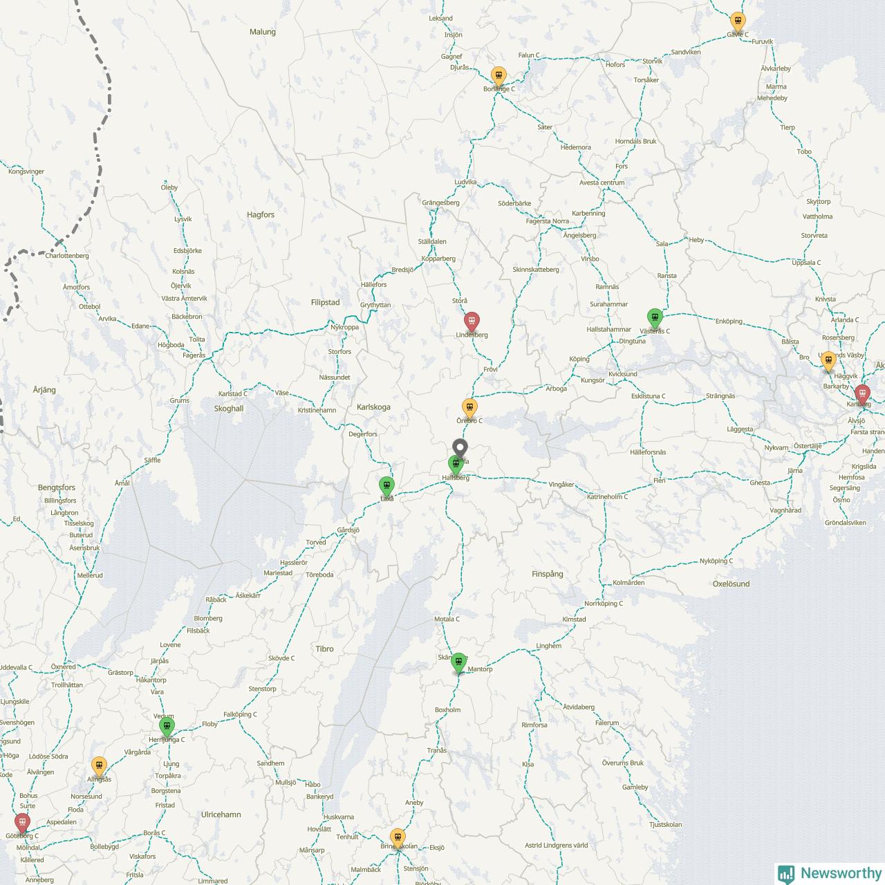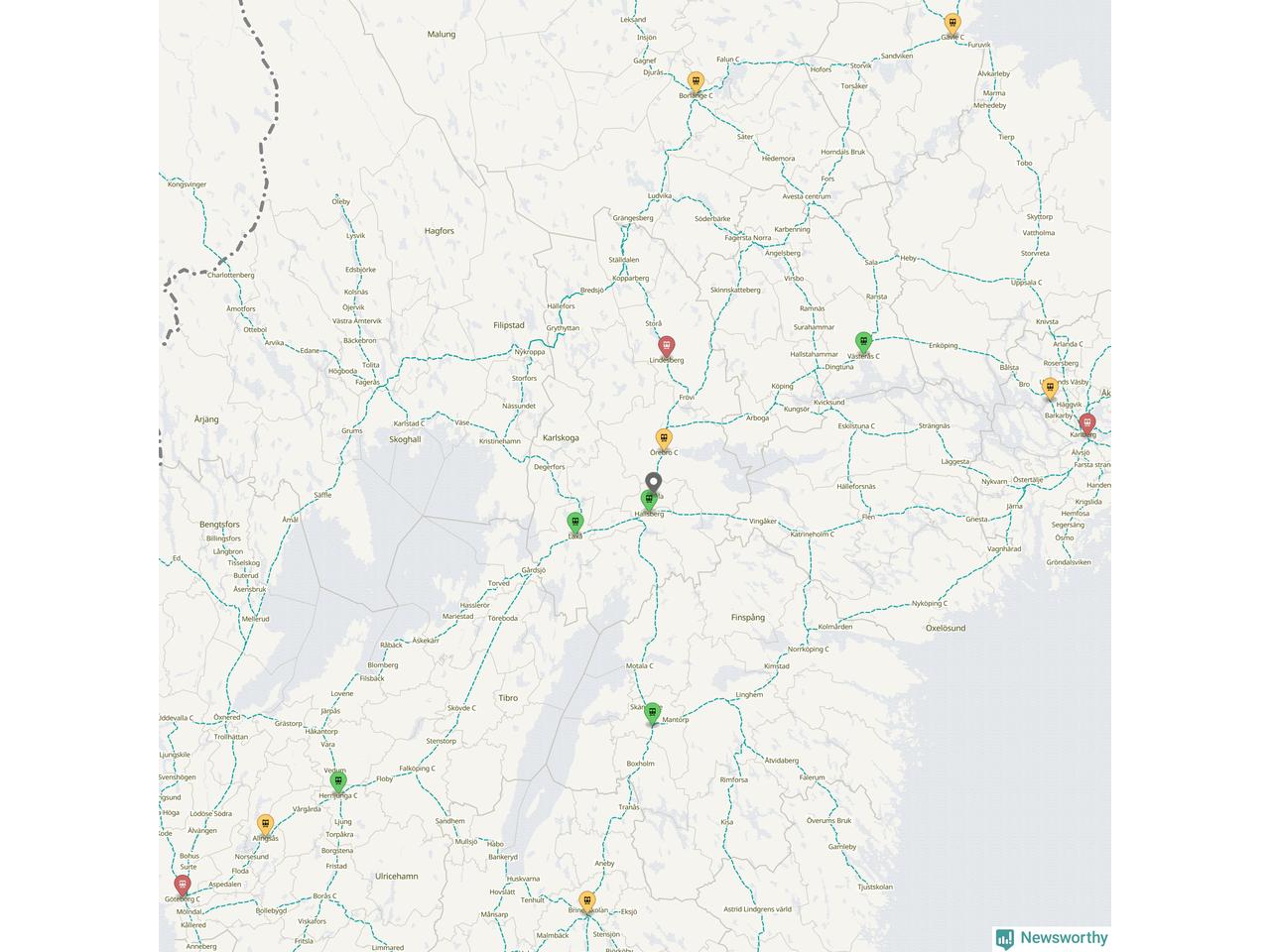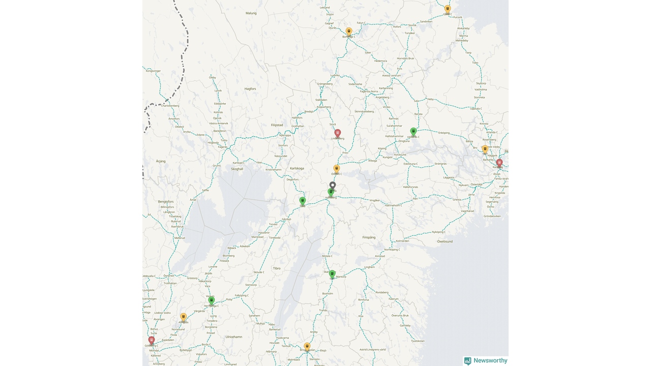 Kartdata från Mapbox, Newsworthy, OpenStreetMap och Trafikverket. Uppgifter om sträckor med passagerartrafik från jarnvag.net.