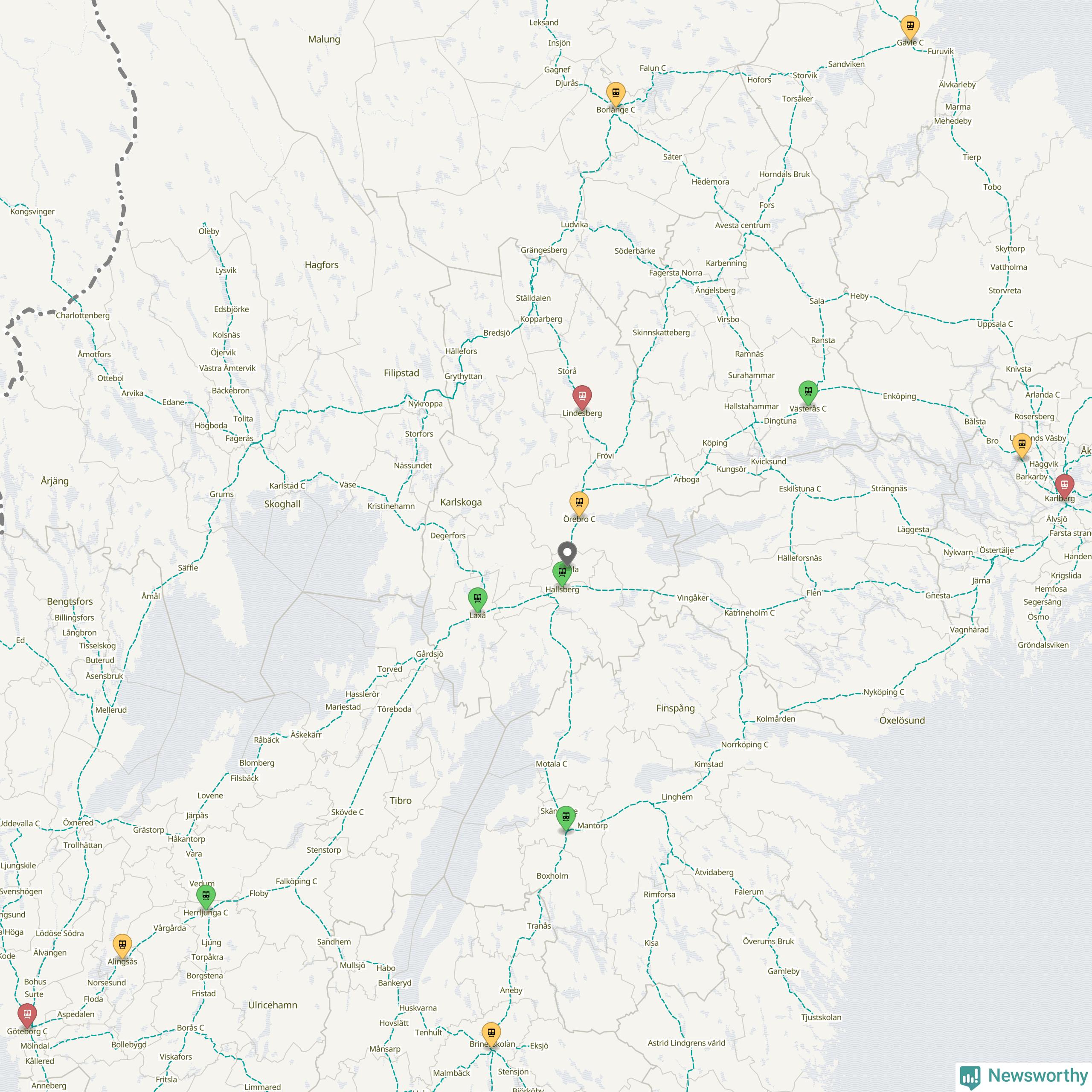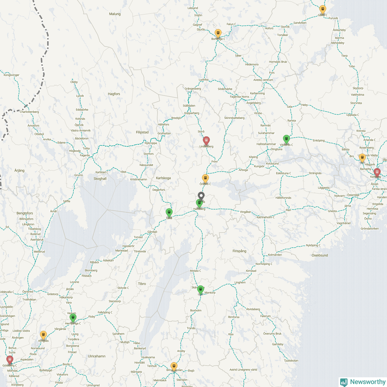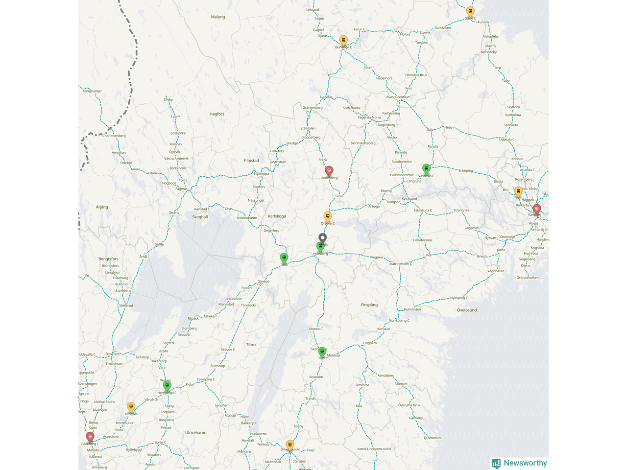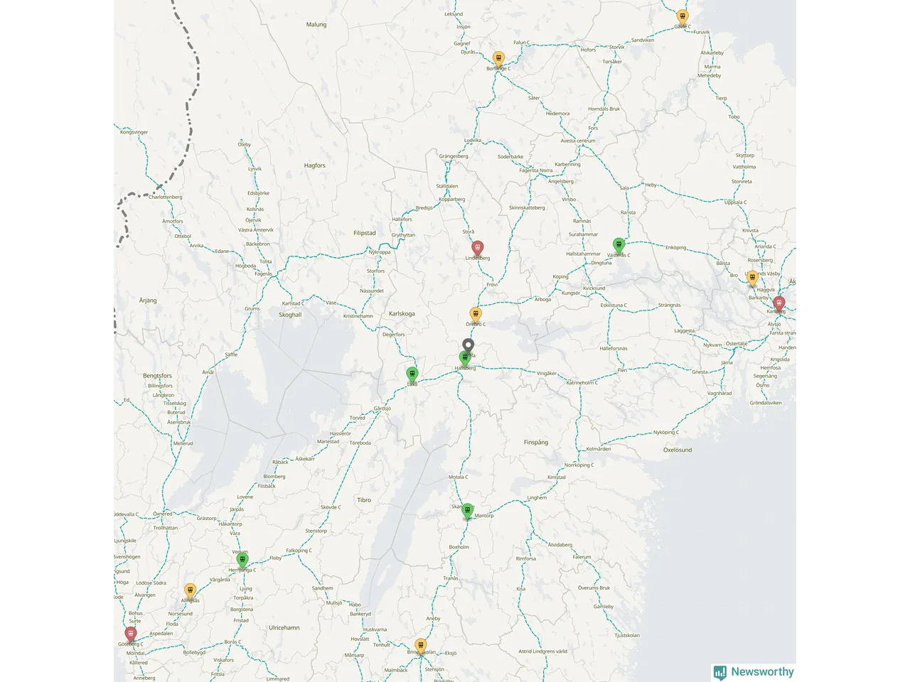 Kartdata från Mapbox, Newsworthy, OpenStreetMap och Trafikverket. Uppgifter om sträckor med passagerartrafik från jarnvag.net.