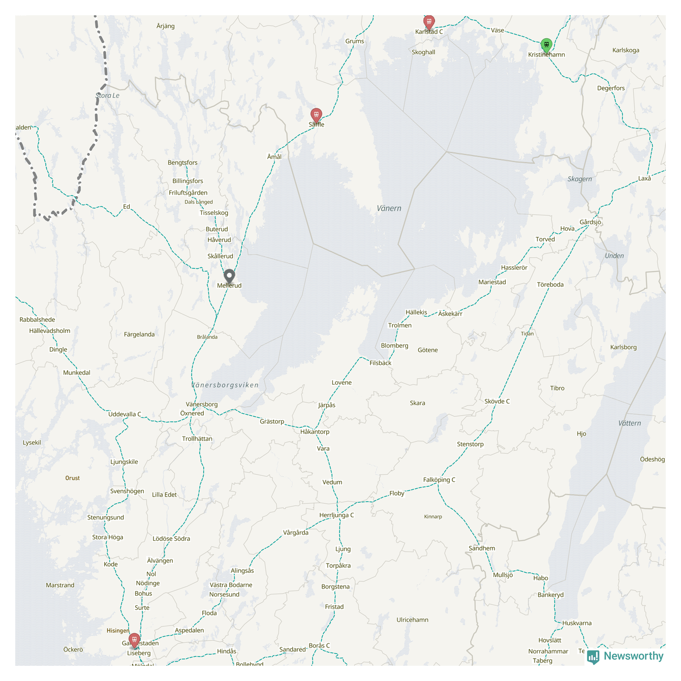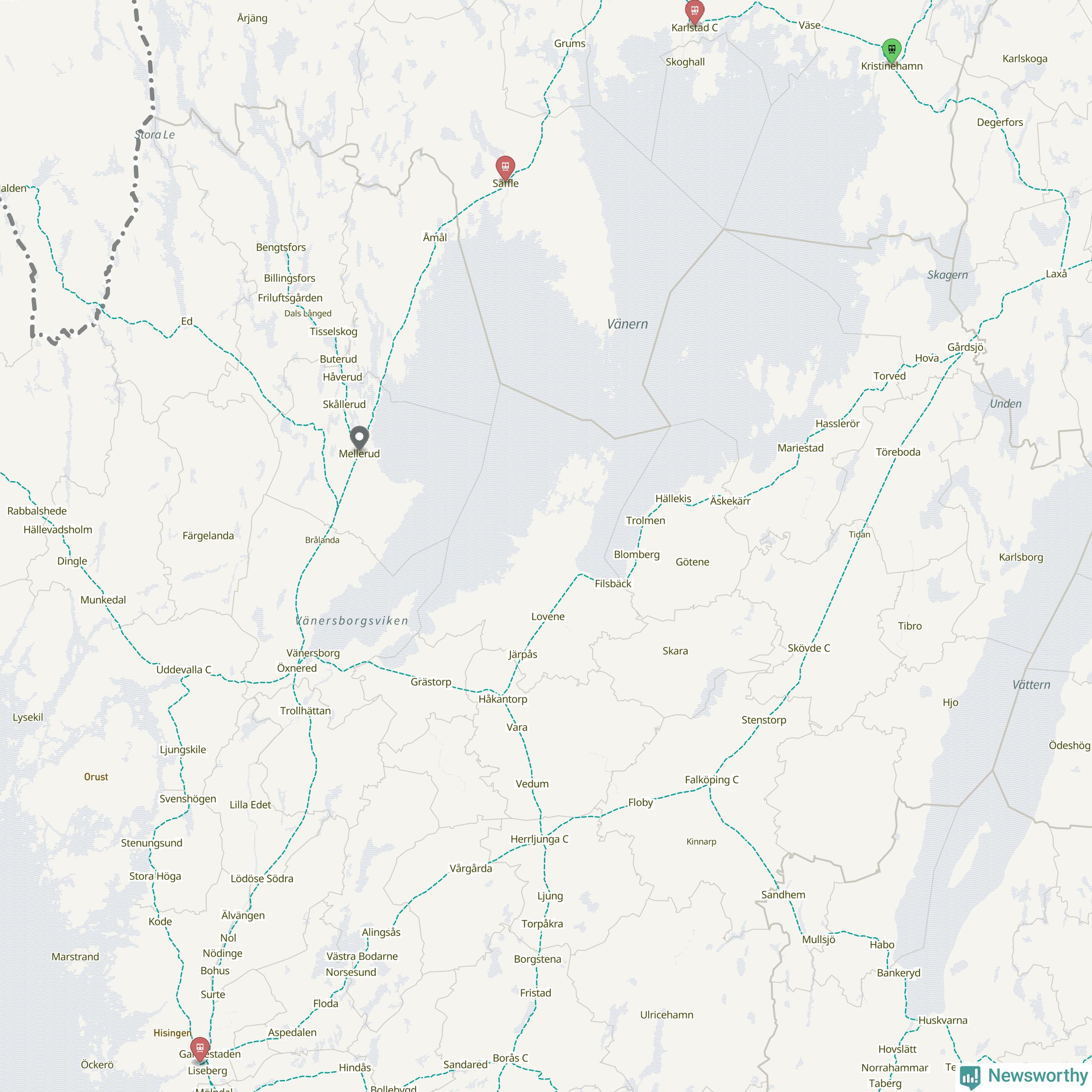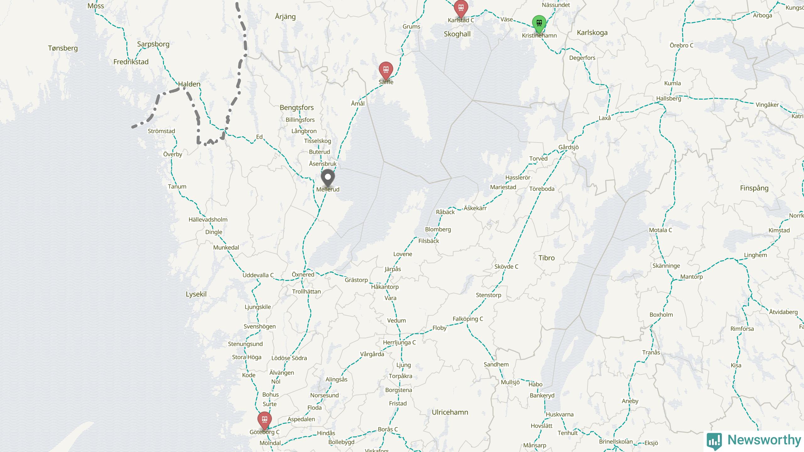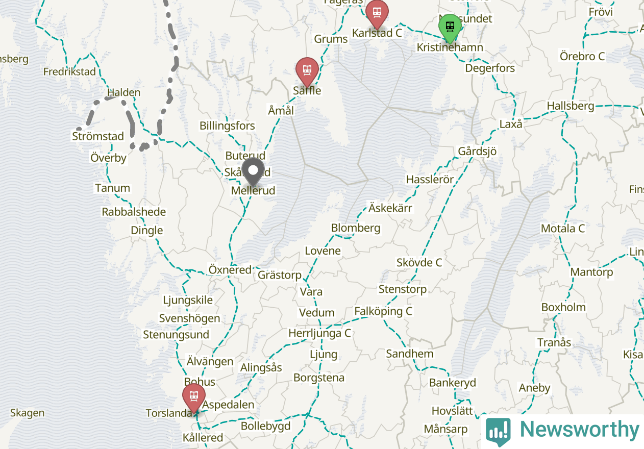 Kartdata från Mapbox, Newsworthy, OpenStreetMap och Trafikverket. Uppgifter om sträckor med passagerartrafik från jarnvag.net.