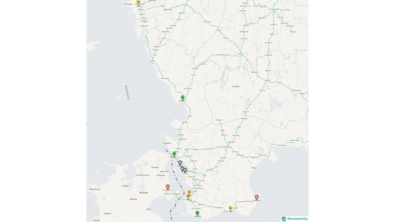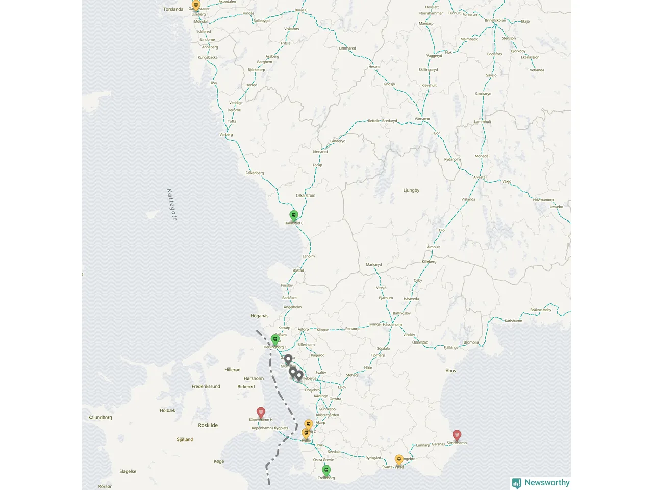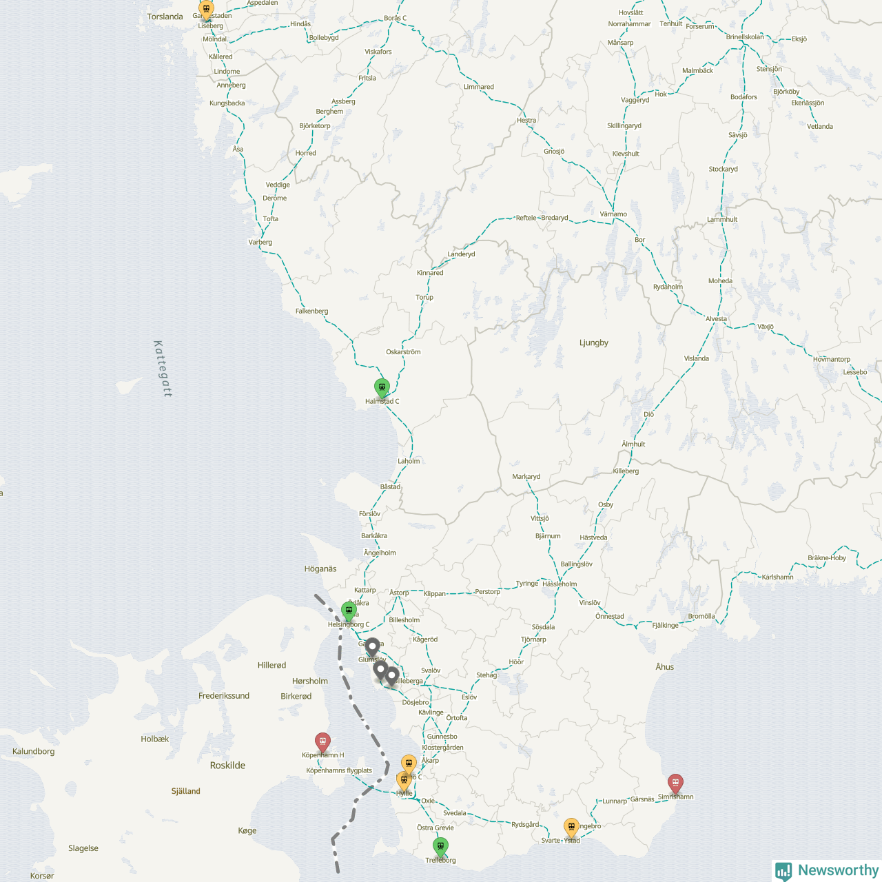 Kartdata från Mapbox, Newsworthy, OpenStreetMap och Trafikverket. Uppgifter om sträckor med passagerartrafik från jarnvag.net.