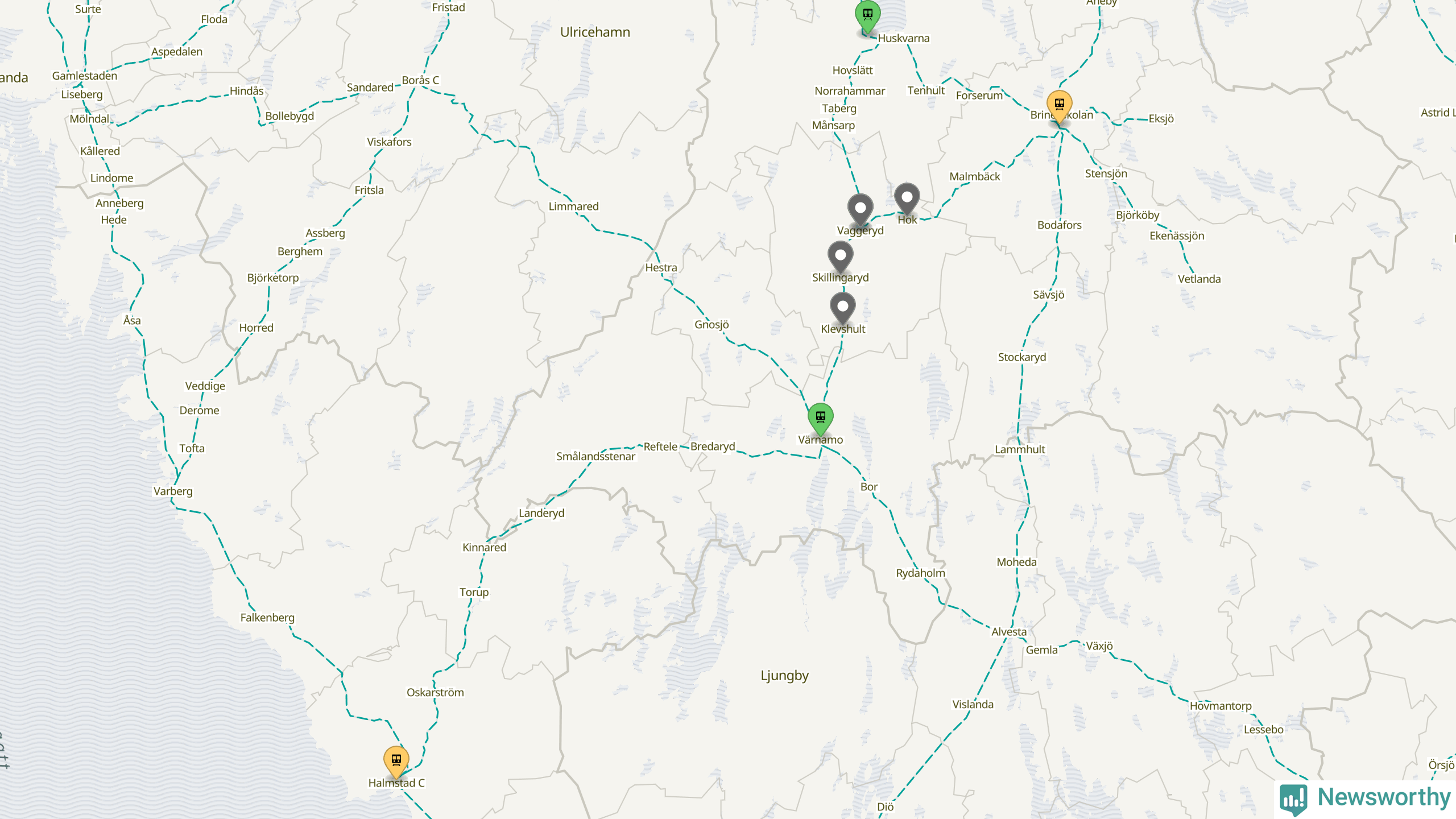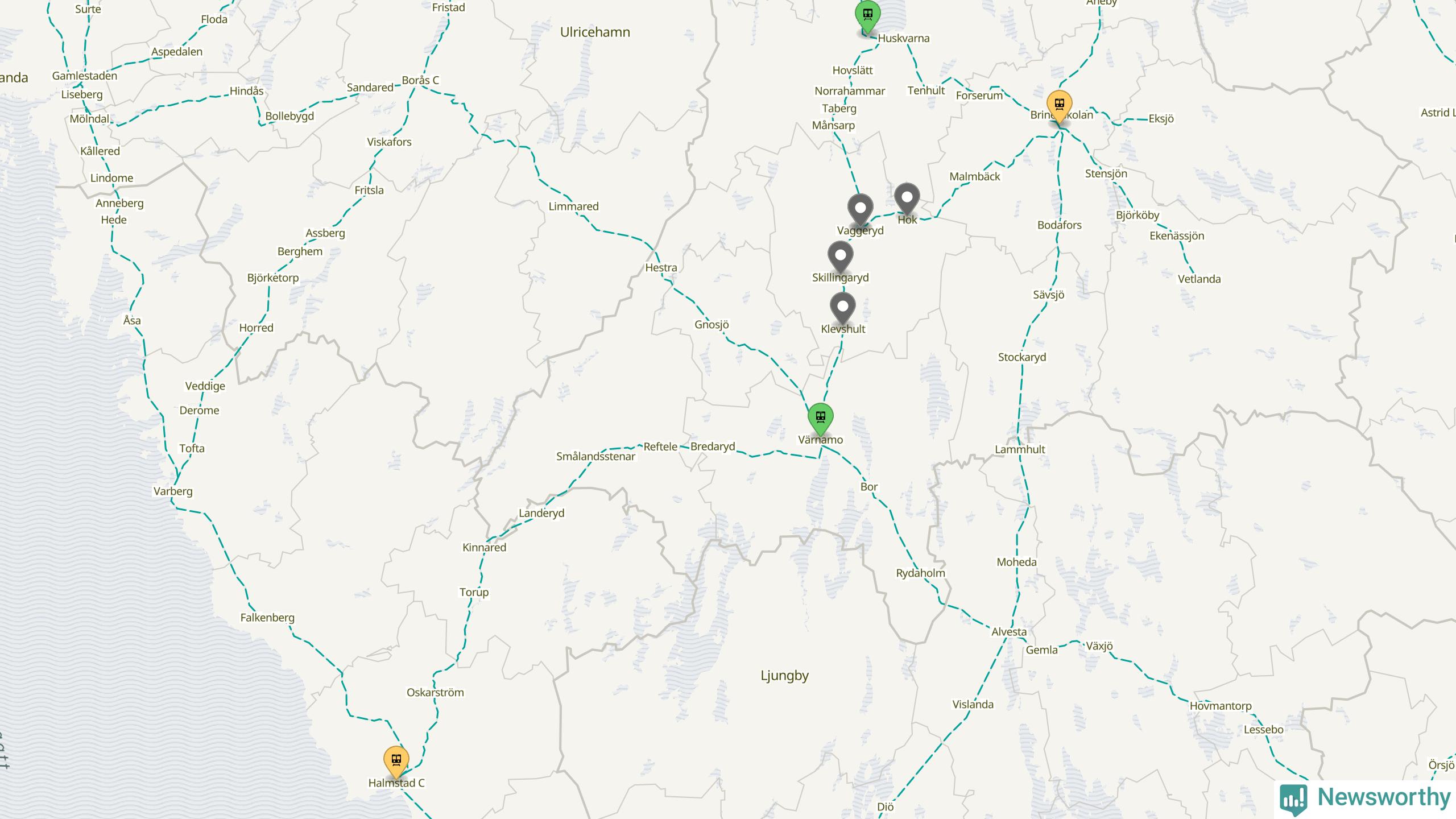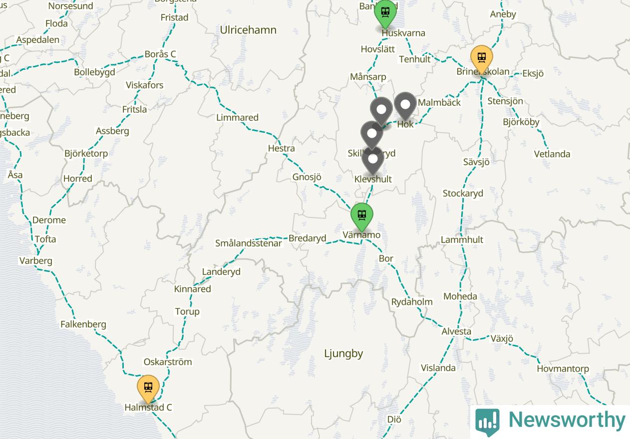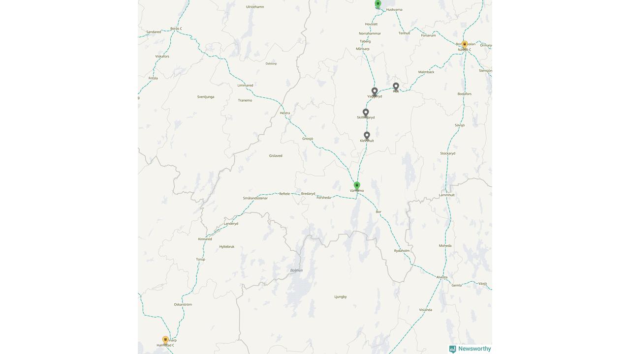 Kartdata från Mapbox, Newsworthy, OpenStreetMap och Trafikverket. Uppgifter om sträckor med passagerartrafik från jarnvag.net.