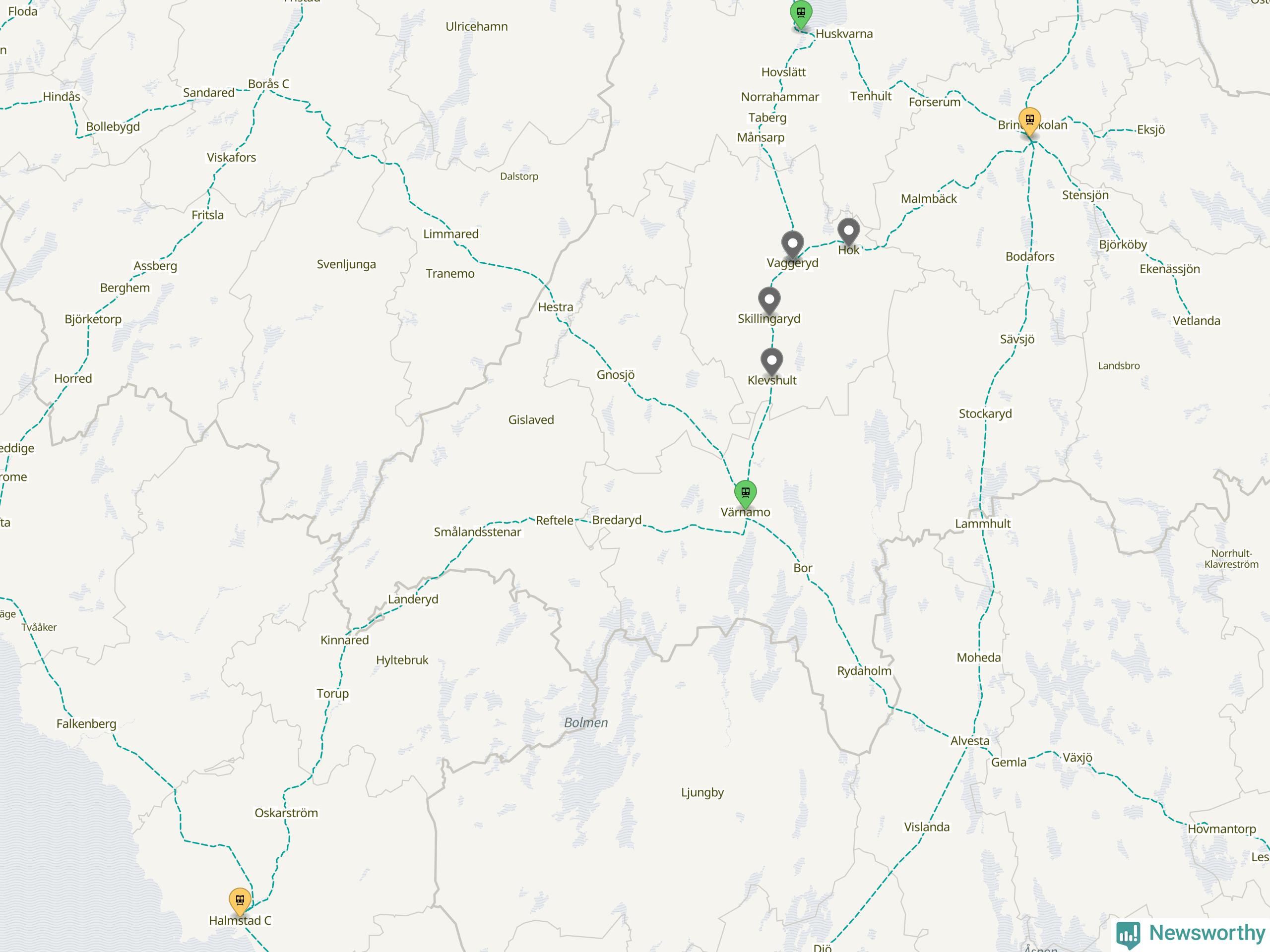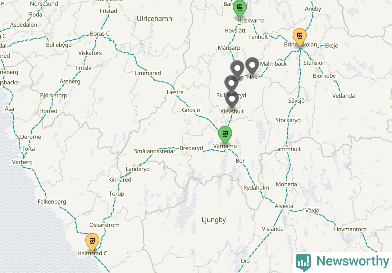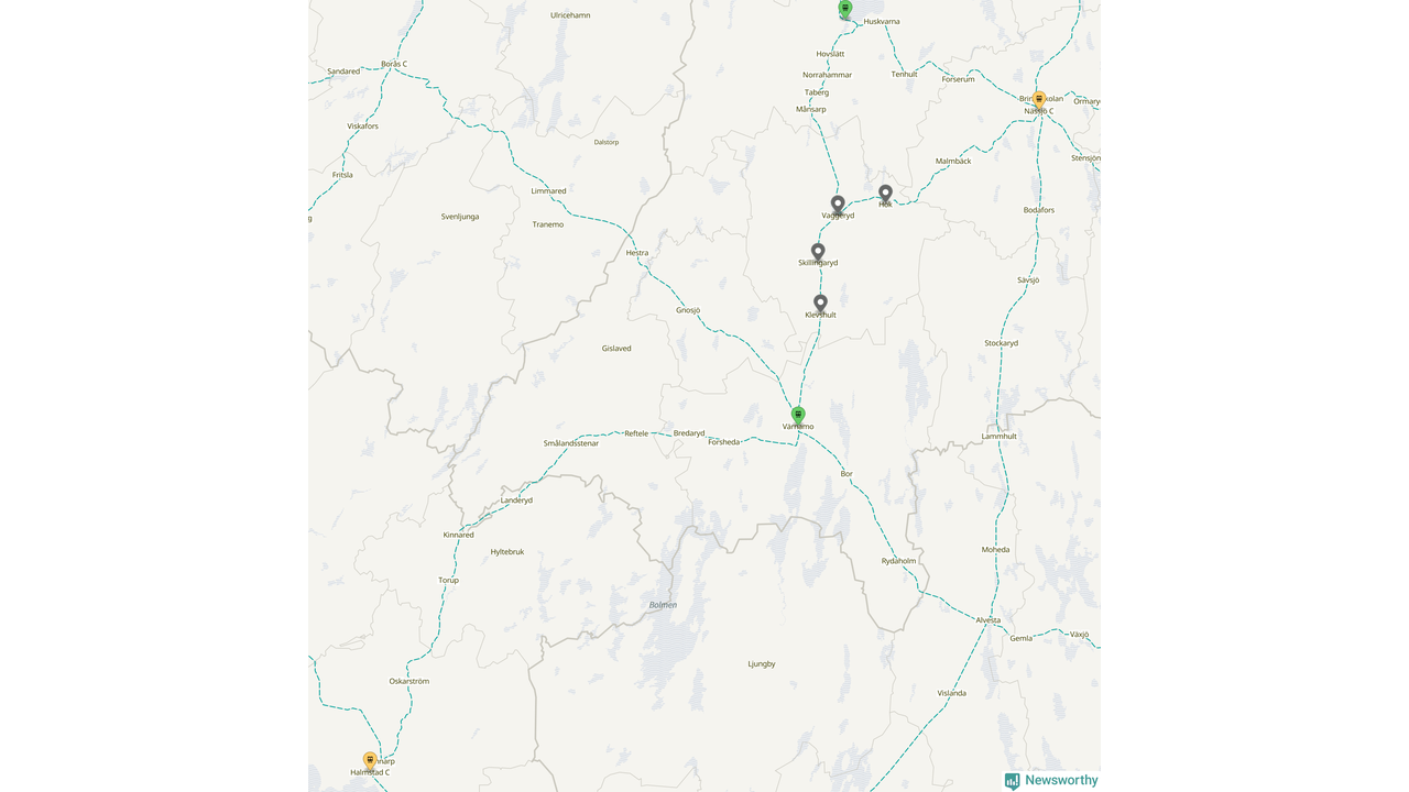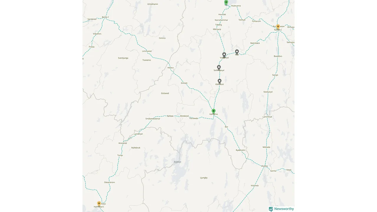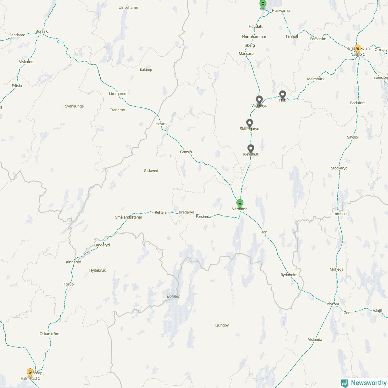 Kartdata från Mapbox, Newsworthy, OpenStreetMap och Trafikverket. Uppgifter om sträckor med passagerartrafik från jarnvag.net.