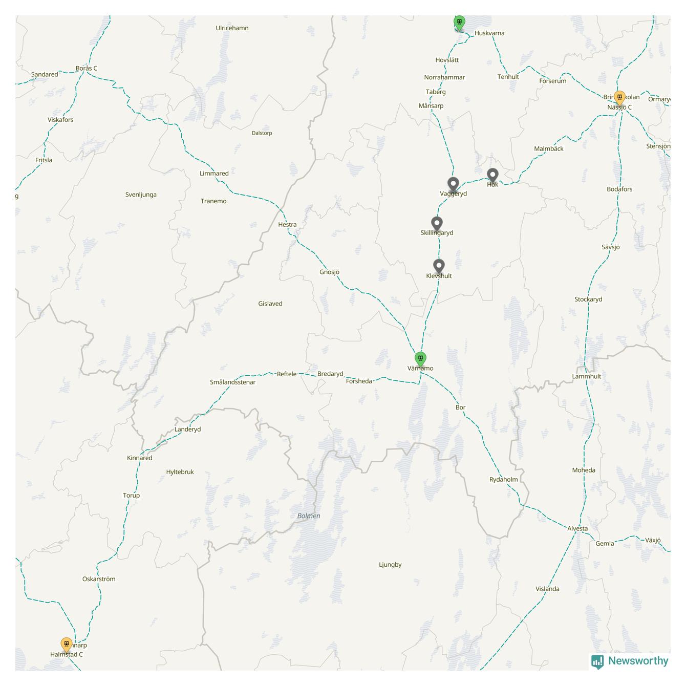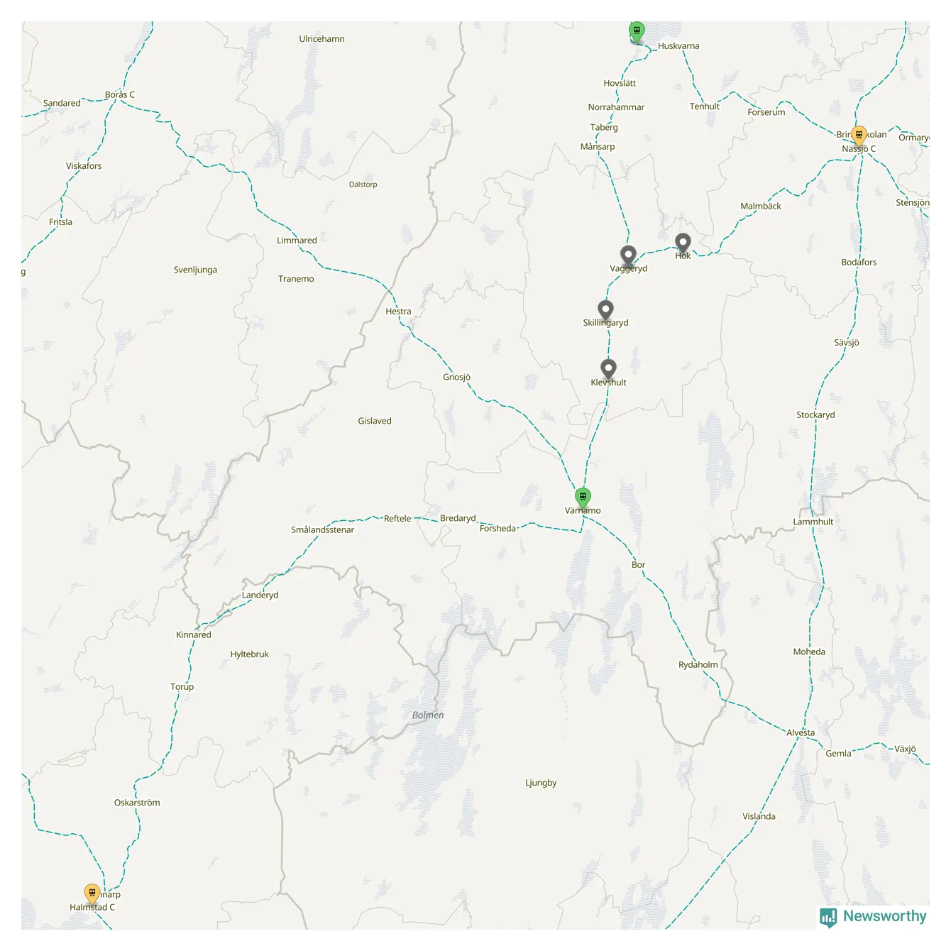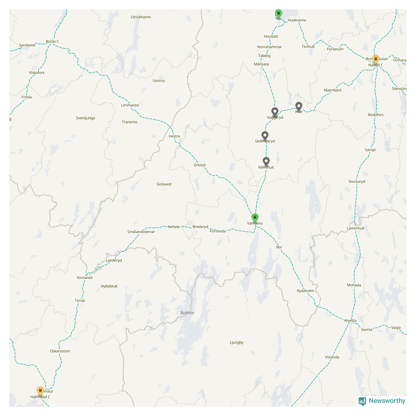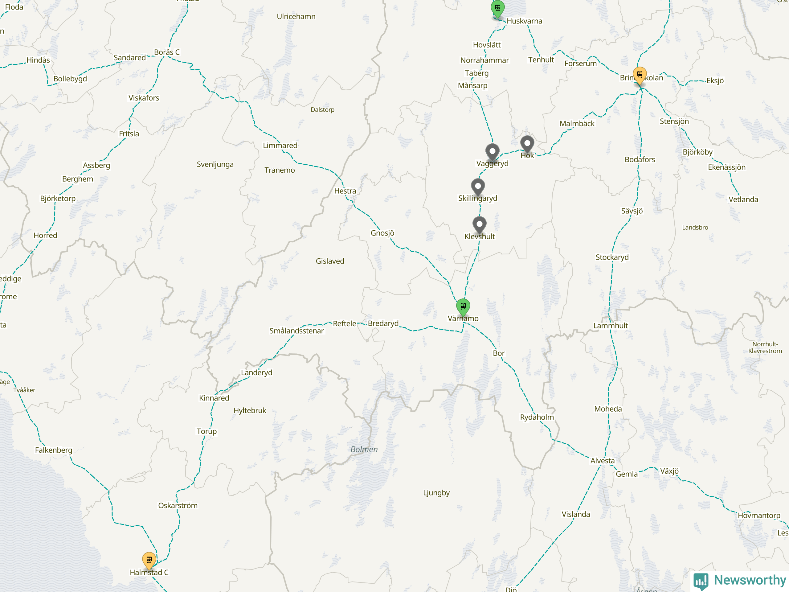 Kartdata från Mapbox, Newsworthy, OpenStreetMap och Trafikverket. Uppgifter om sträckor med passagerartrafik från jarnvag.net.