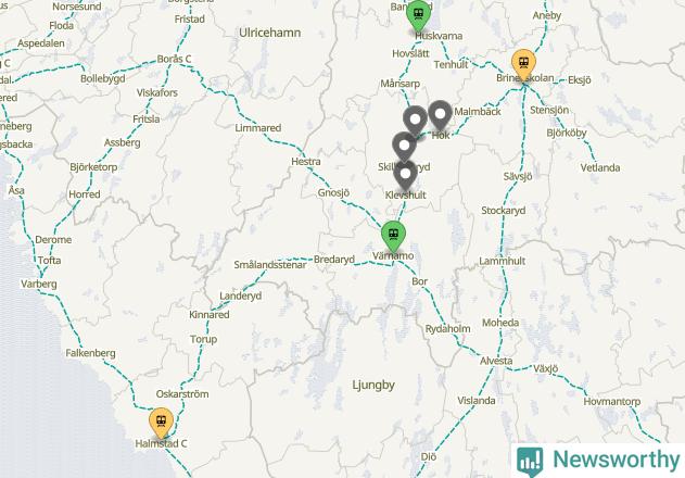 Dagen med flest sena tåg var onsdag den 5 november, när 18 procent av tågen var mer än fem minuter försenade vid ankomst. Det enskilt mest försenade tåget var tåg 7641 (Krösatågen), mellan Nässjö C och Halmstad C, som var 59 minuter sent när det passerade Vaggeryds kommun på kvällen fredag den 21:a. Det senaste stationsmeddelandet vi sparat från det tåget löd: Fordonsfel.