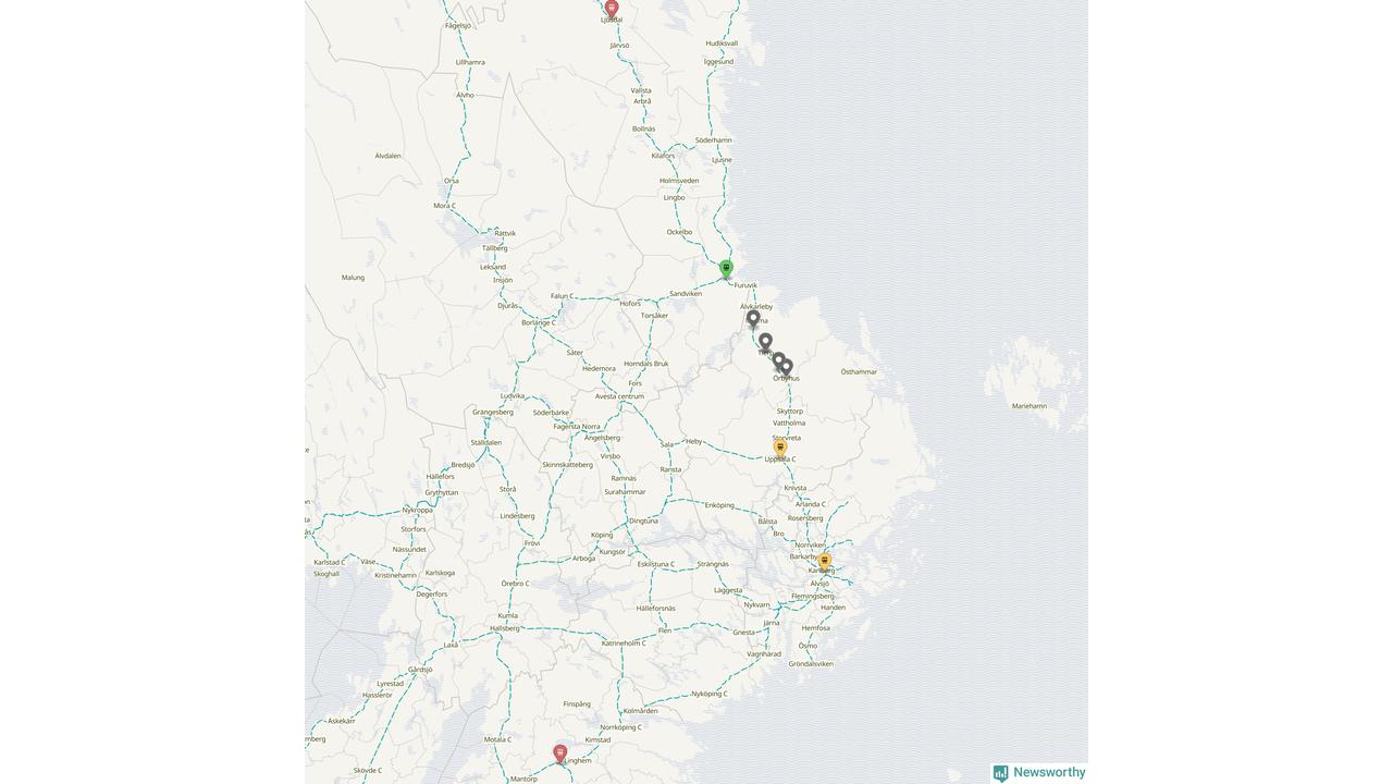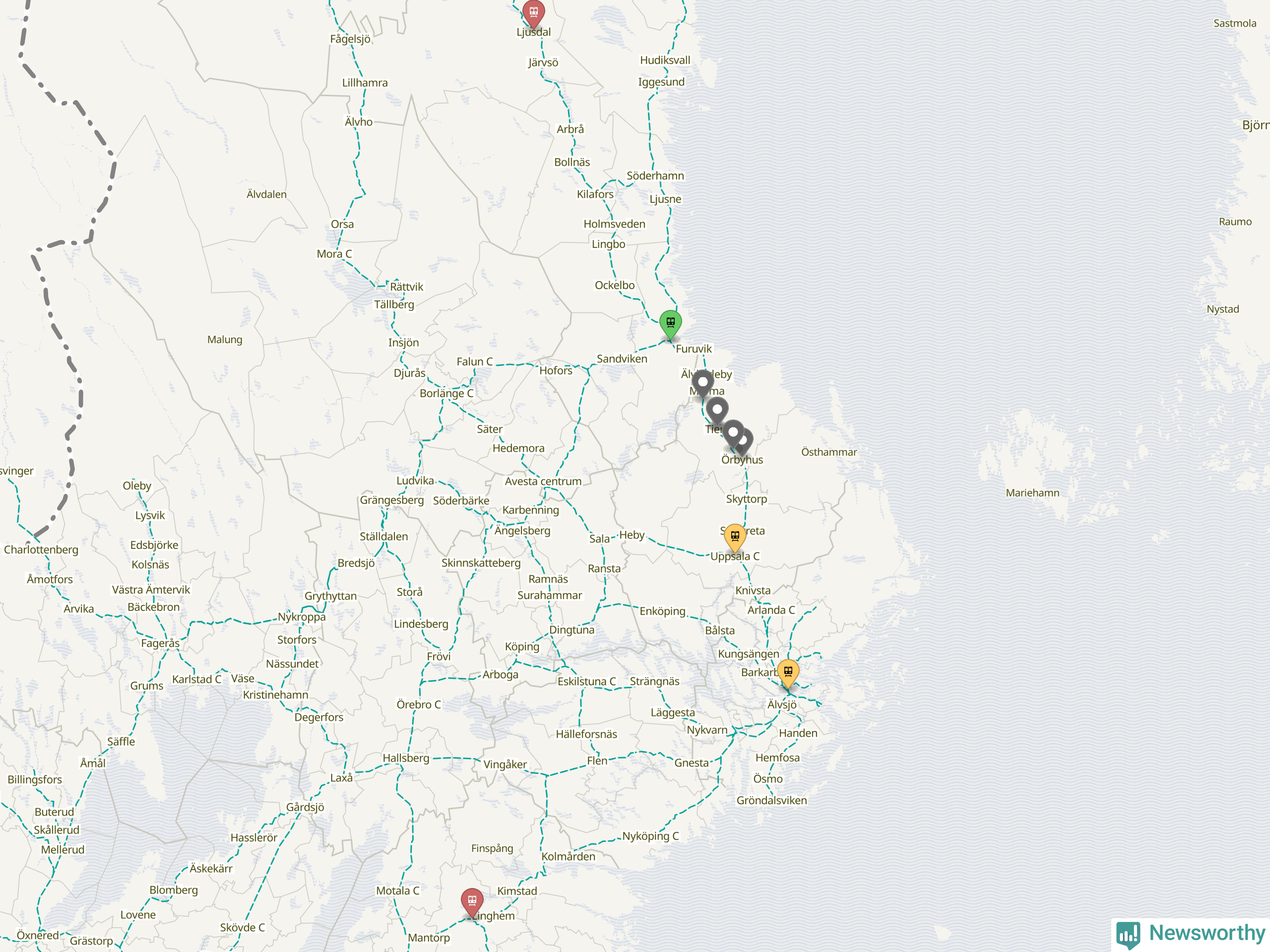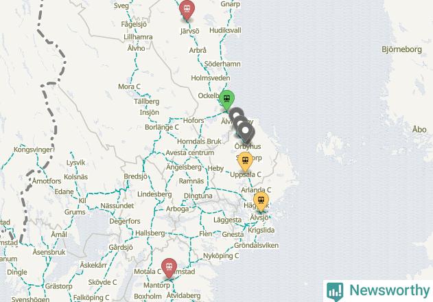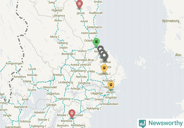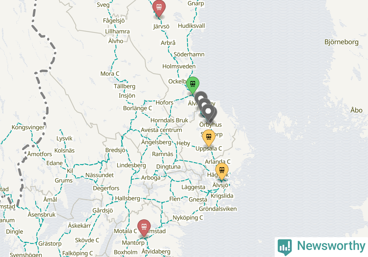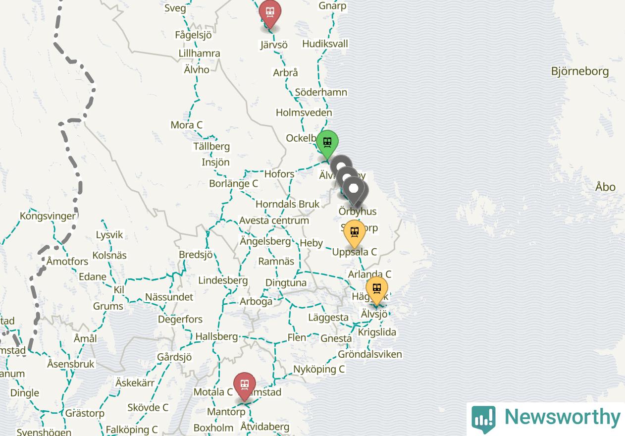Kartdata från Mapbox, Newsworthy, OpenStreetMap och Trafikverket. Uppgifter om sträckor med passagerartrafik från jarnvag.net.