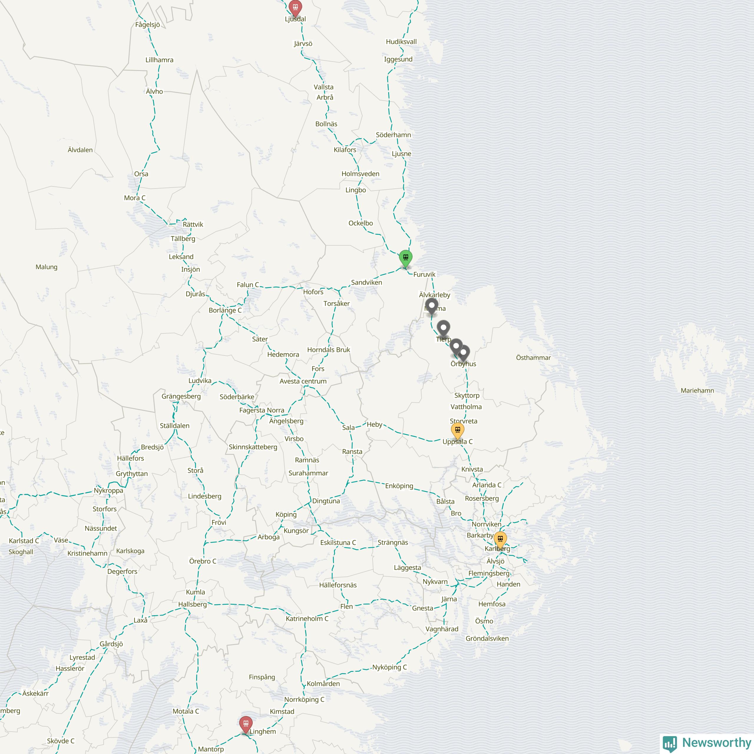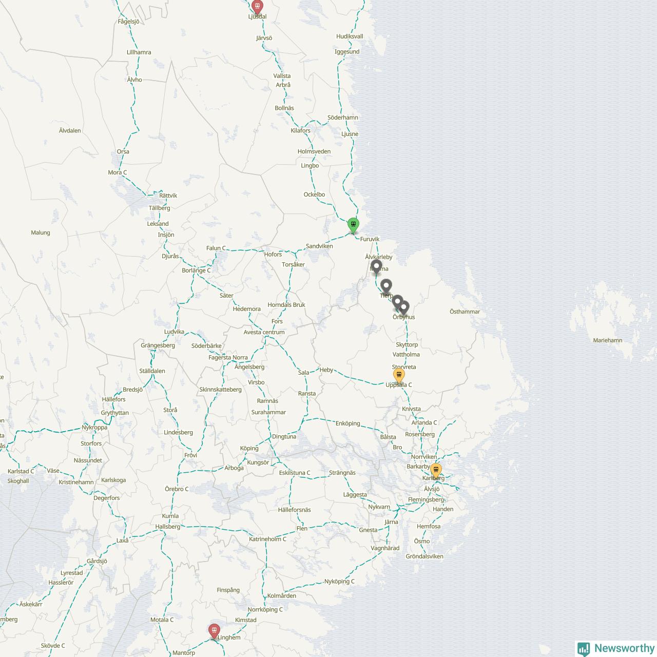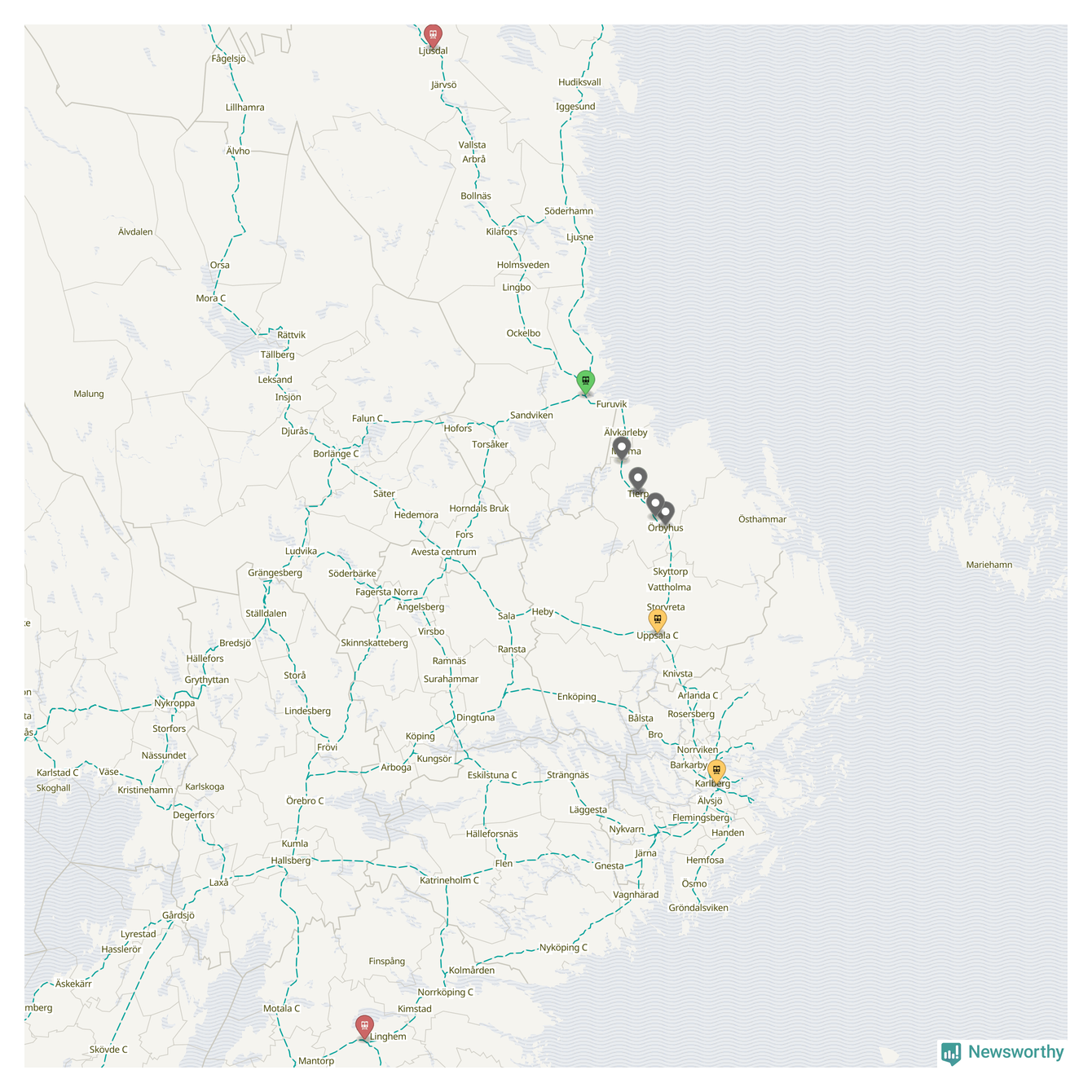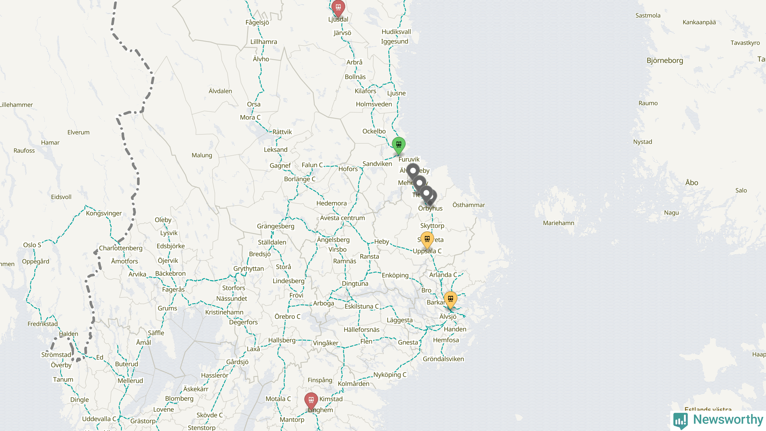 Kartdata från Mapbox, Newsworthy, OpenStreetMap och Trafikverket. Uppgifter om sträckor med passagerartrafik från jarnvag.net.