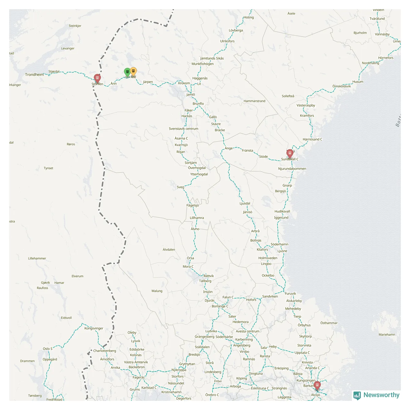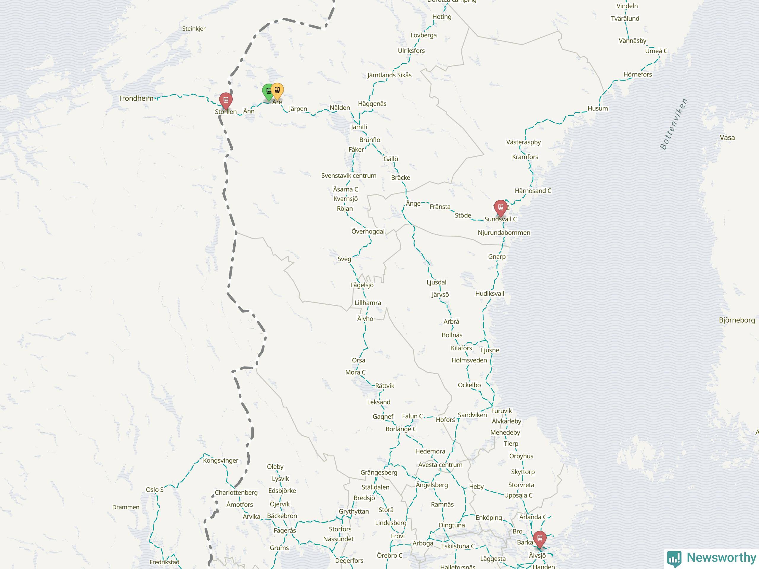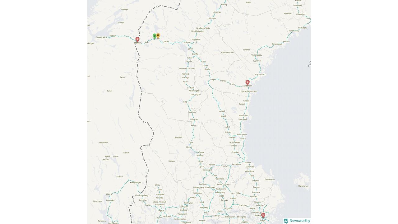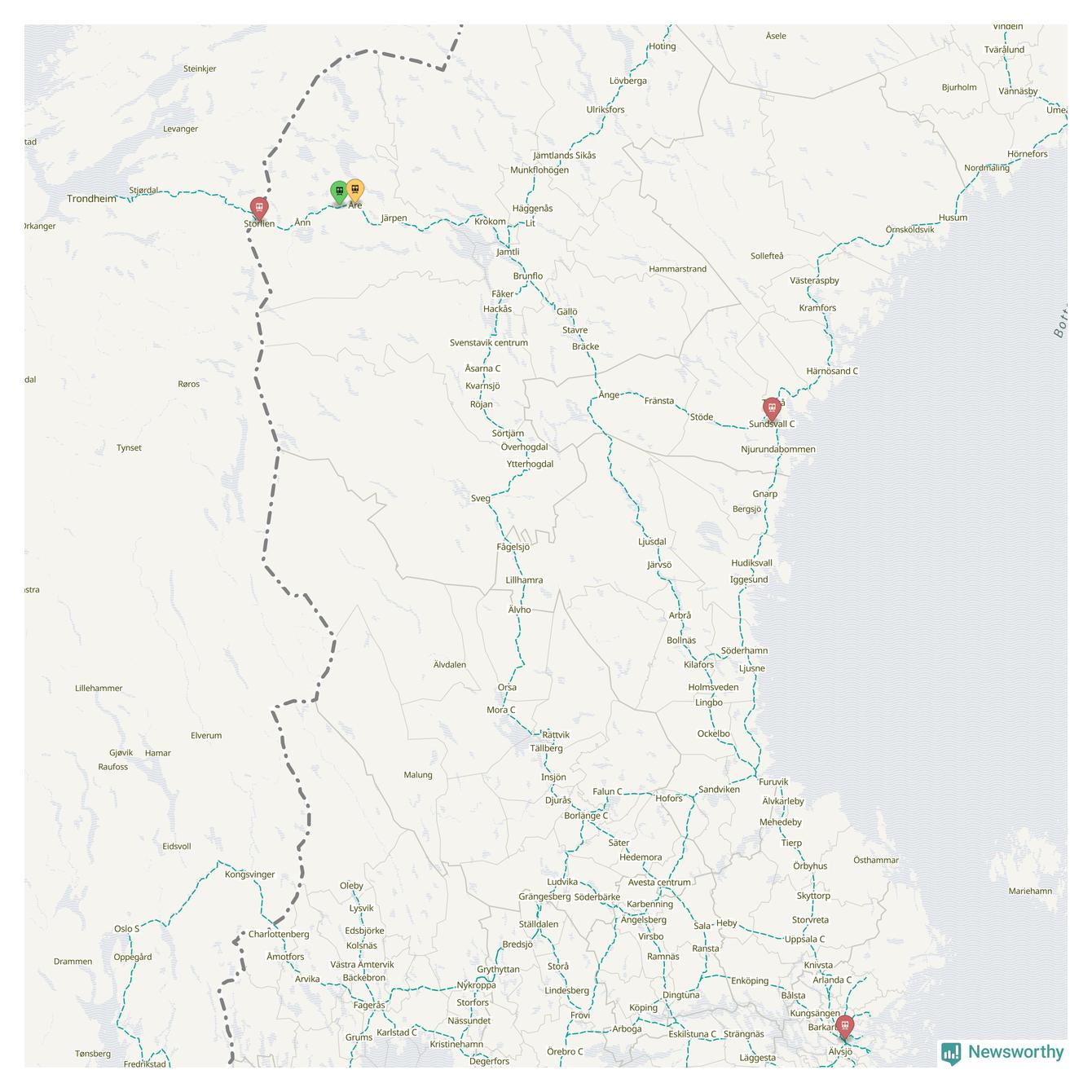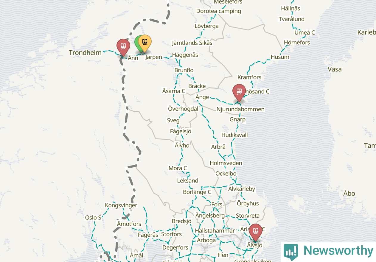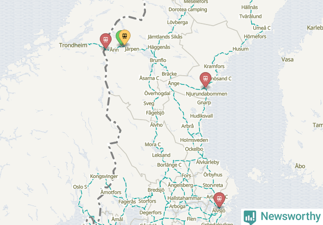 Kartdata från Mapbox, Newsworthy, OpenStreetMap och Trafikverket. Uppgifter om sträckor med passagerartrafik från jarnvag.net.
