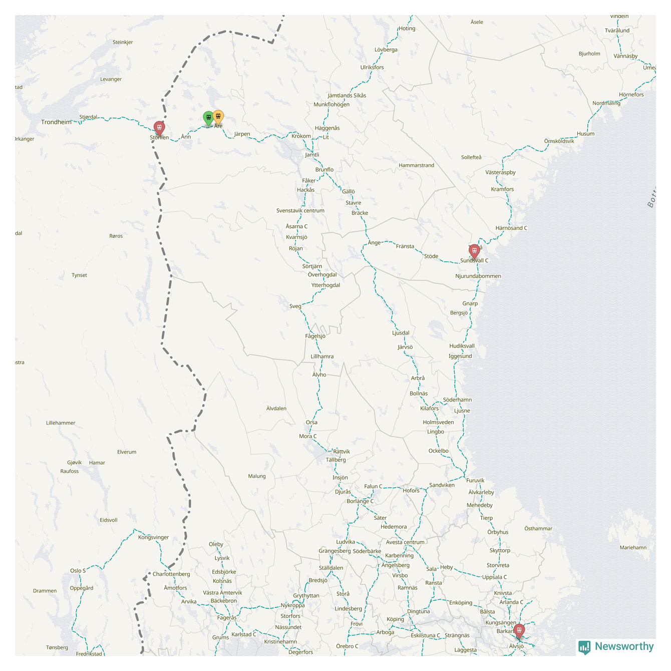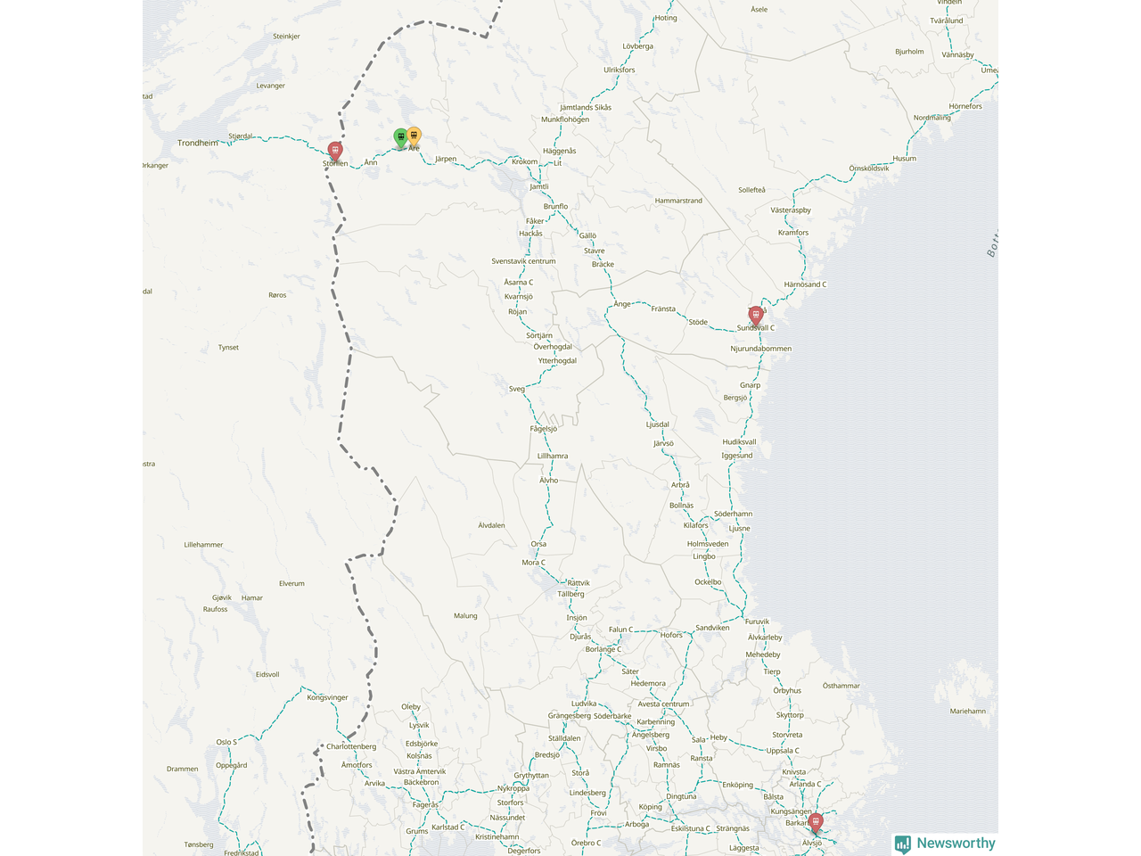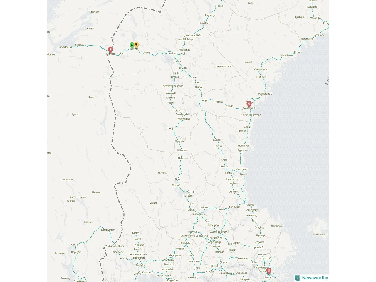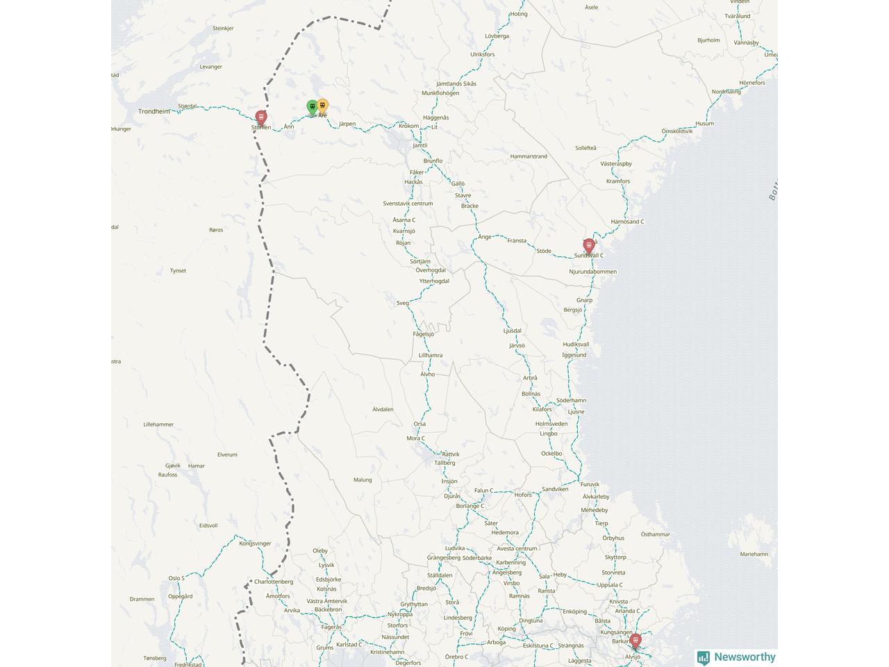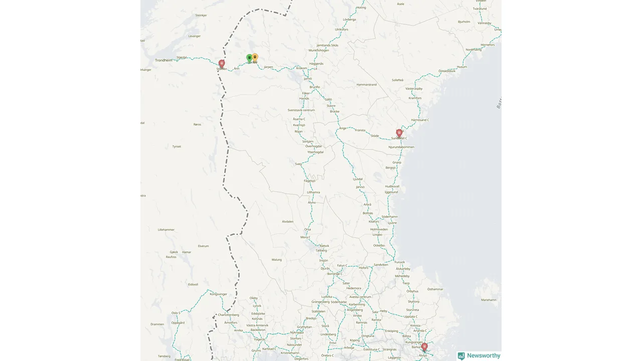 Kartdata från Mapbox, Newsworthy, OpenStreetMap och Trafikverket. Uppgifter om sträckor med passagerartrafik från jarnvag.net.