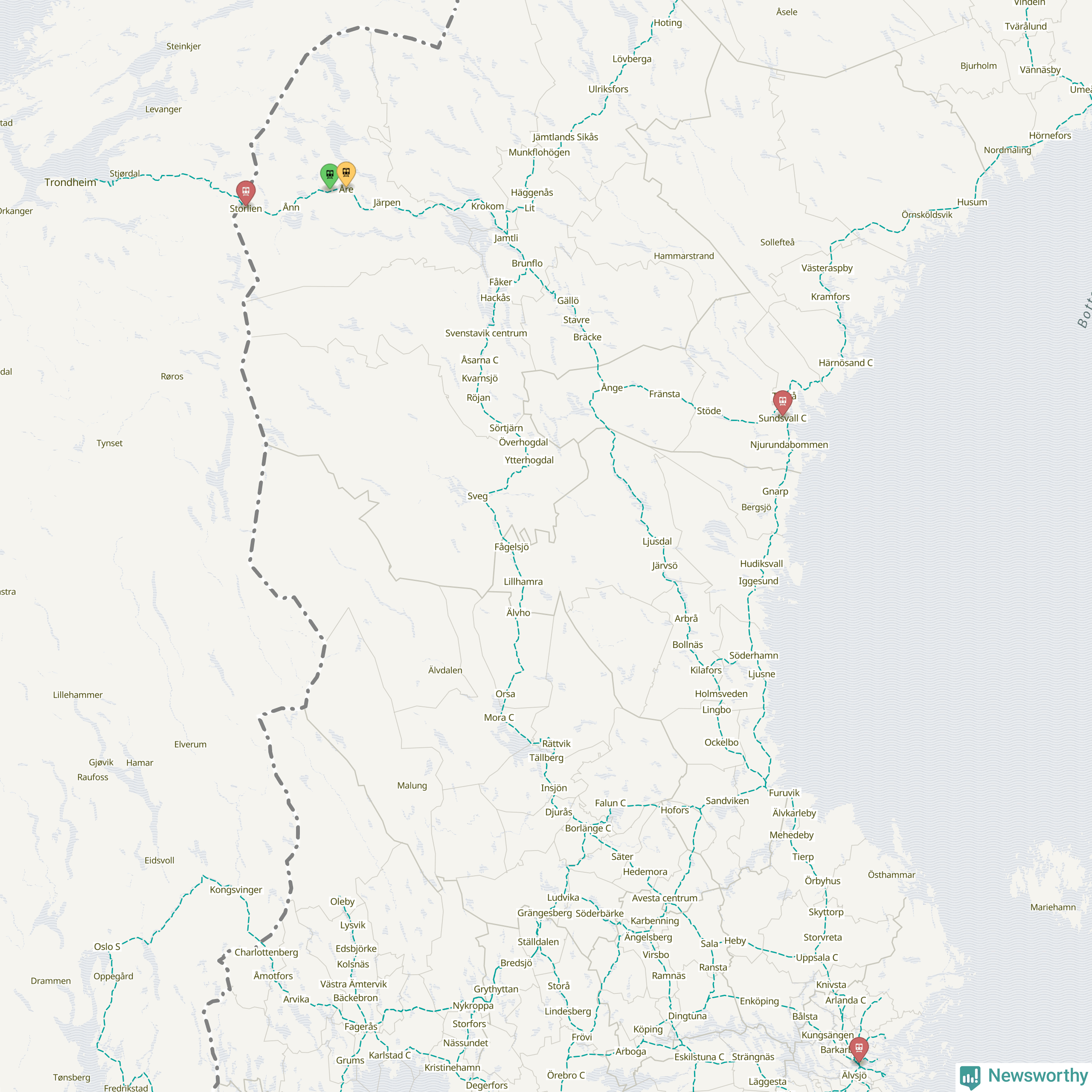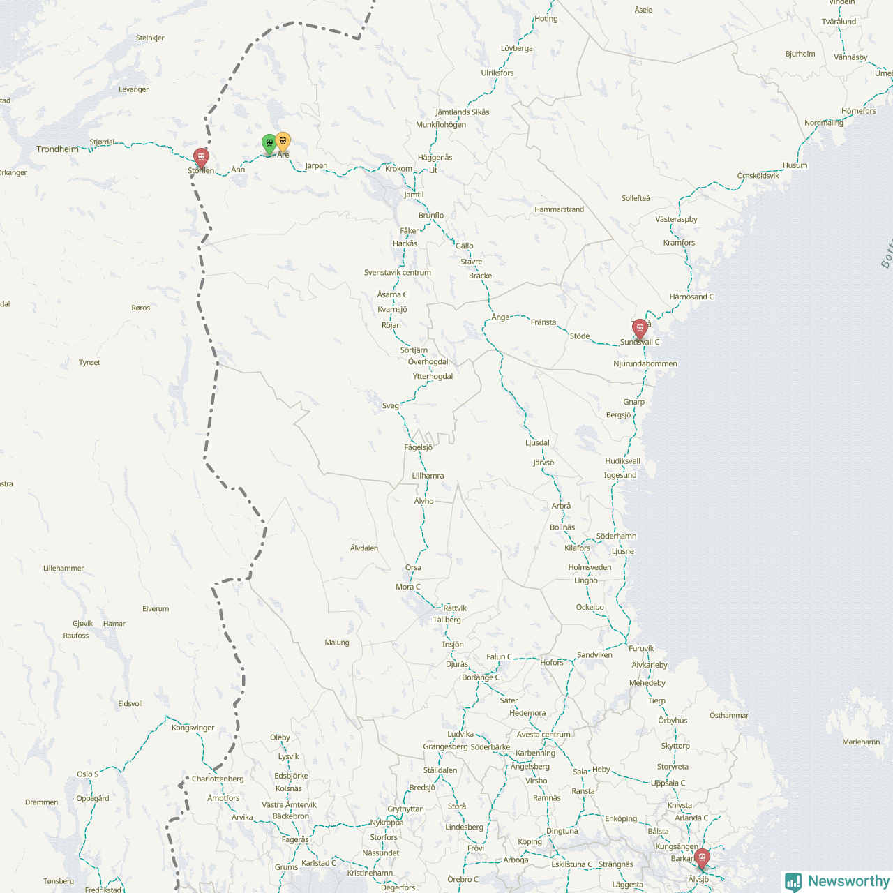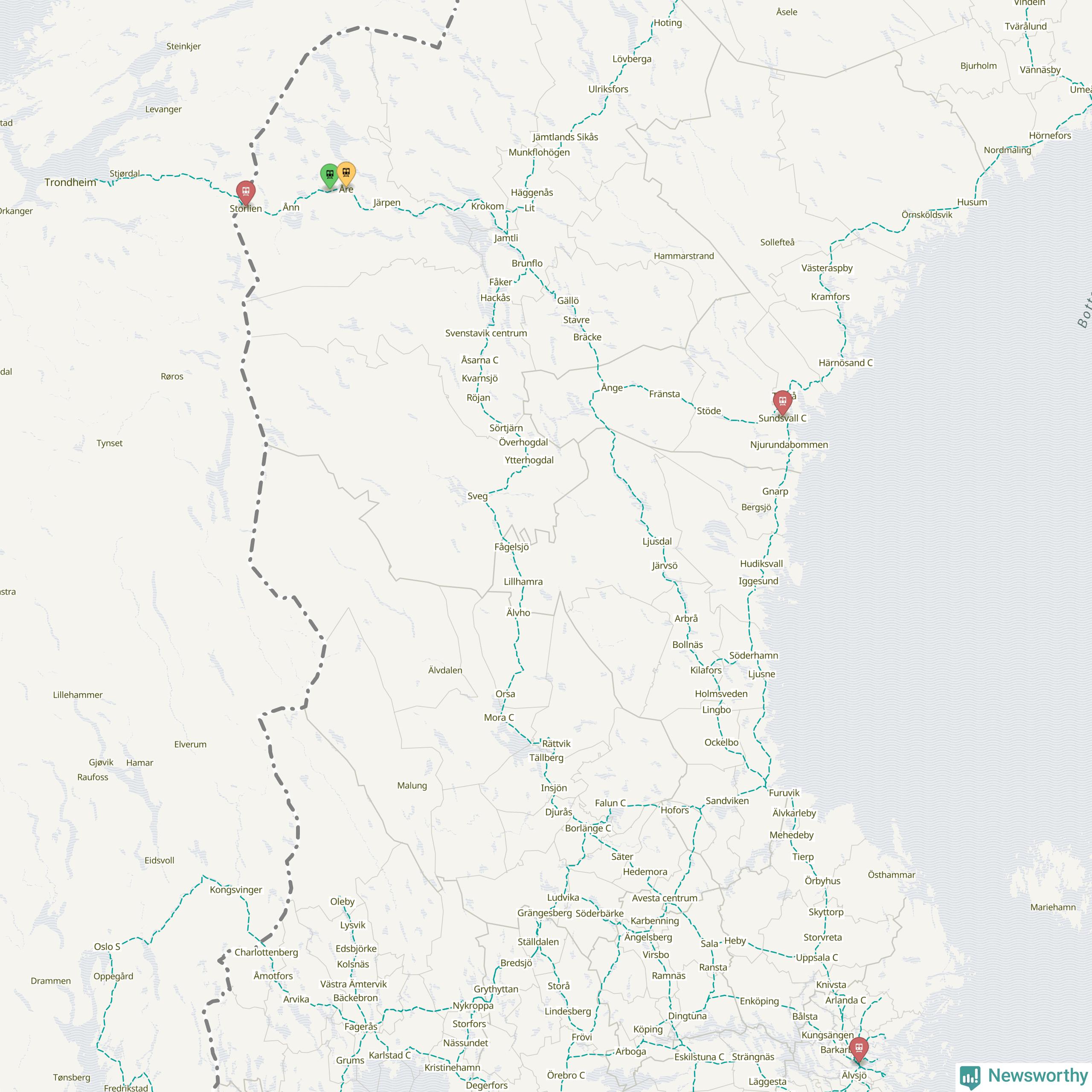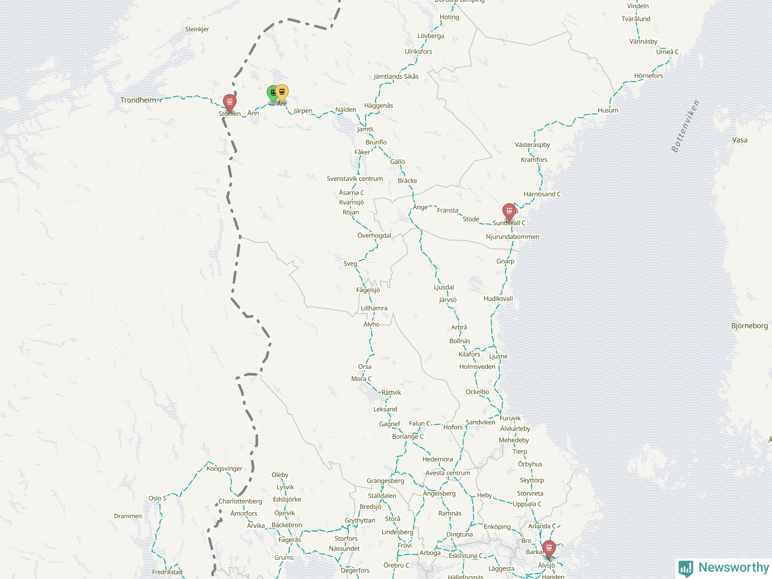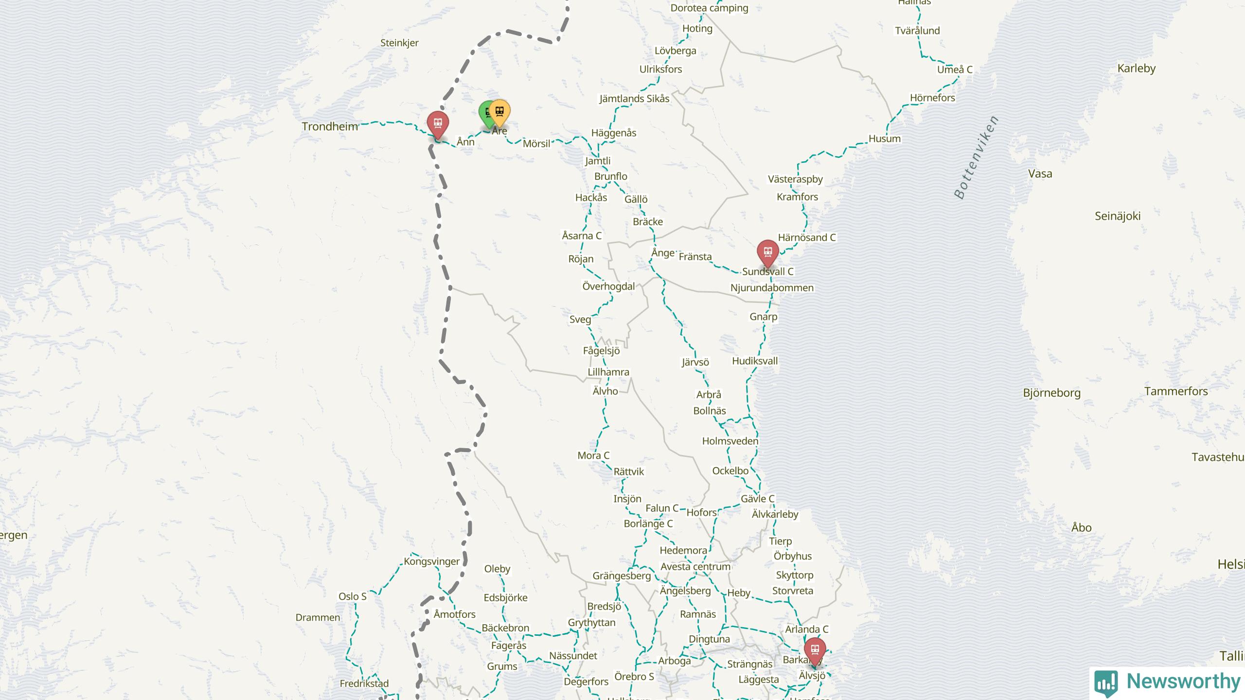 Kartdata från Mapbox, Newsworthy, OpenStreetMap och Trafikverket. Uppgifter om sträckor med passagerartrafik från jarnvag.net.