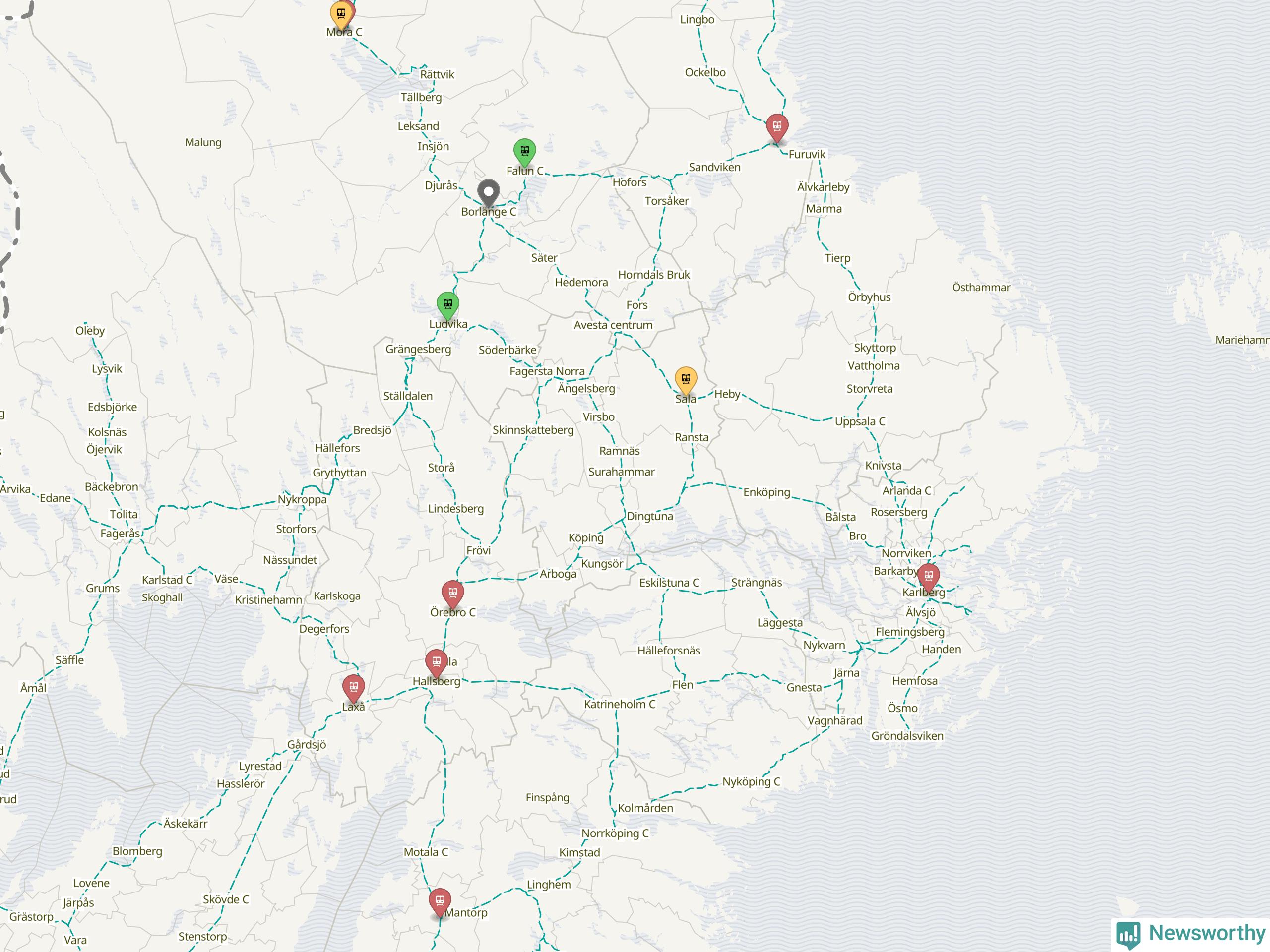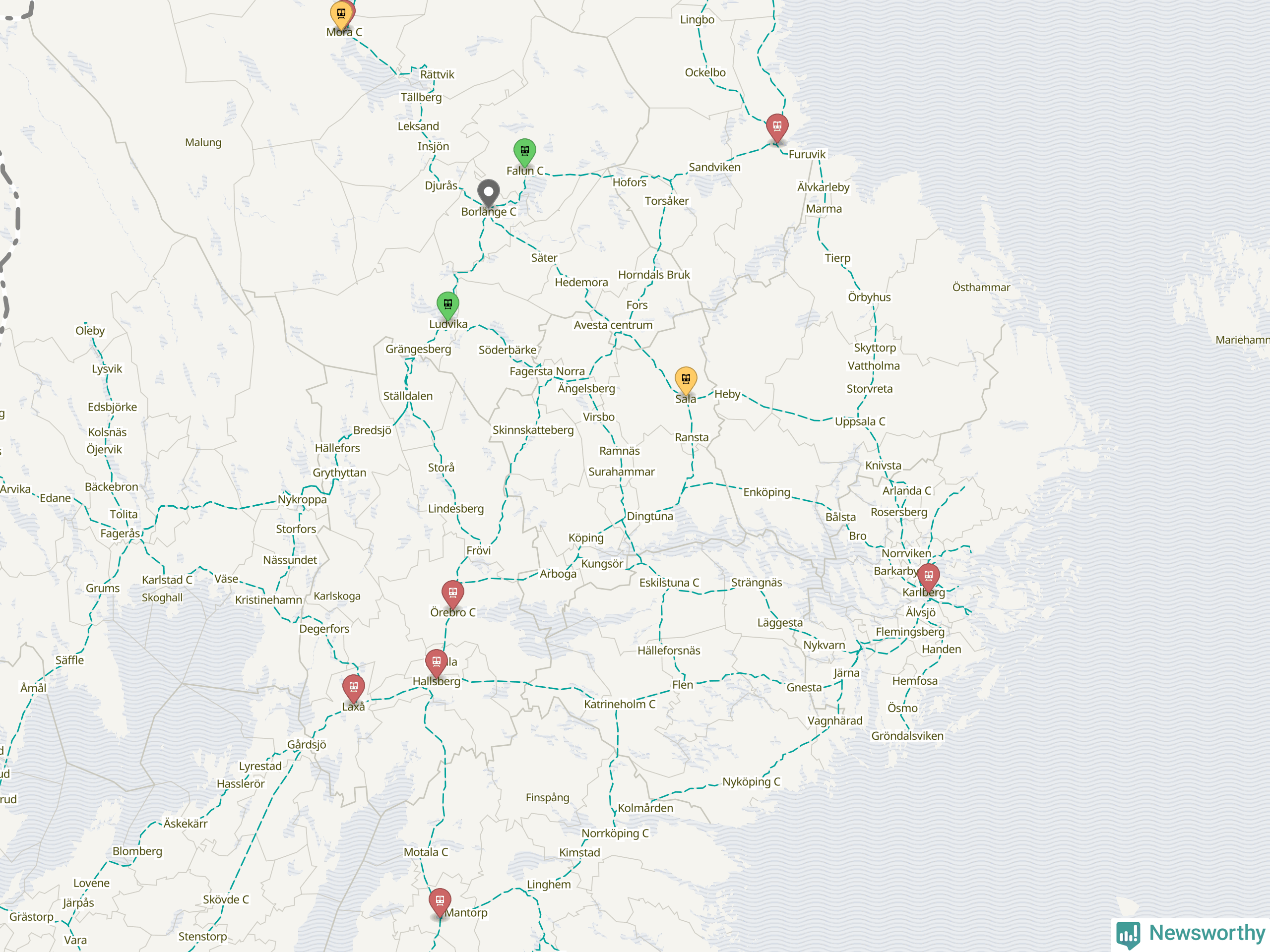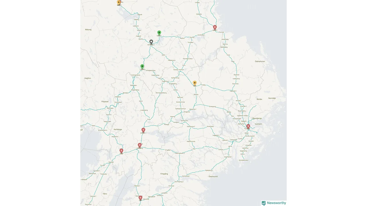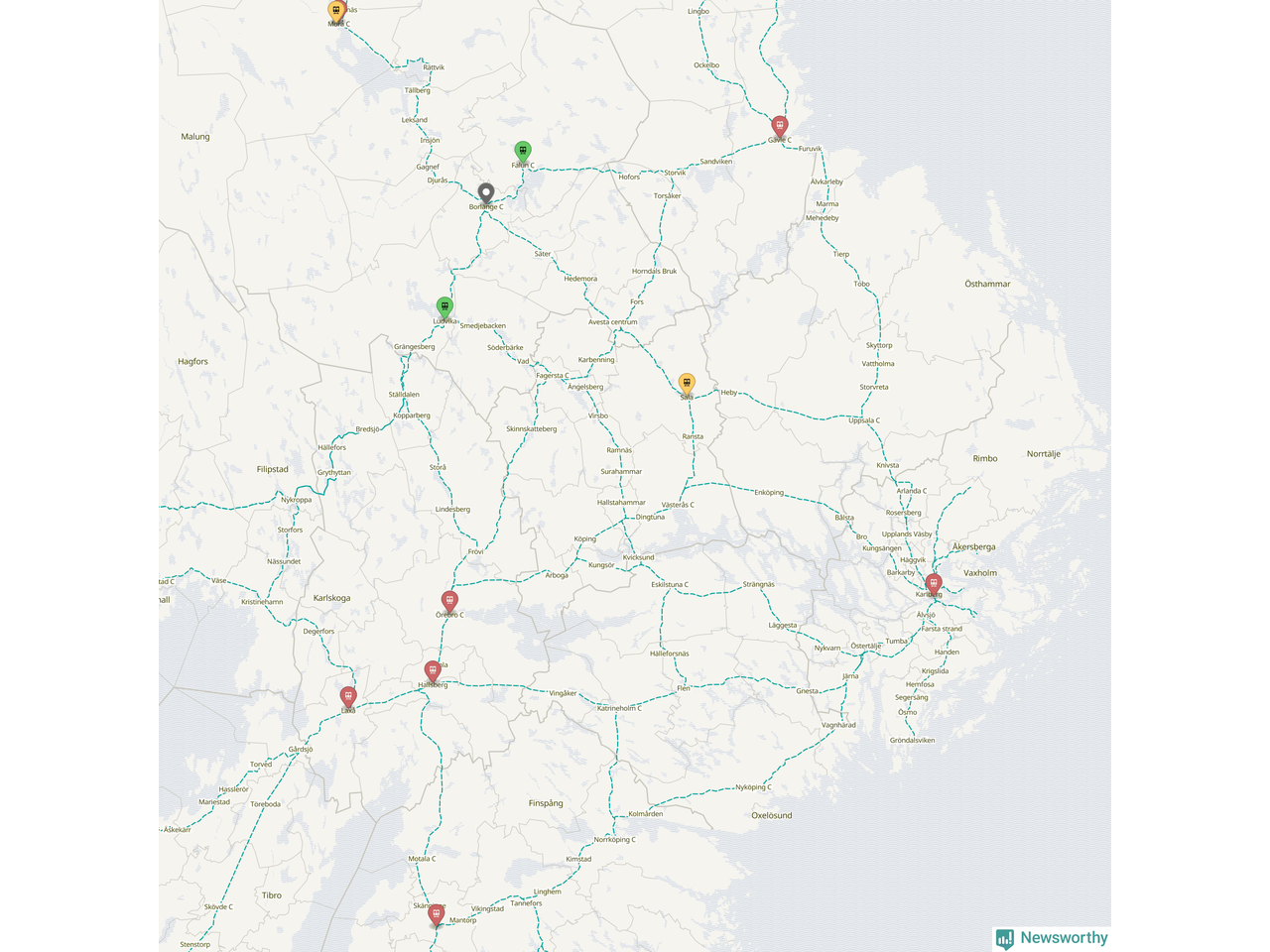 Kartdata från Mapbox, Newsworthy, OpenStreetMap och Trafikverket. Uppgifter om sträckor med passagerartrafik från jarnvag.net.