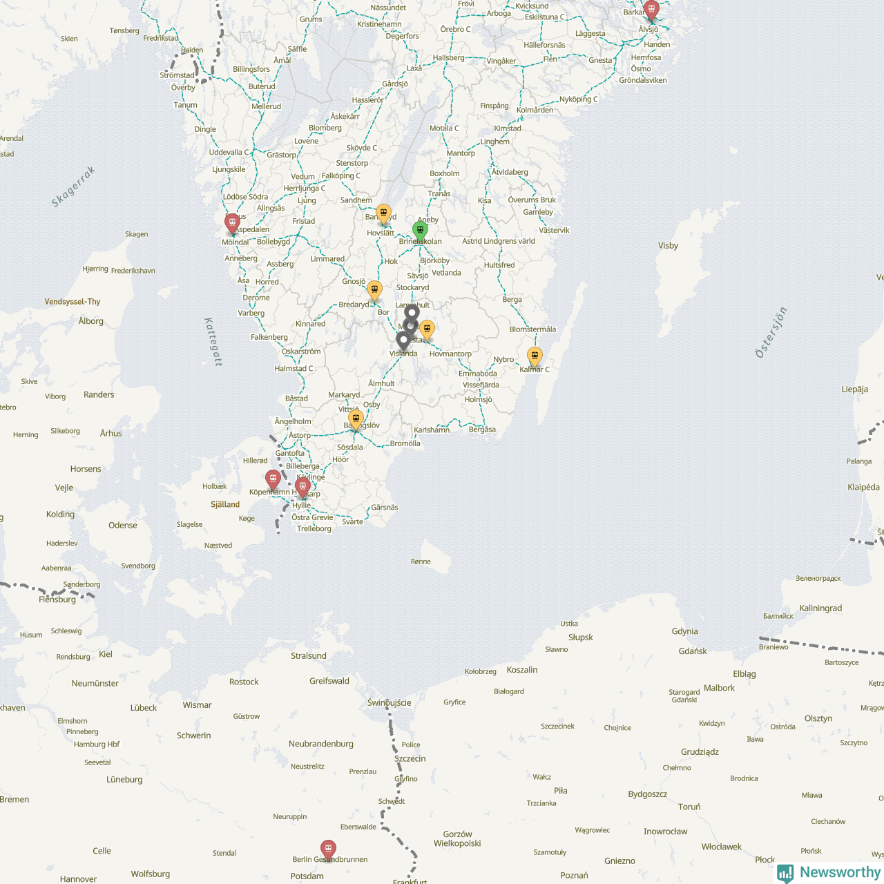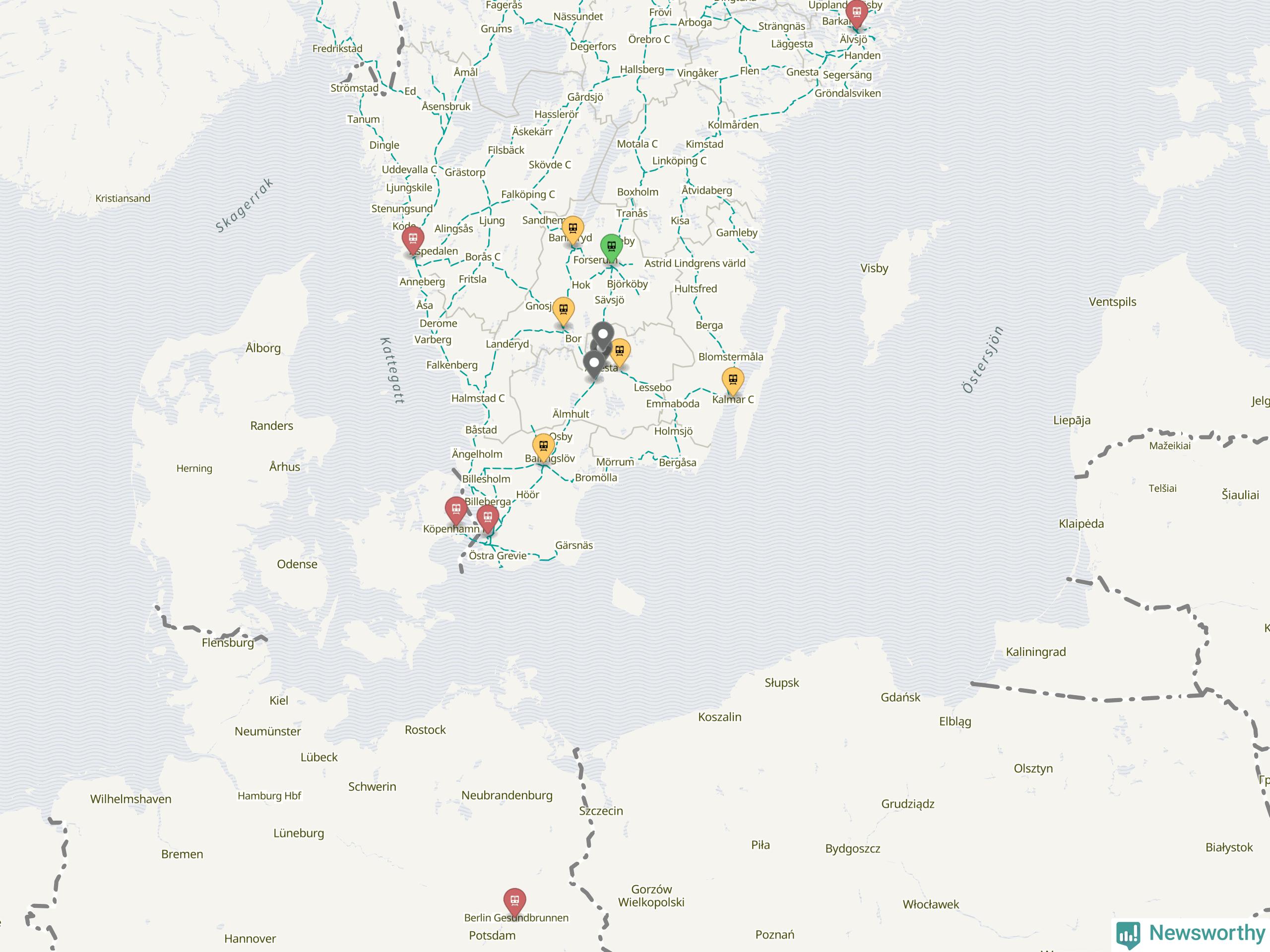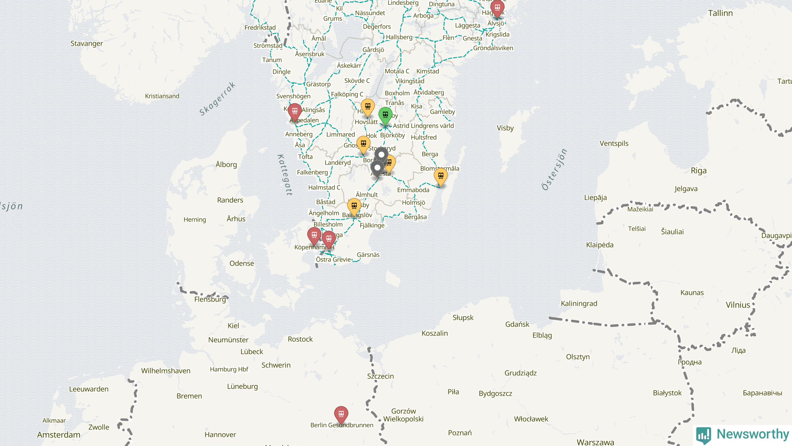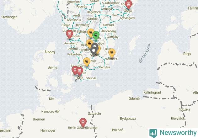 Kartdata från Mapbox, Newsworthy, OpenStreetMap och Trafikverket. Uppgifter om sträckor med passagerartrafik från jarnvag.net.