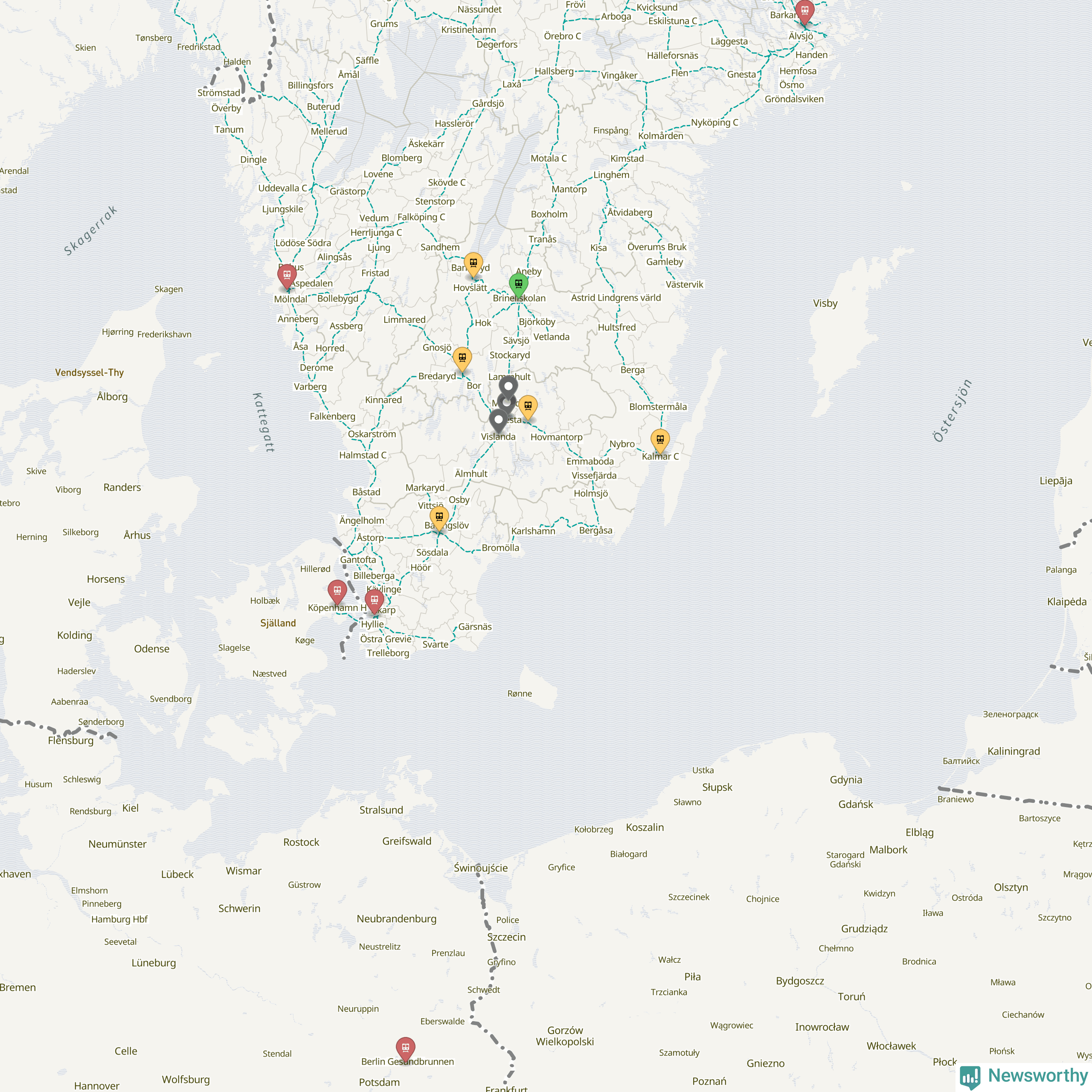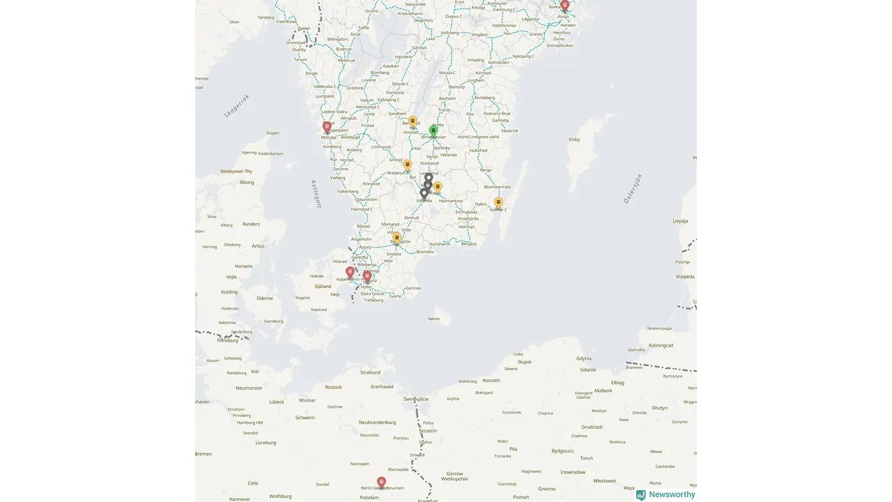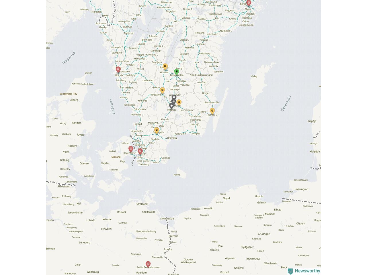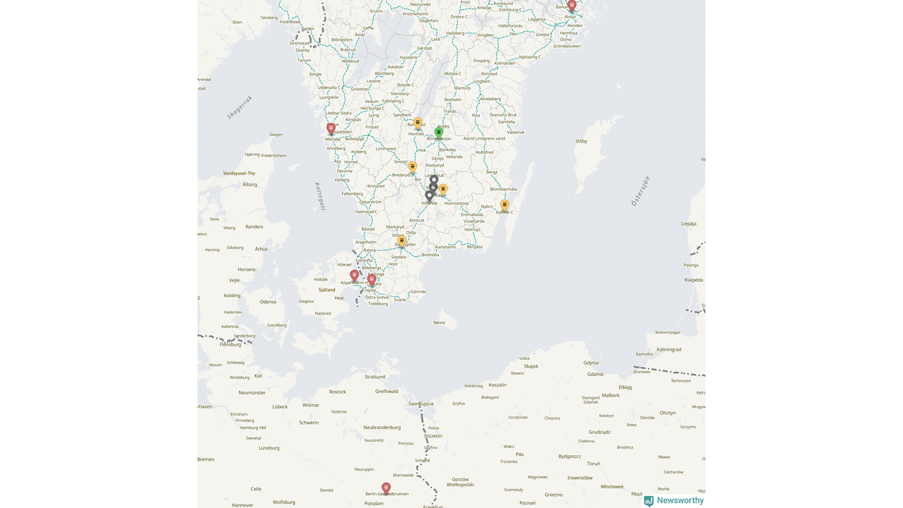 Kartdata från Mapbox, Newsworthy, OpenStreetMap och Trafikverket. Uppgifter om sträckor med passagerartrafik från jarnvag.net.