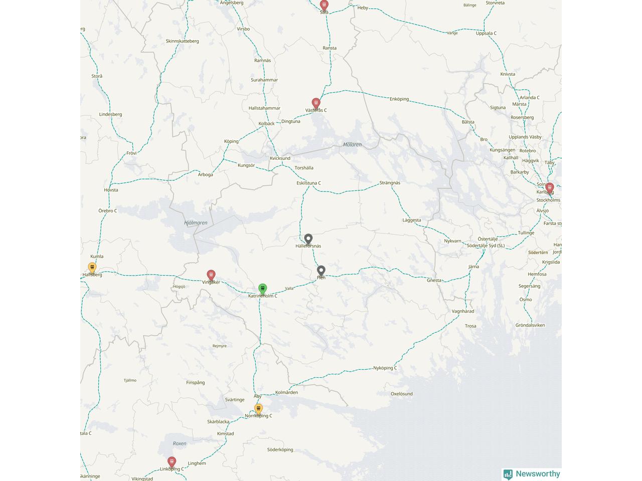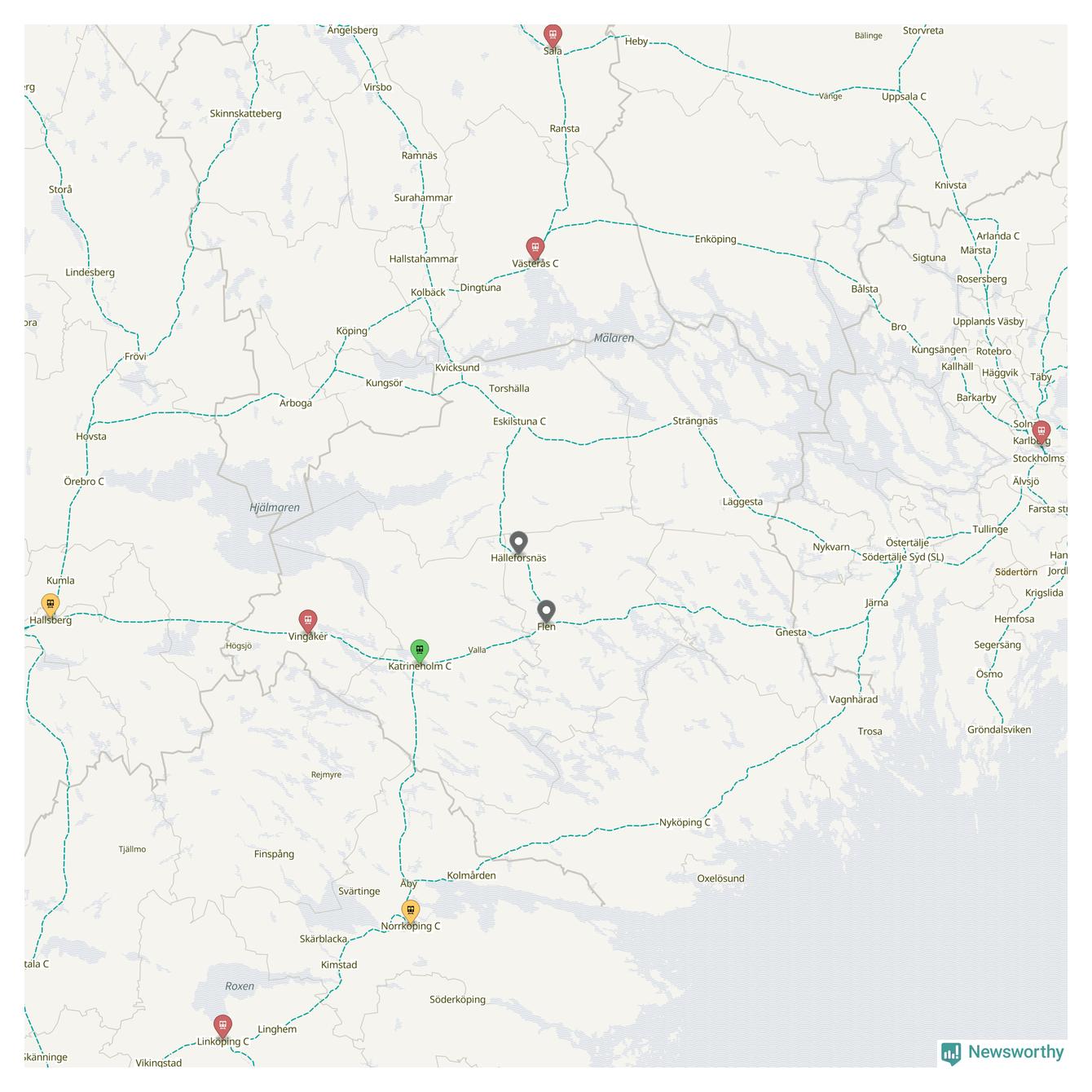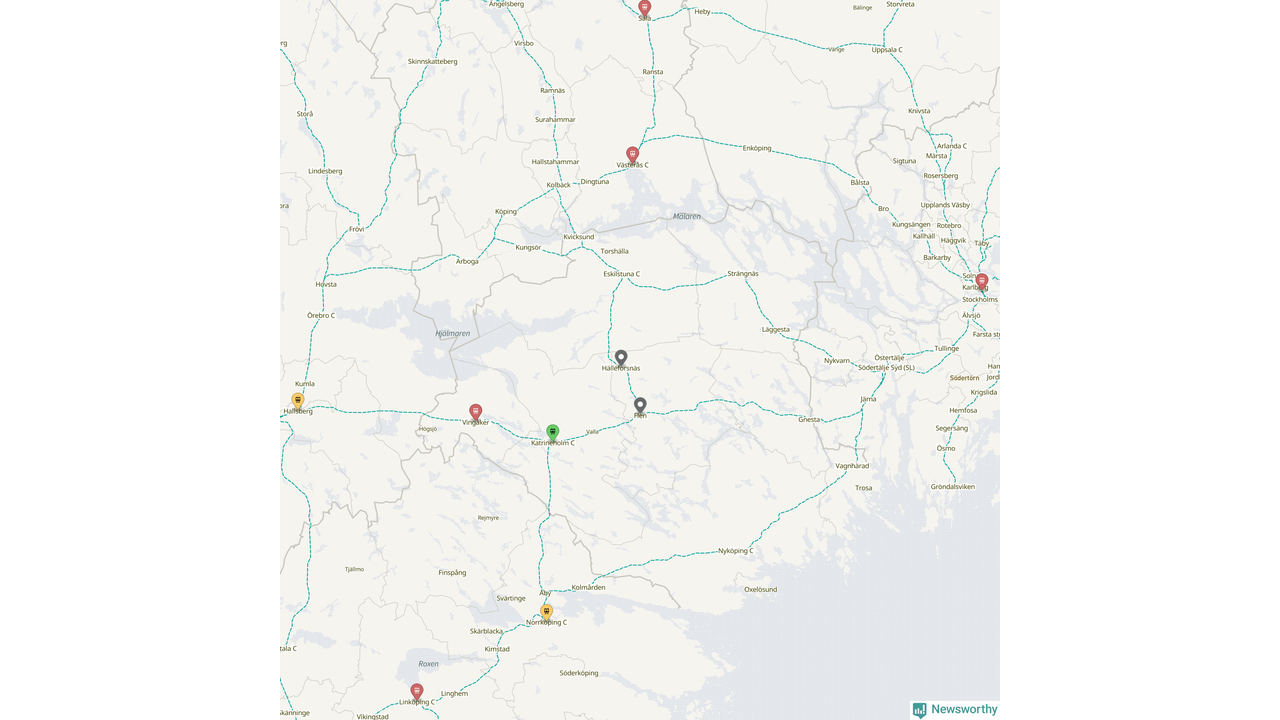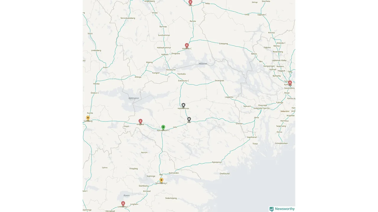 Kartdata från Mapbox, Newsworthy, OpenStreetMap och Trafikverket. Uppgifter om sträckor med passagerartrafik från jarnvag.net.