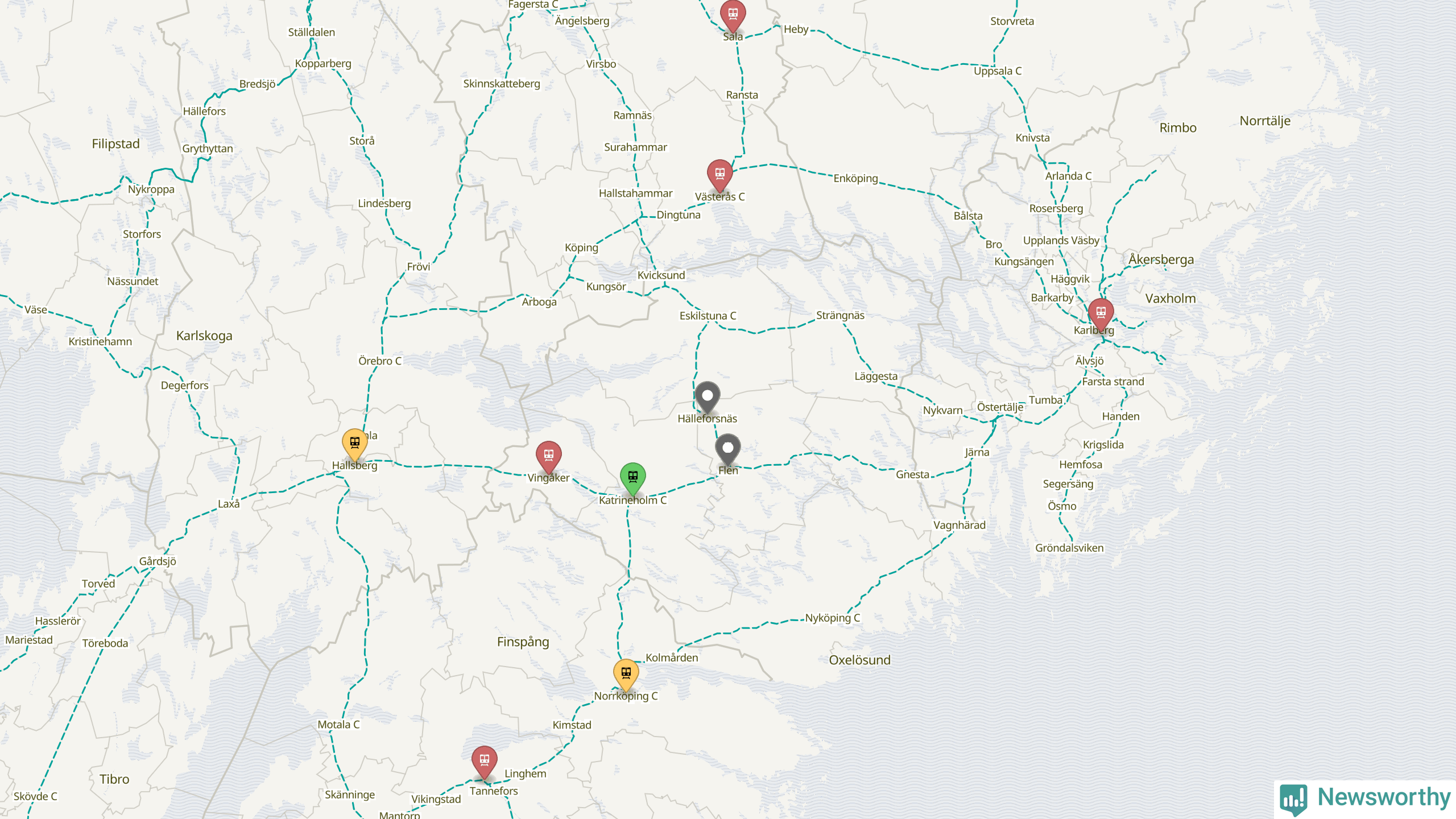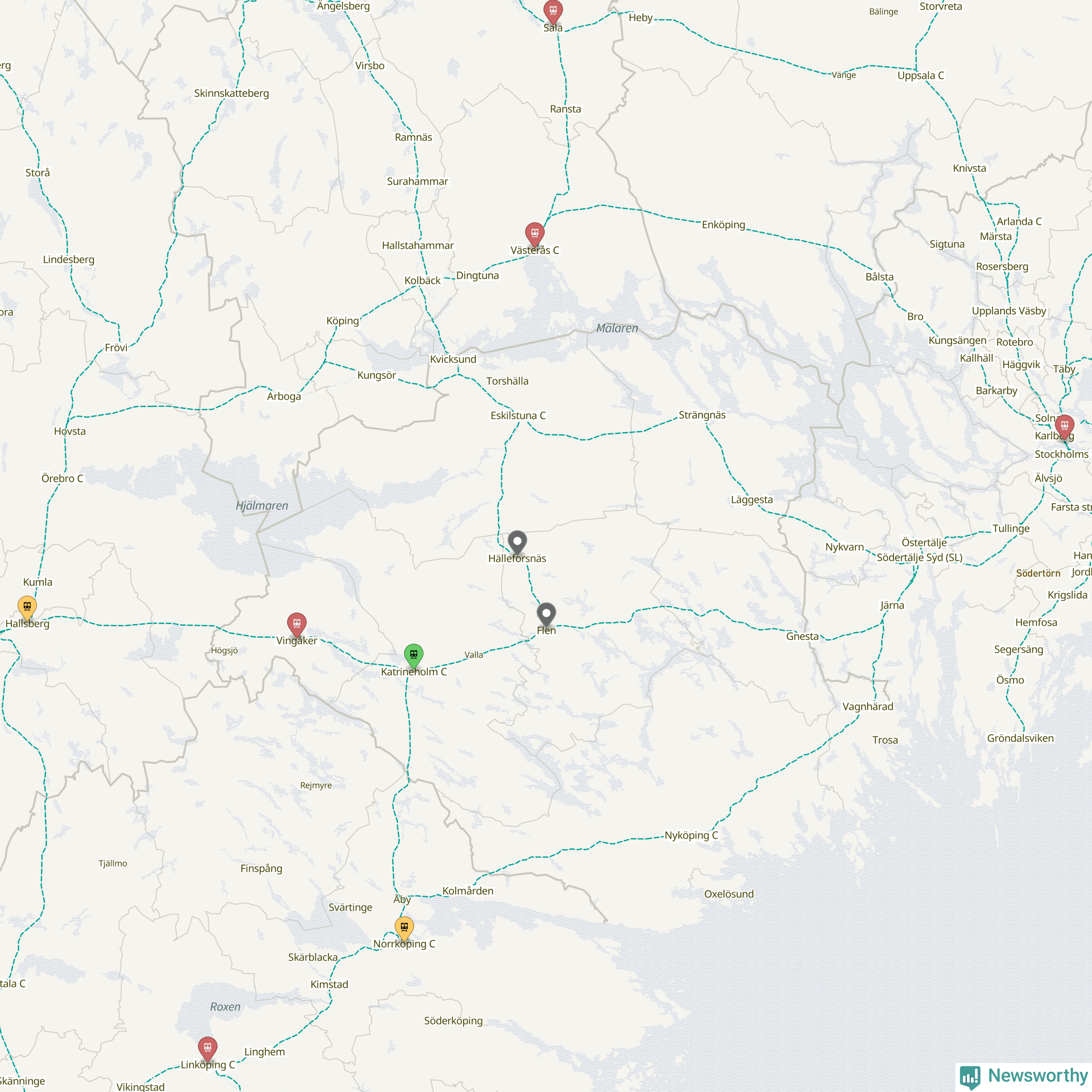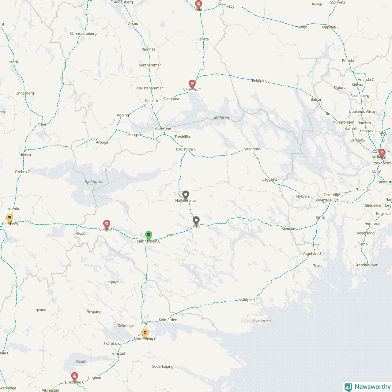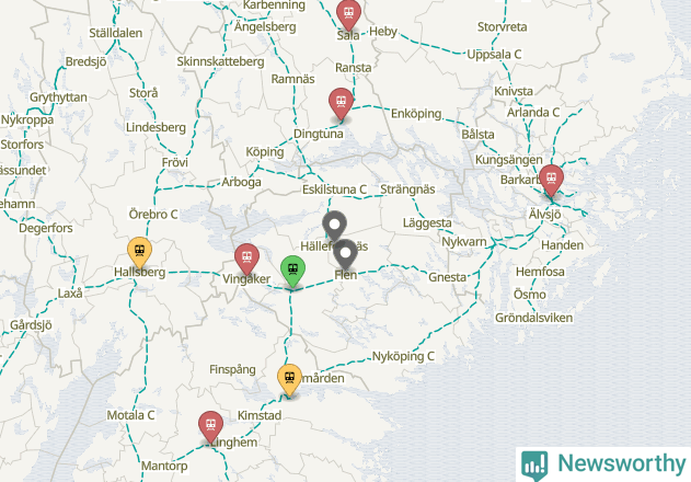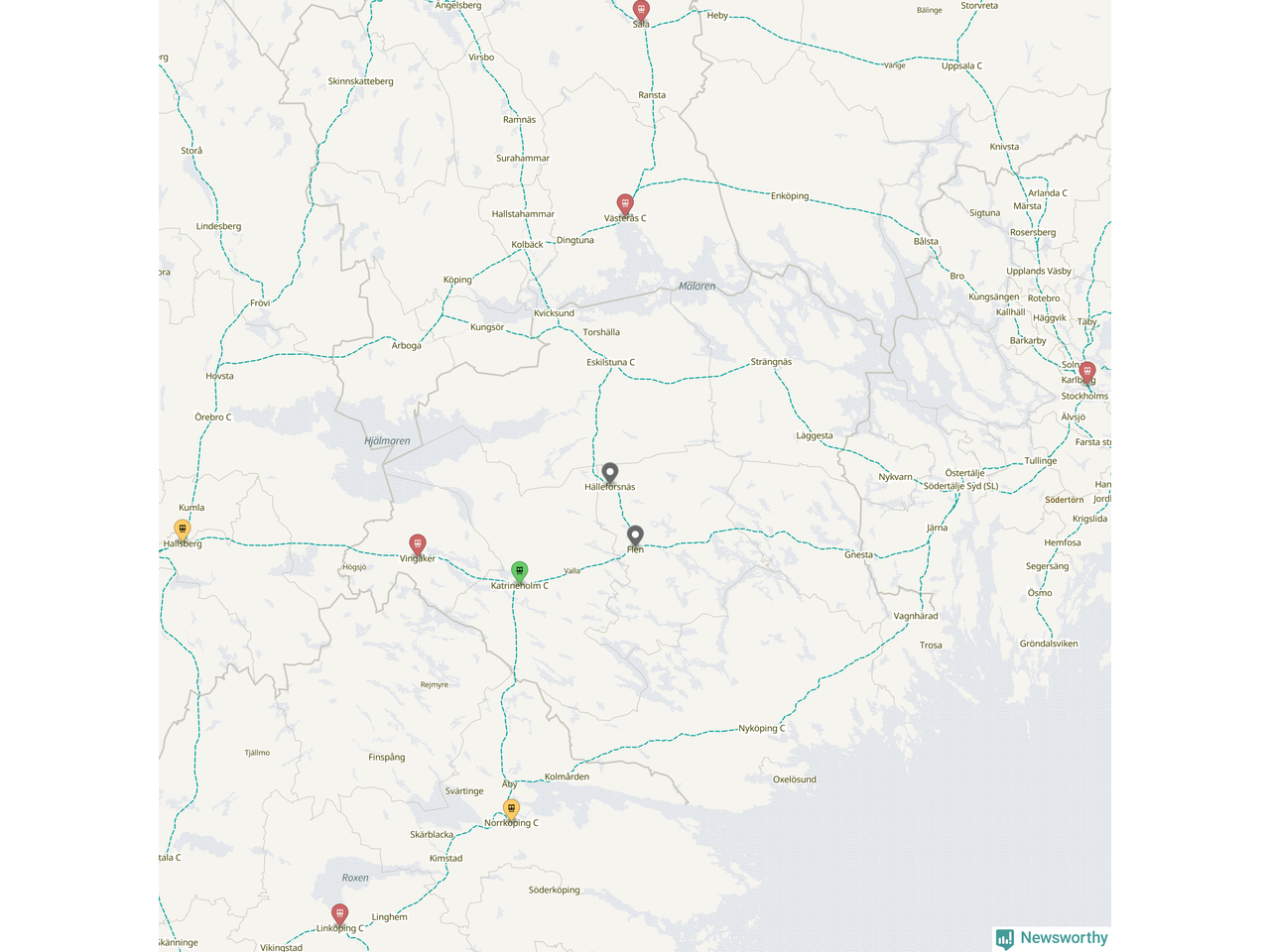 Kartdata från Mapbox, Newsworthy, OpenStreetMap och Trafikverket. Uppgifter om sträckor med passagerartrafik från jarnvag.net.
