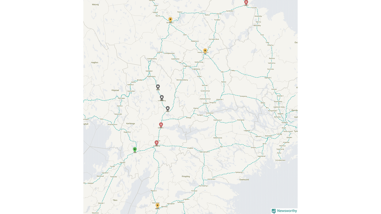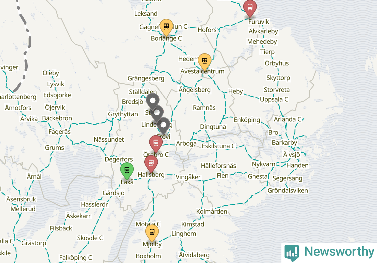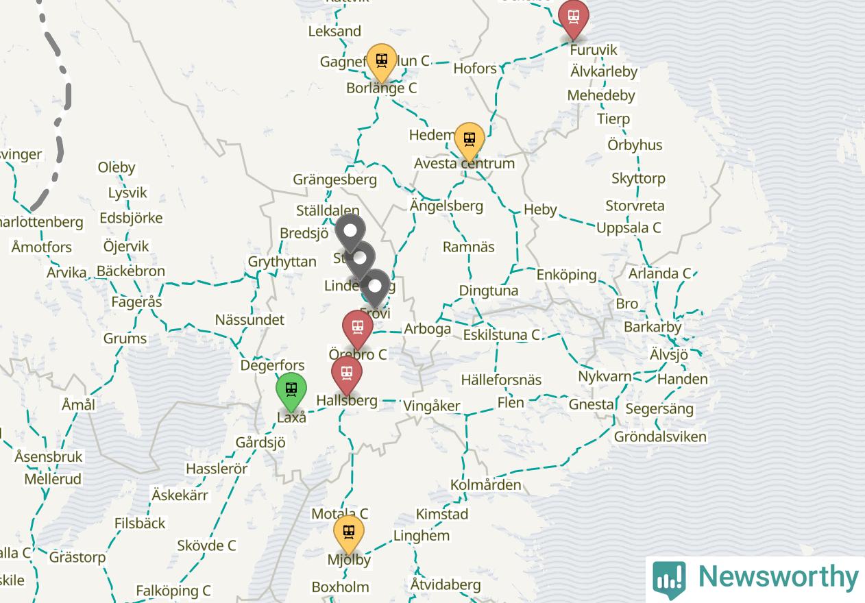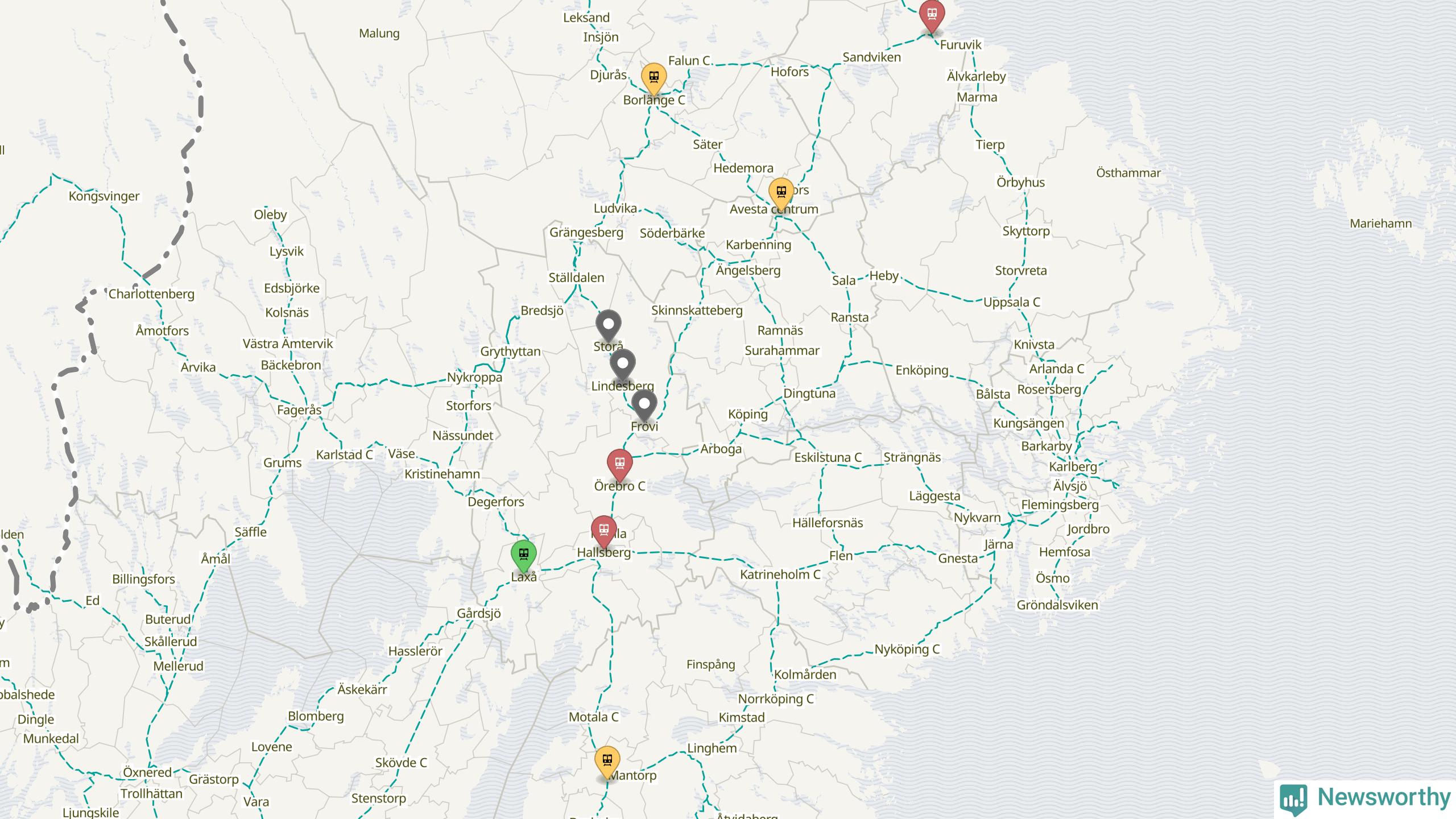 Kartdata från Mapbox, Newsworthy, OpenStreetMap och Trafikverket. Uppgifter om sträckor med passagerartrafik från jarnvag.net.