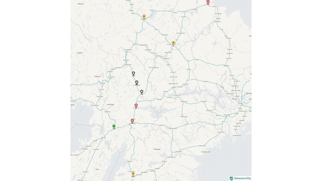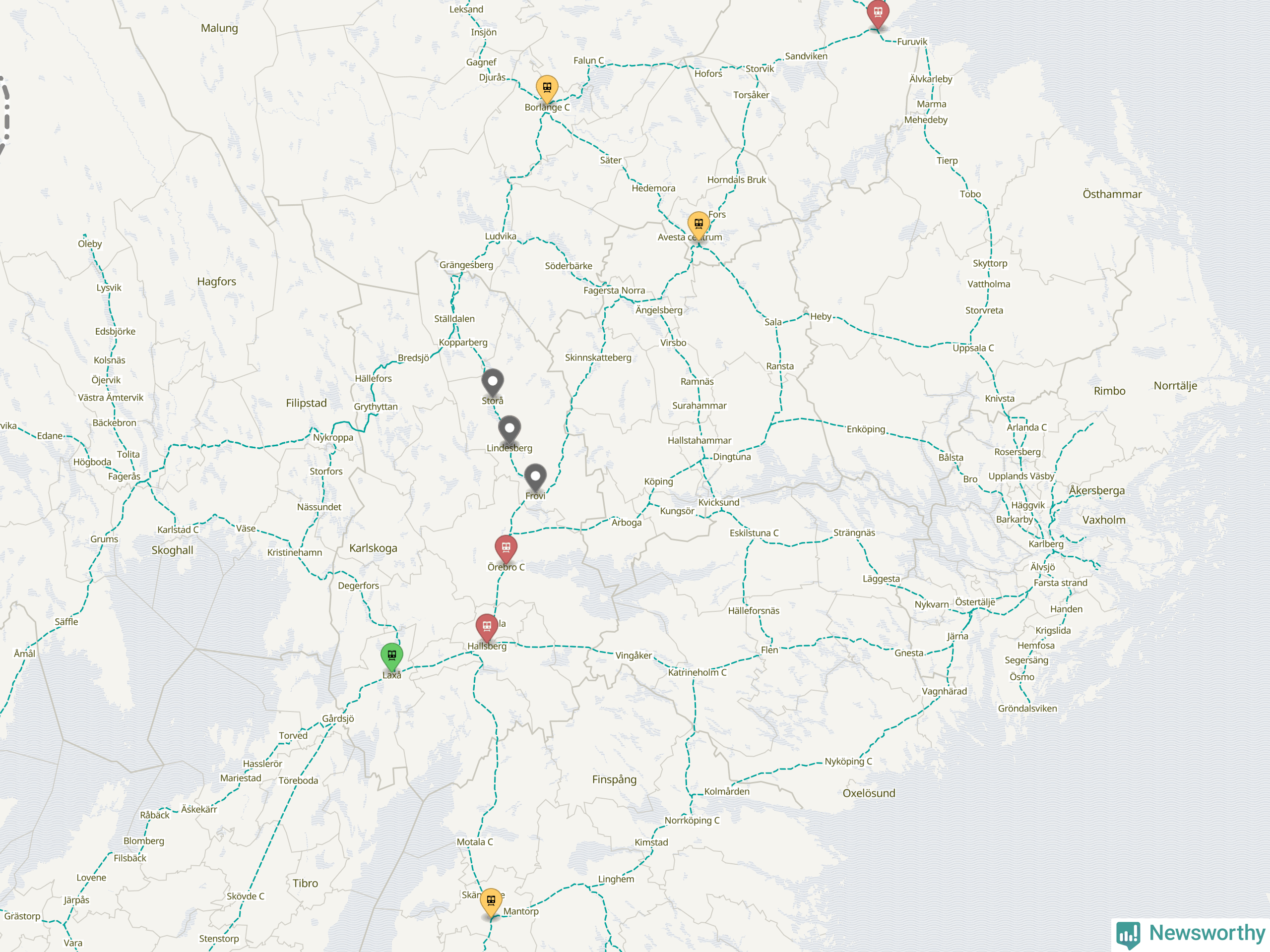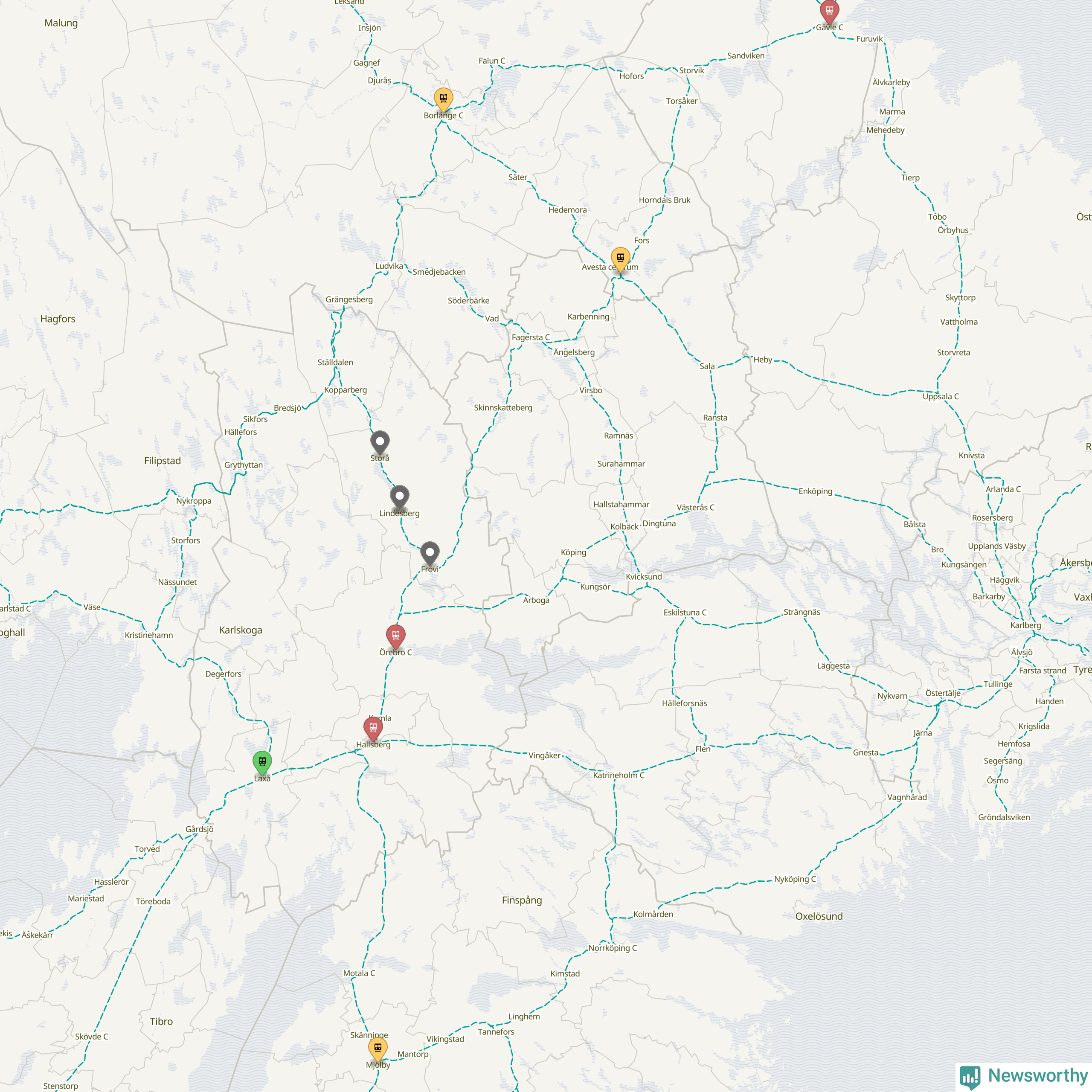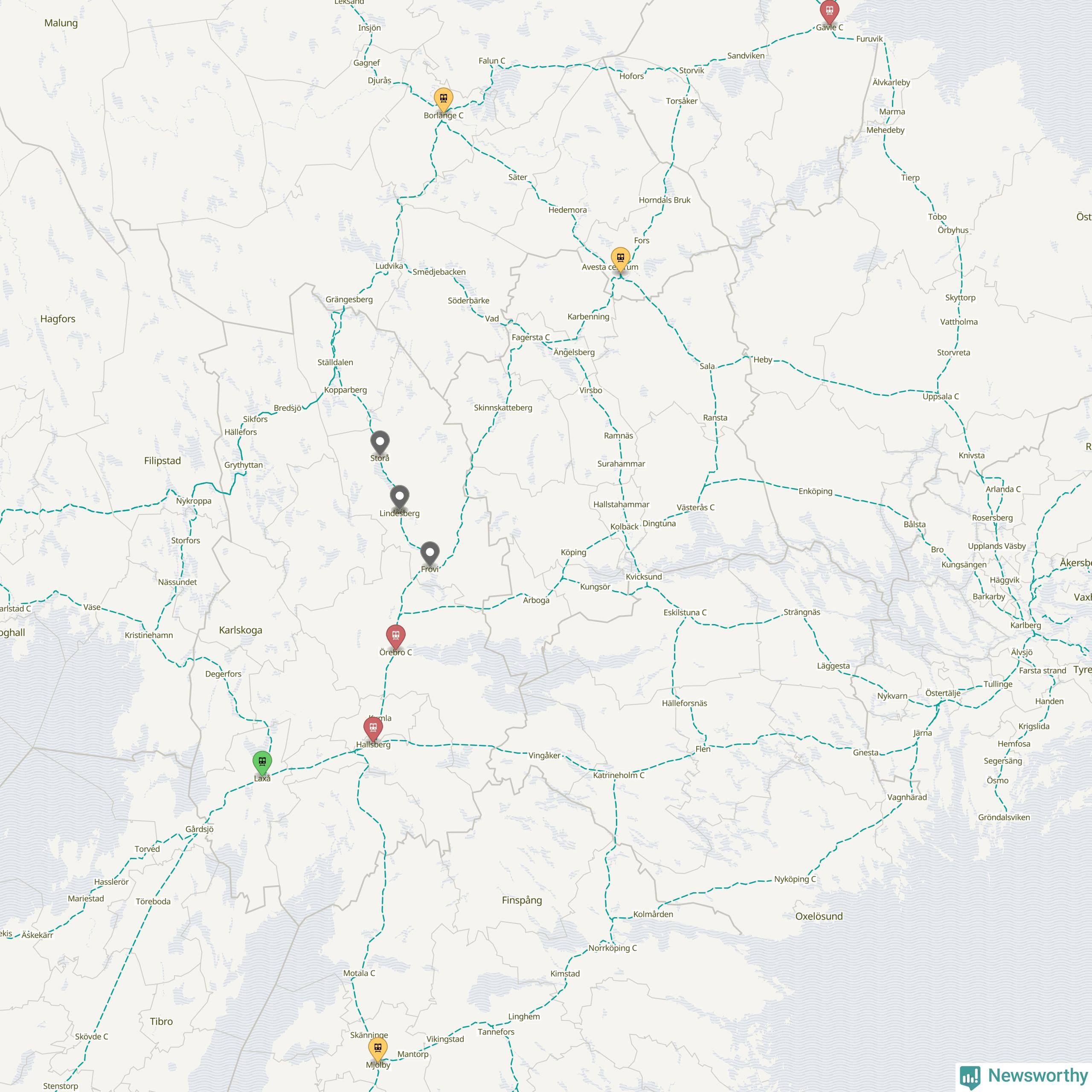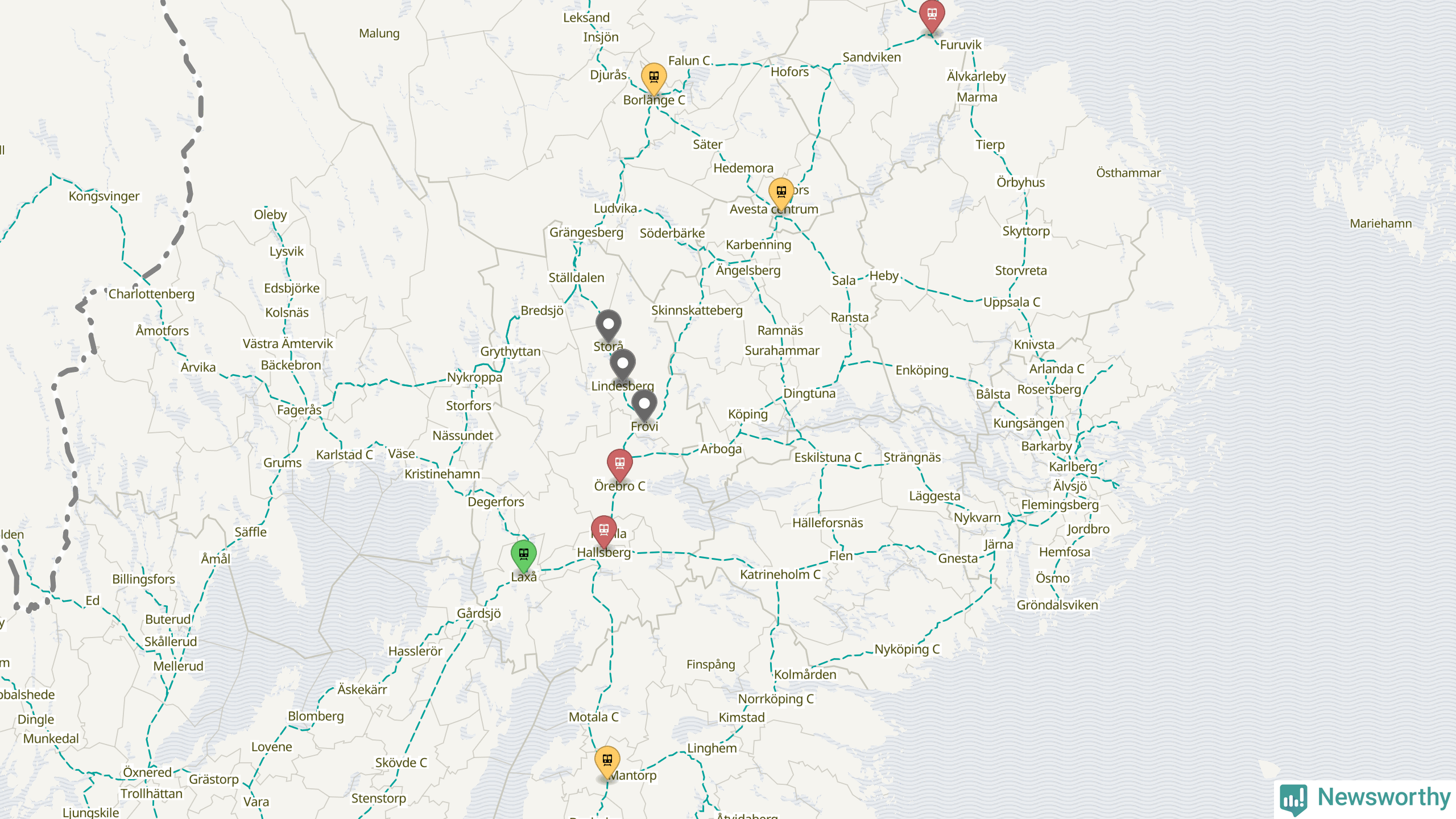 Kartdata från Mapbox, Newsworthy, OpenStreetMap och Trafikverket. Uppgifter om sträckor med passagerartrafik från jarnvag.net.