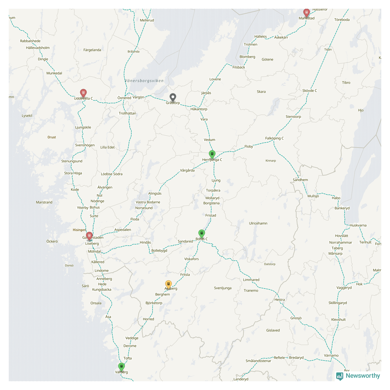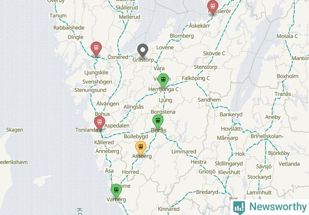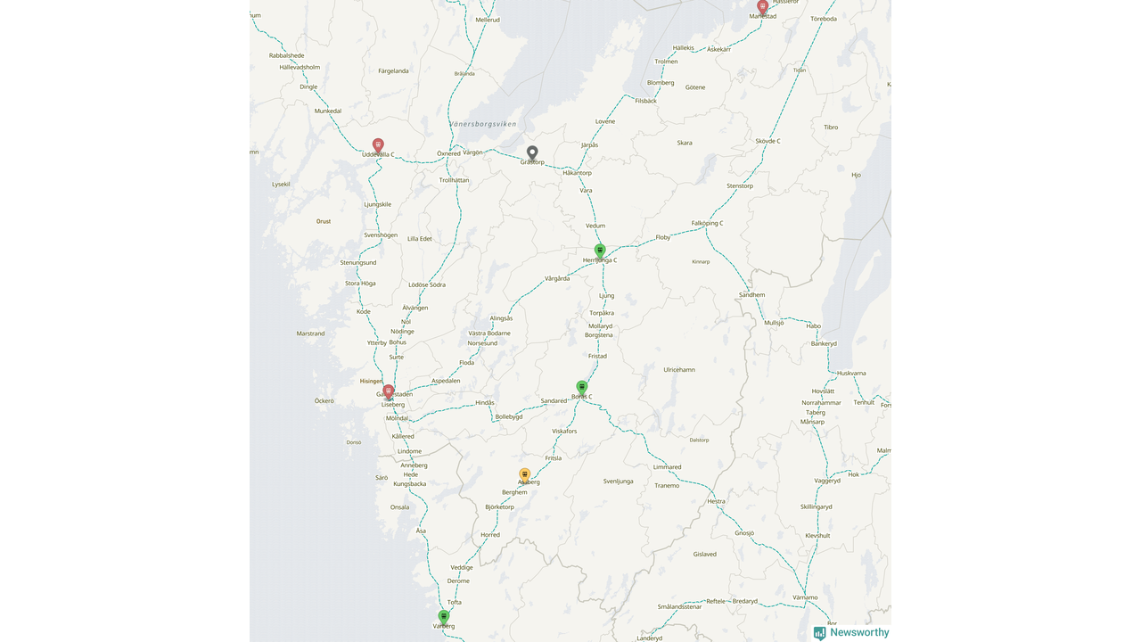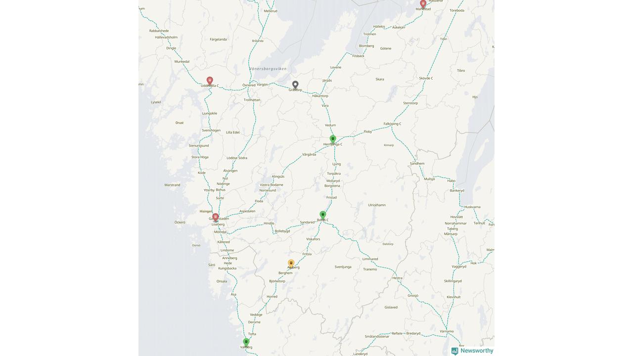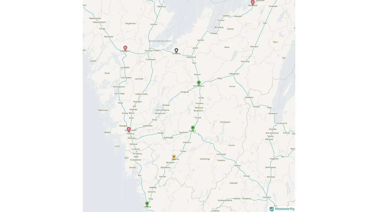 Kartdata från Mapbox, Newsworthy, OpenStreetMap och Trafikverket. Uppgifter om sträckor med passagerartrafik från jarnvag.net.