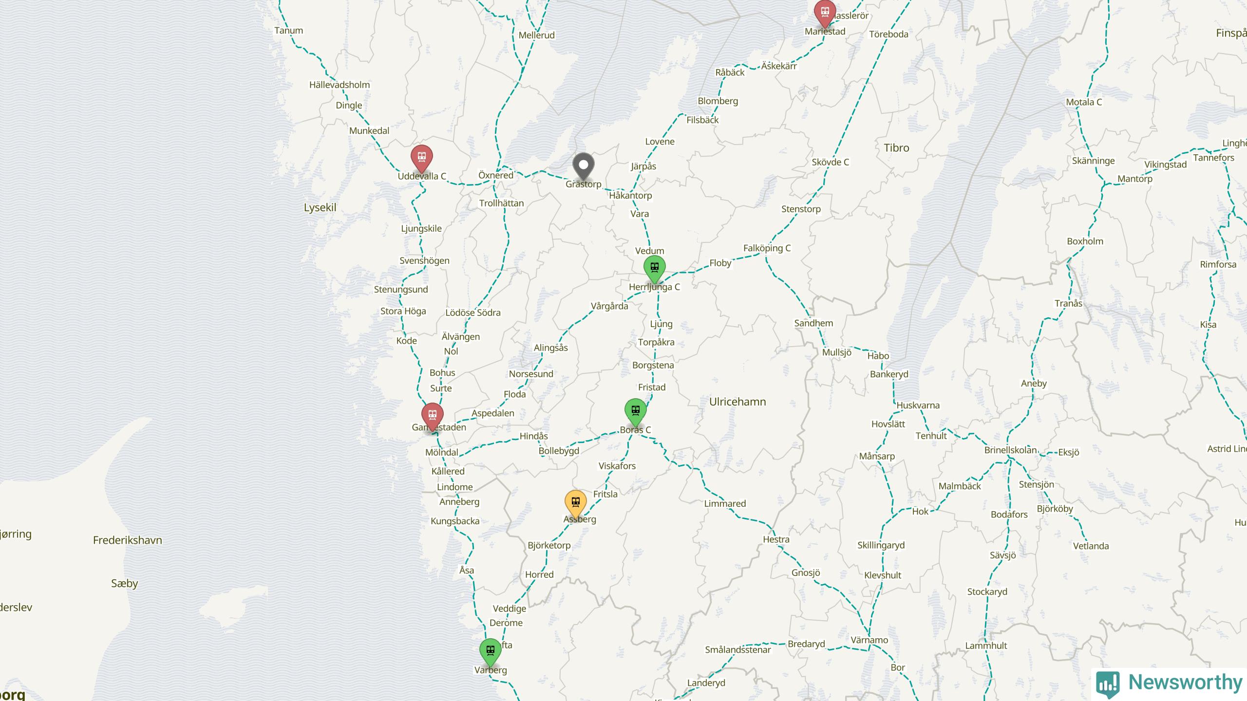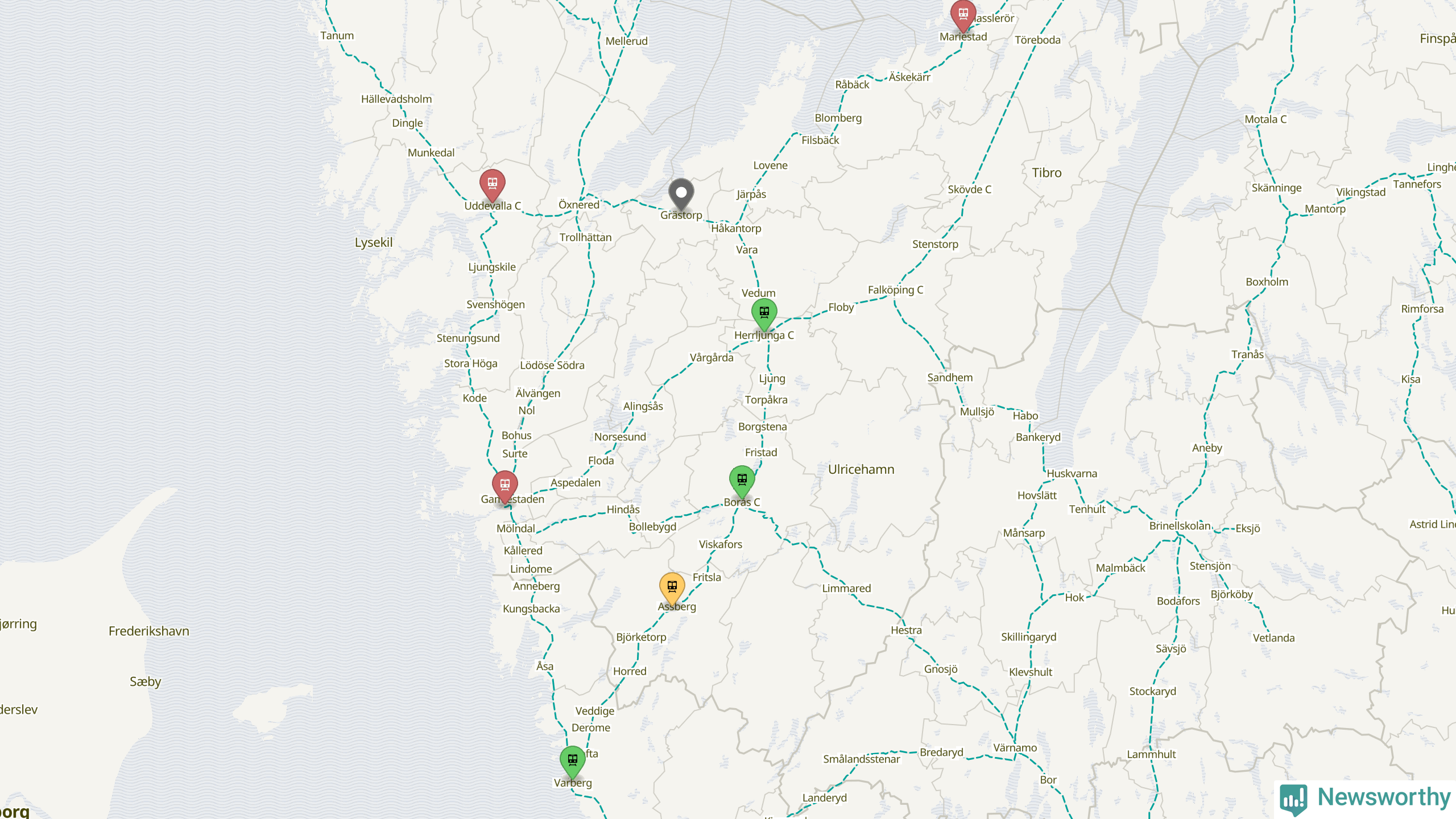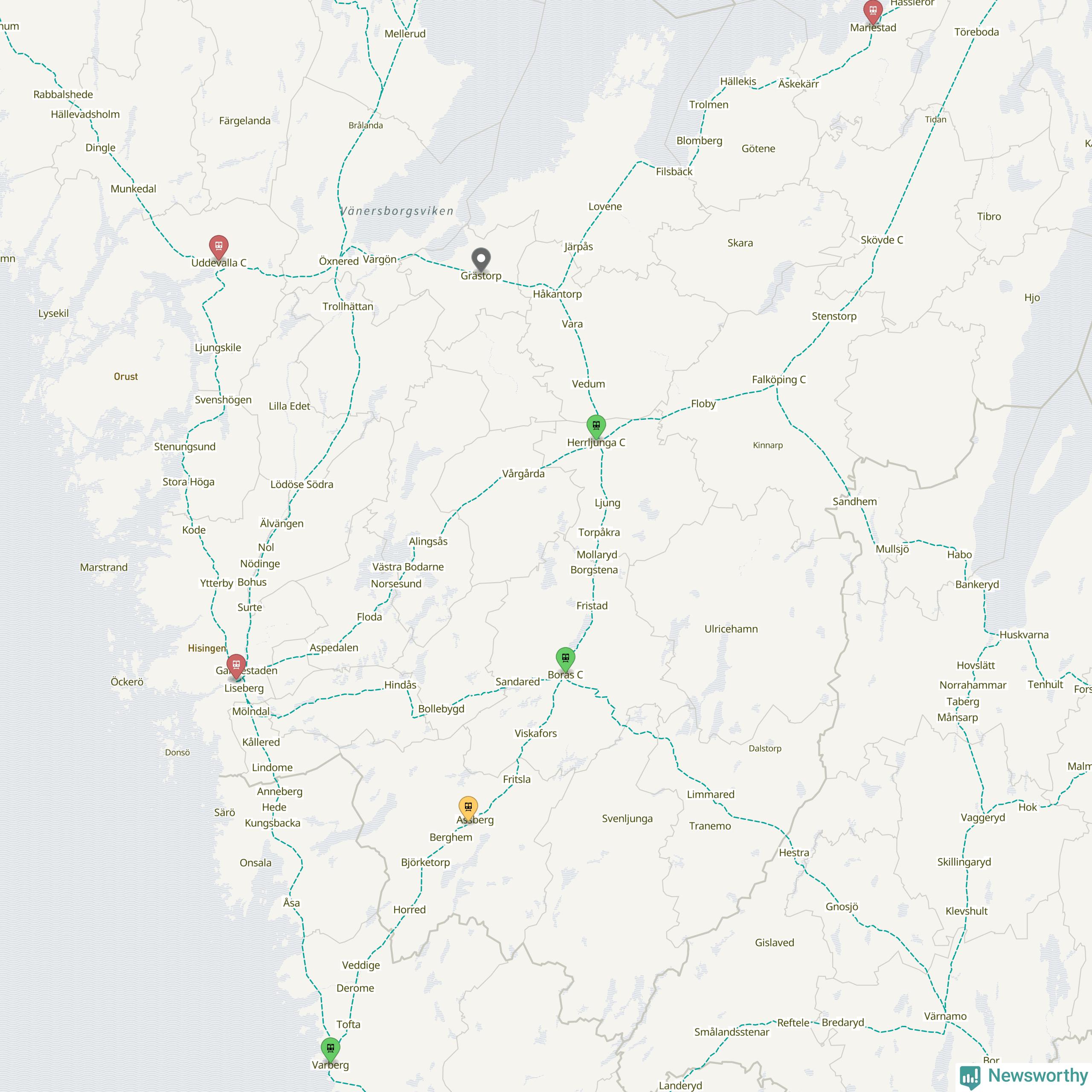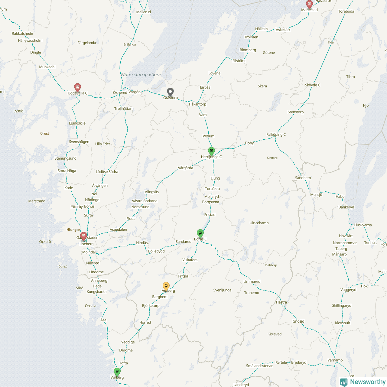 Kartdata från Mapbox, Newsworthy, OpenStreetMap och Trafikverket. Uppgifter om sträckor med passagerartrafik från jarnvag.net.
