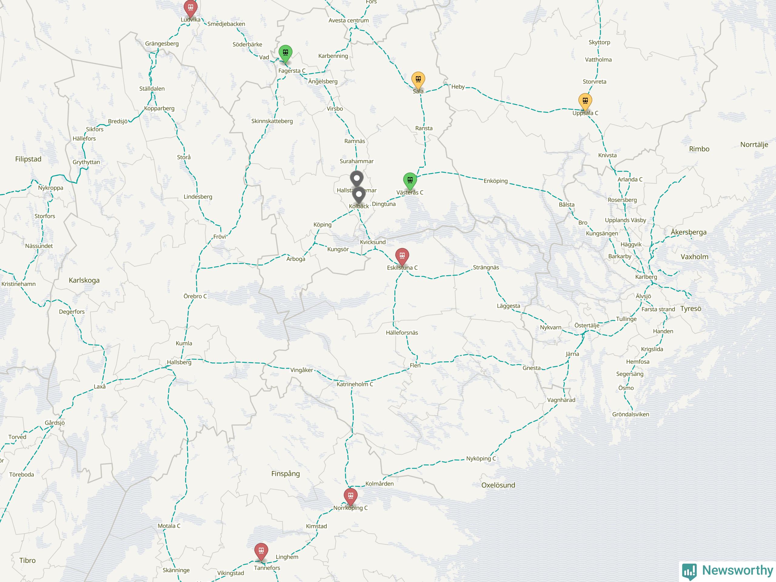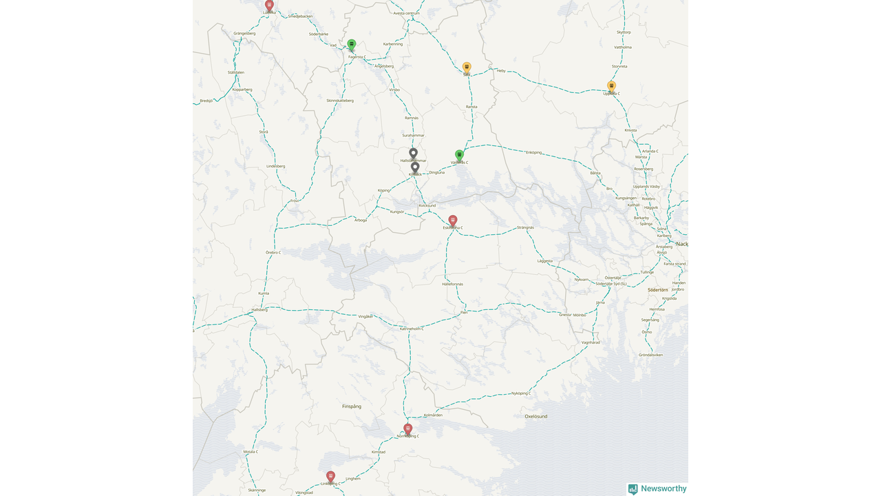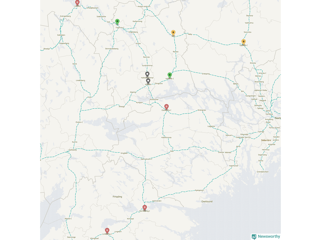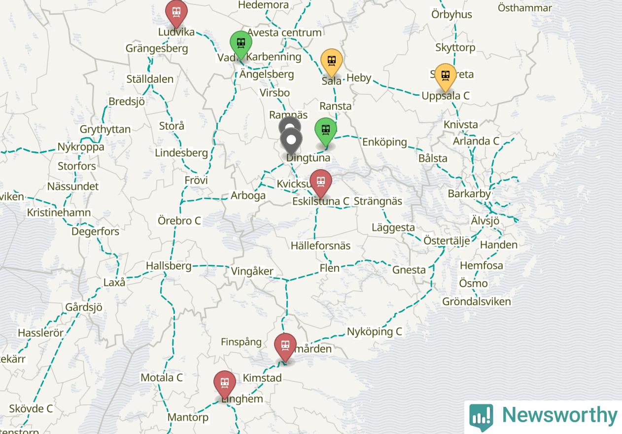 Kartdata från Mapbox, Newsworthy, OpenStreetMap och Trafikverket. Uppgifter om sträckor med passagerartrafik från jarnvag.net.
