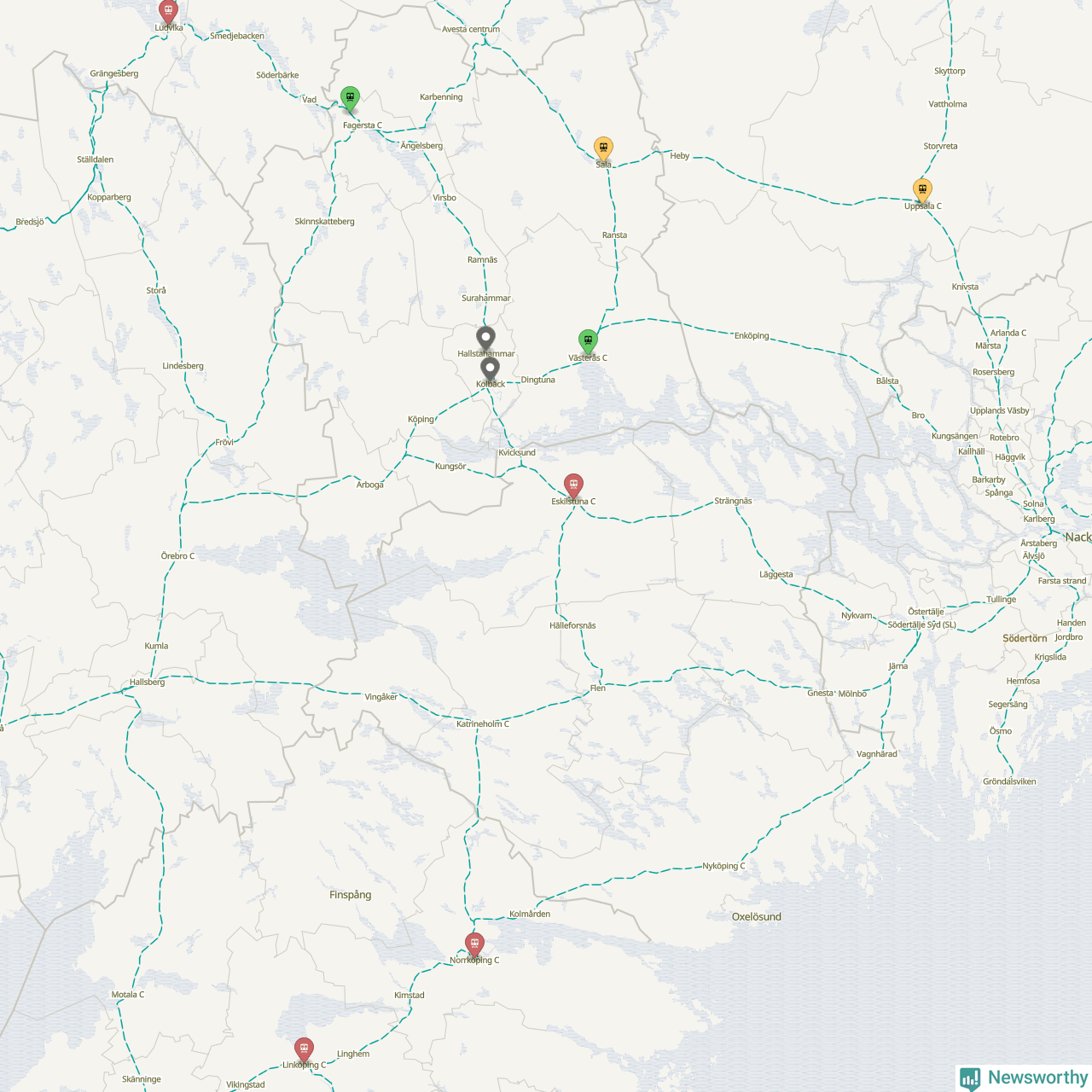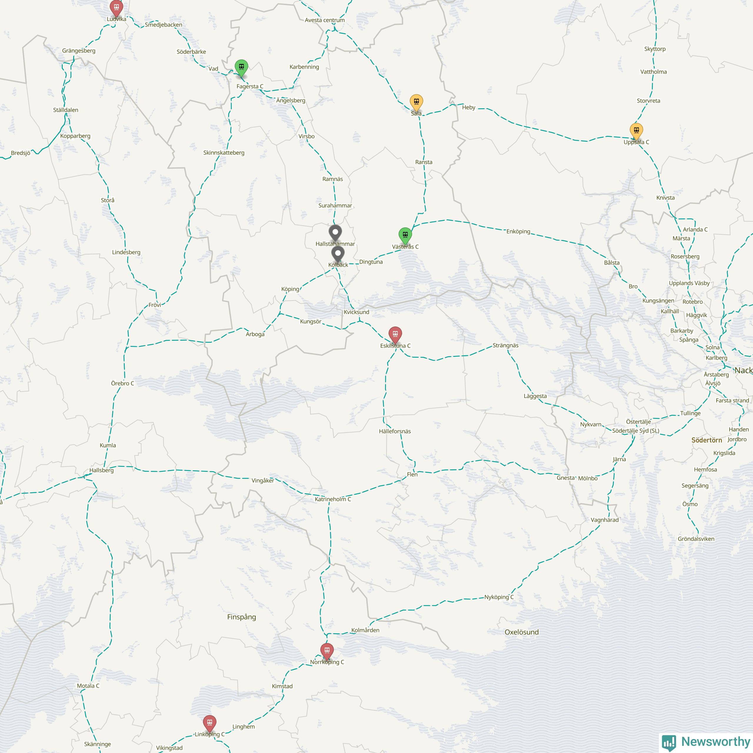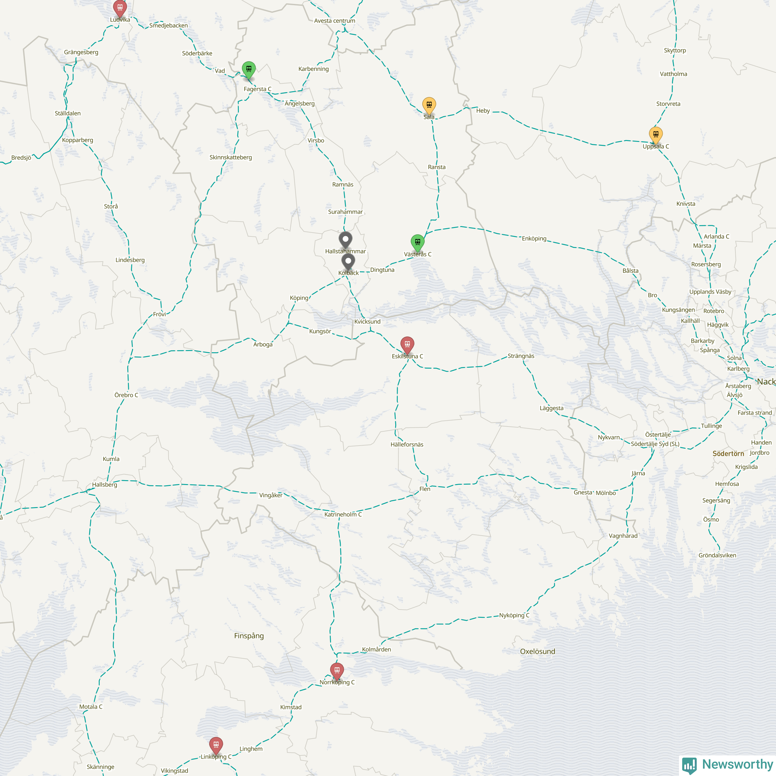 Kartdata från Mapbox, Newsworthy, OpenStreetMap och Trafikverket. Uppgifter om sträckor med passagerartrafik från jarnvag.net.