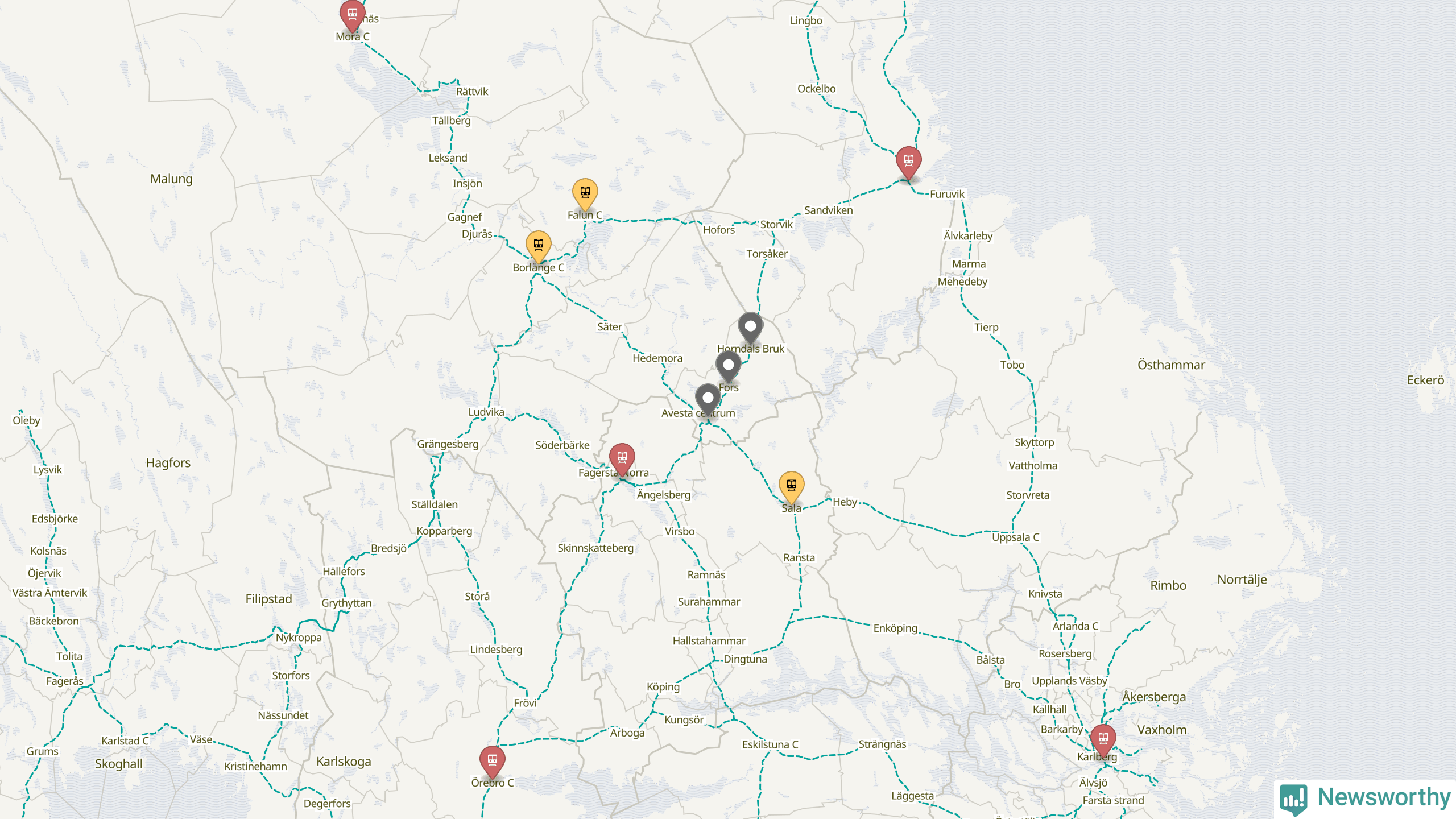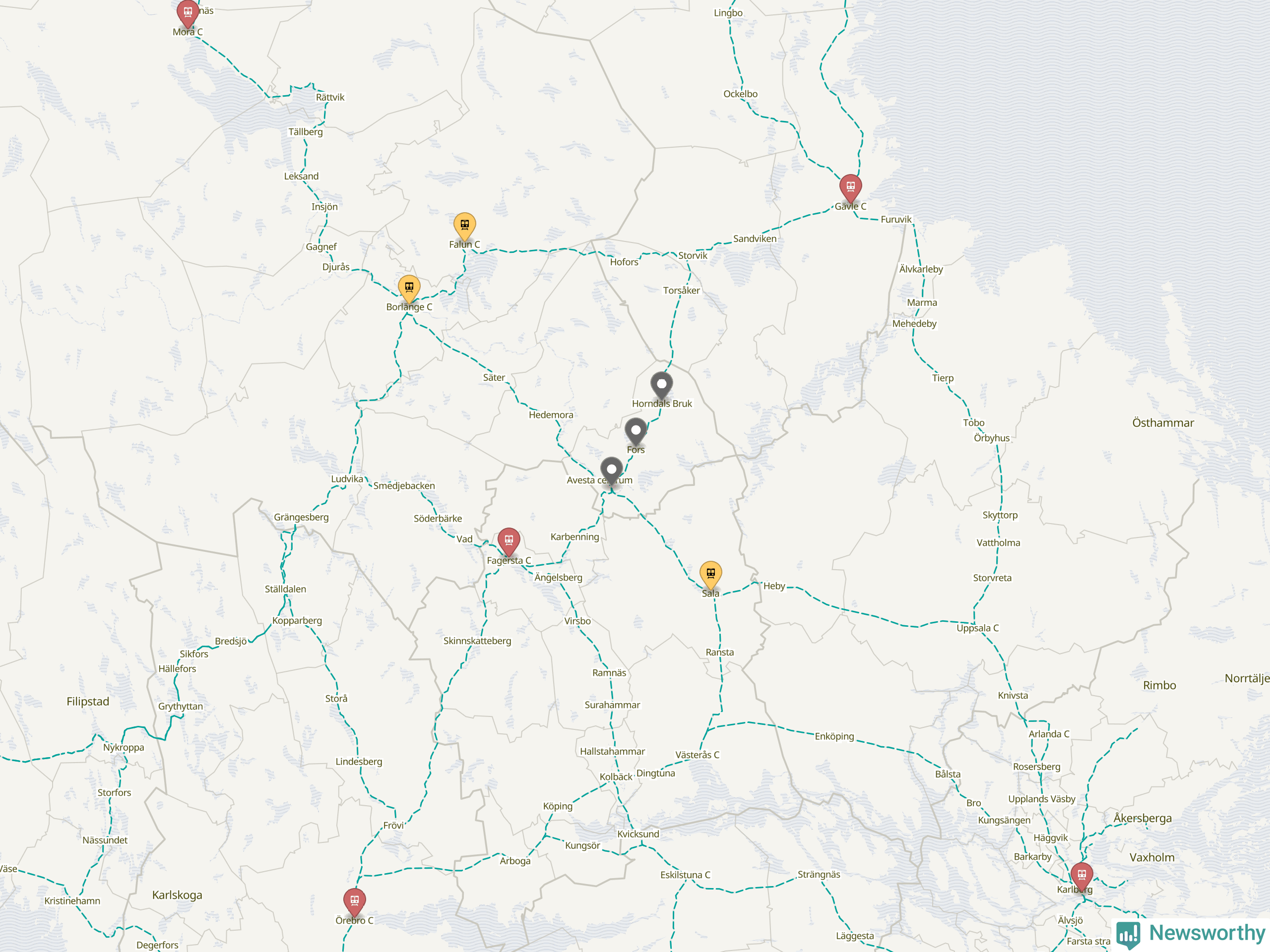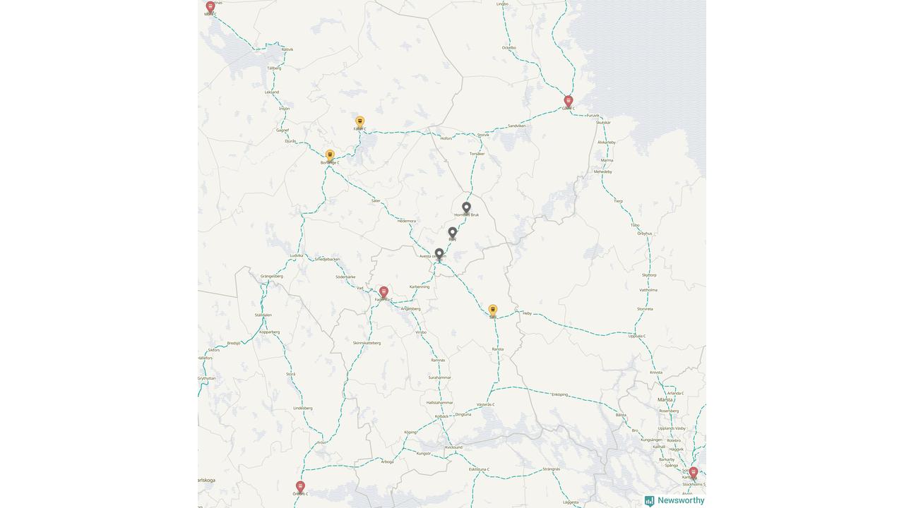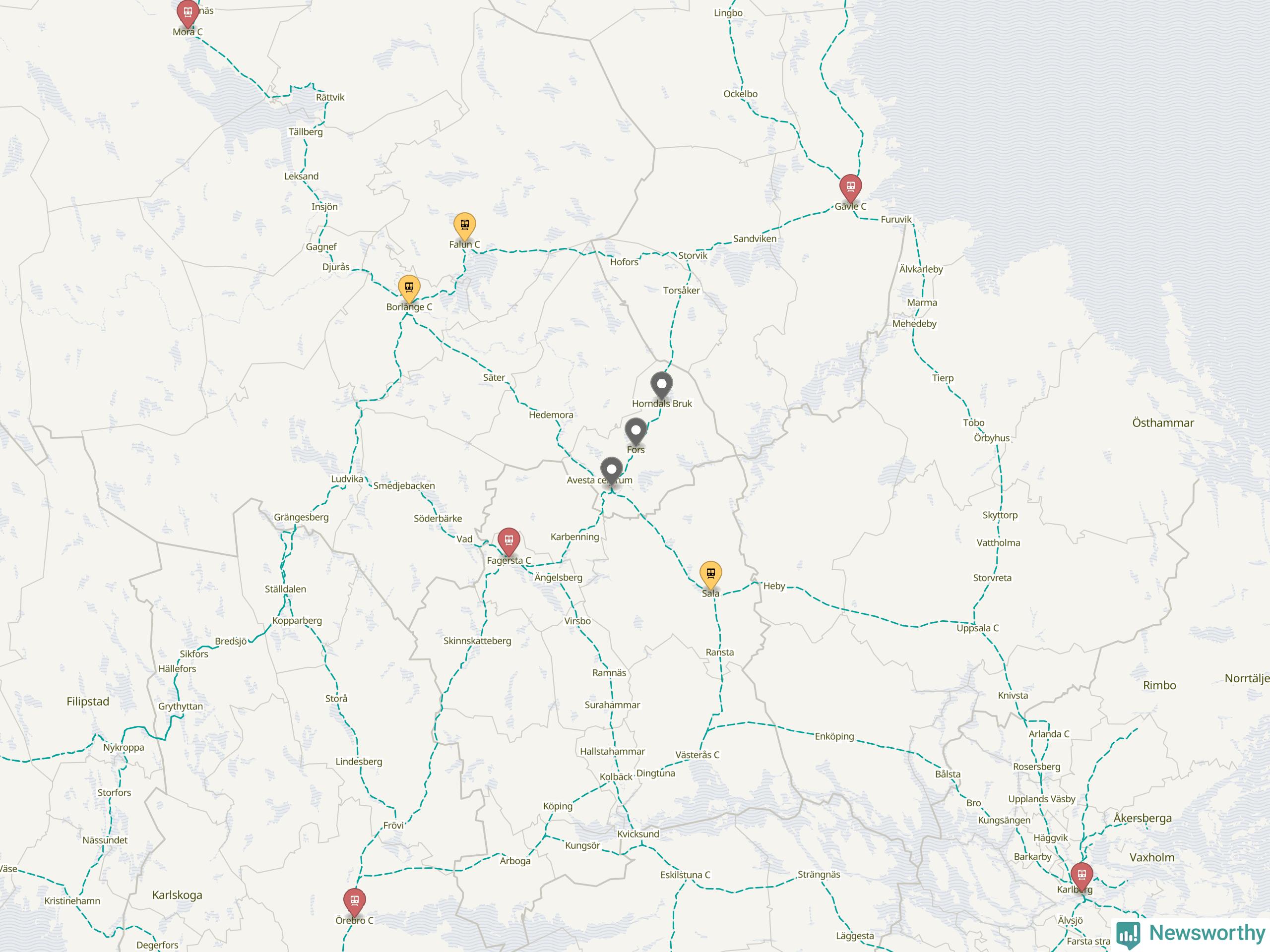 Kartdata från Mapbox, Newsworthy, OpenStreetMap och Trafikverket. Uppgifter om sträckor med passagerartrafik från jarnvag.net.