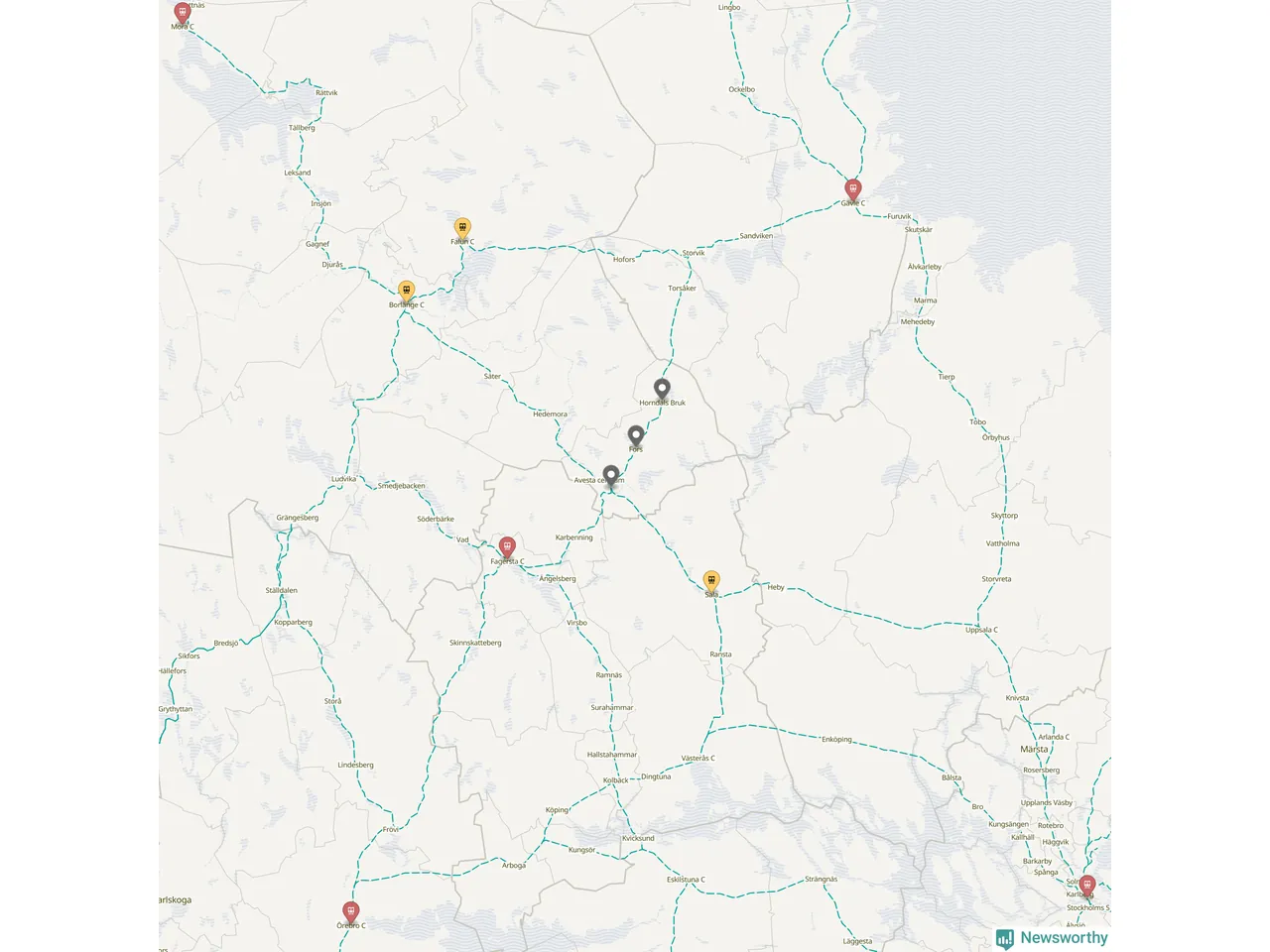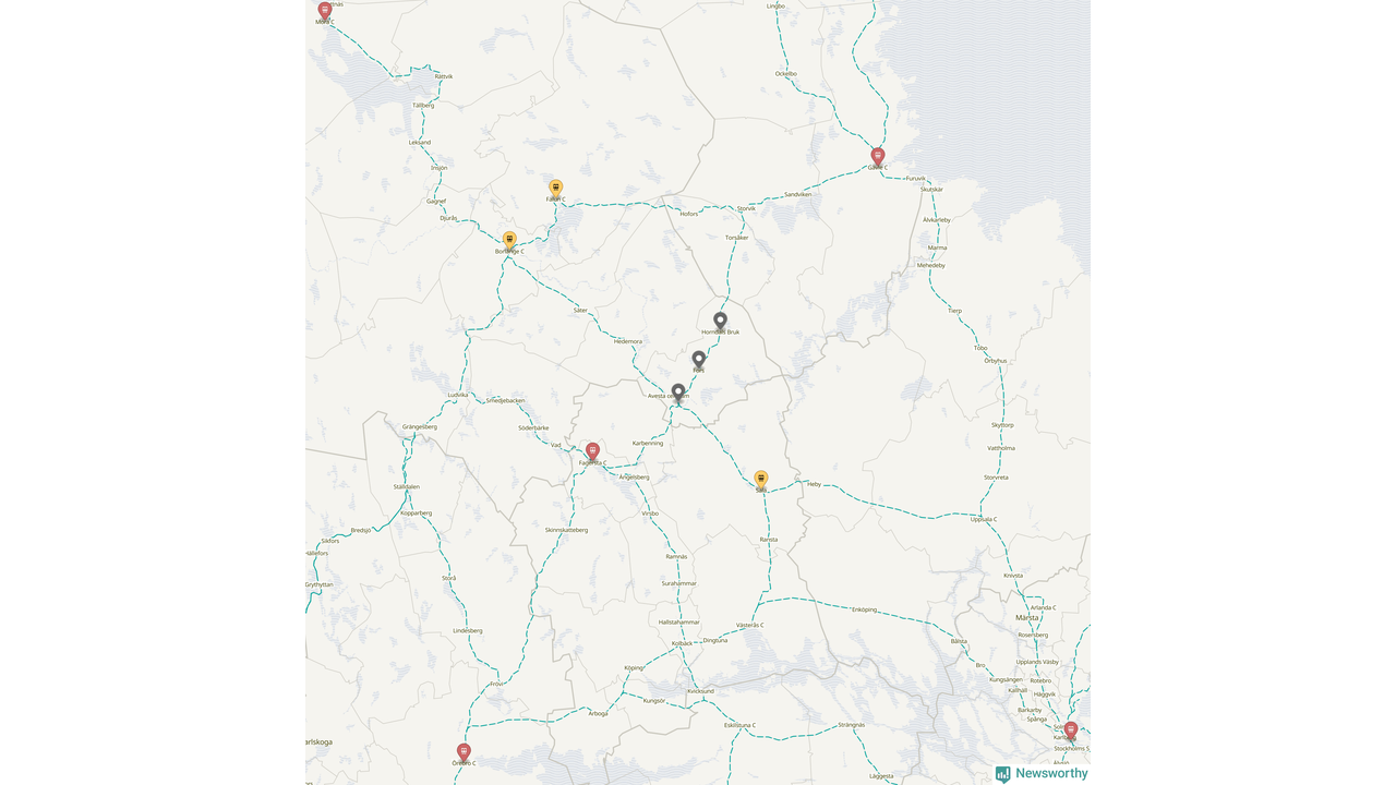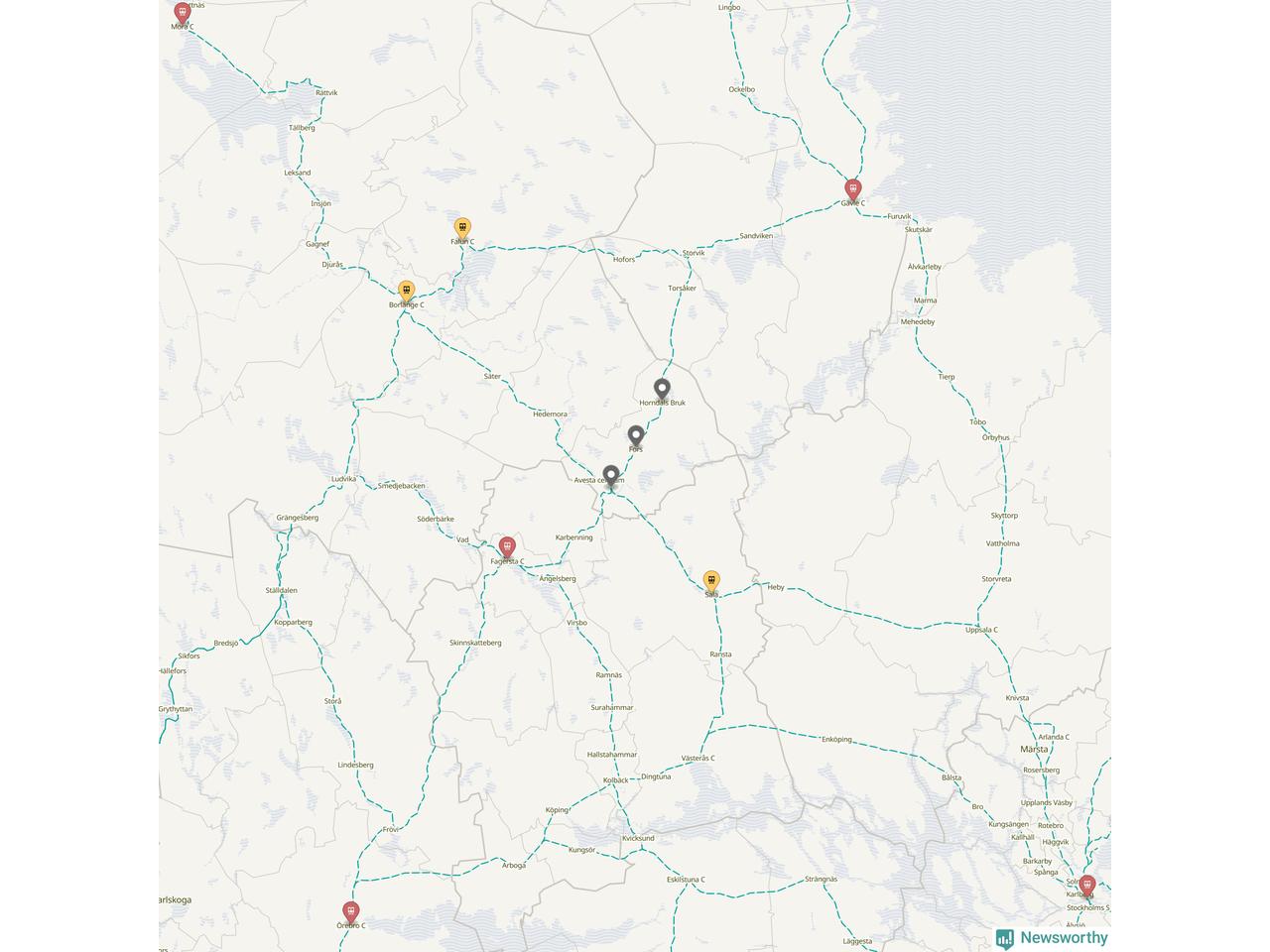 Kartdata från Mapbox, Newsworthy, OpenStreetMap och Trafikverket. Uppgifter om sträckor med passagerartrafik från jarnvag.net.