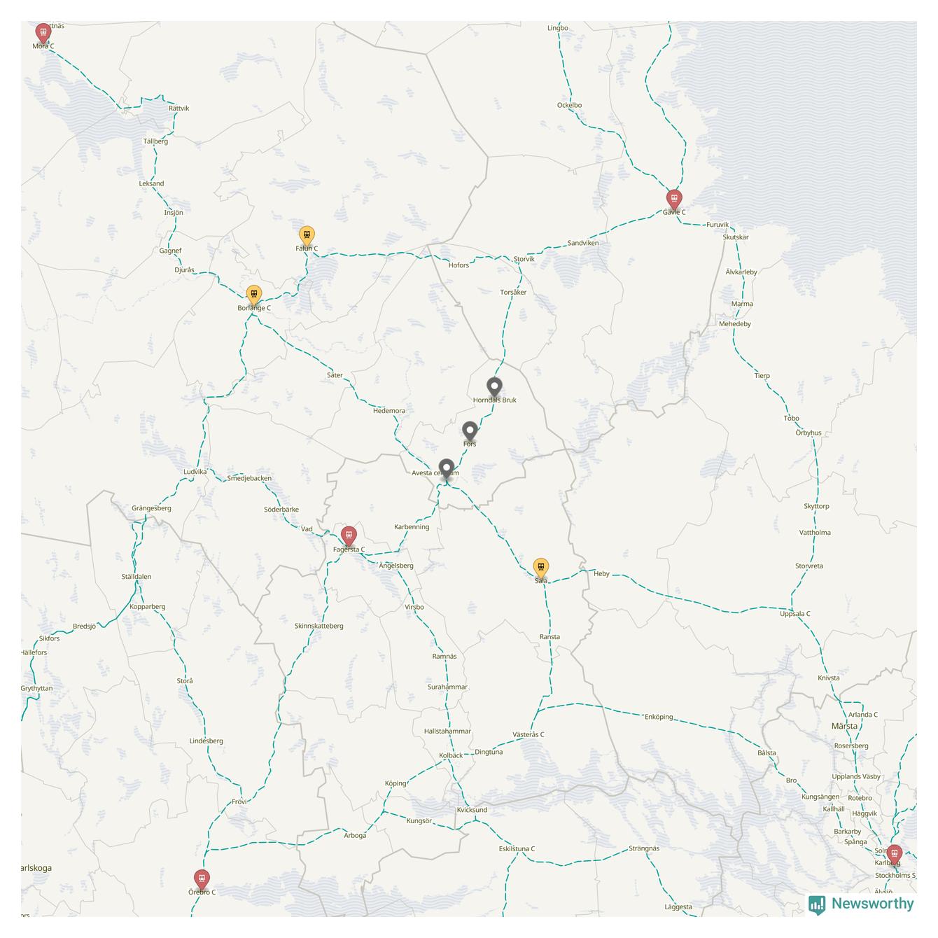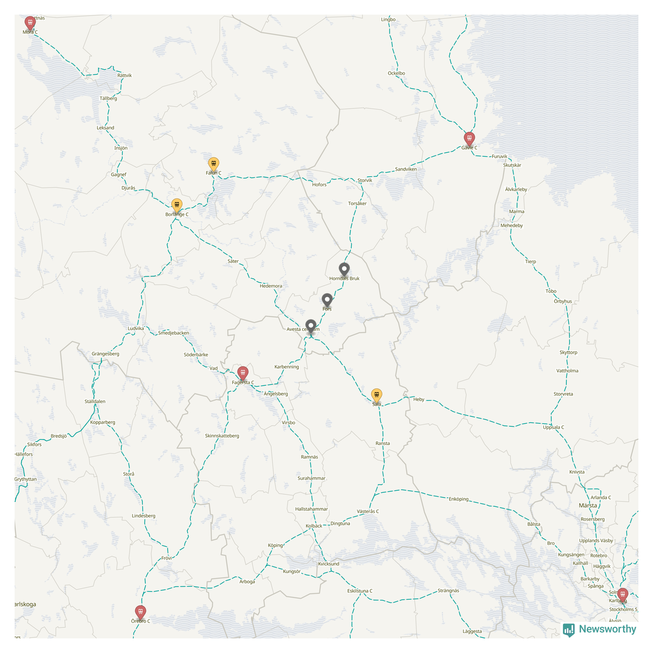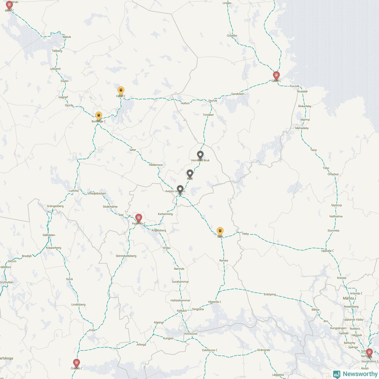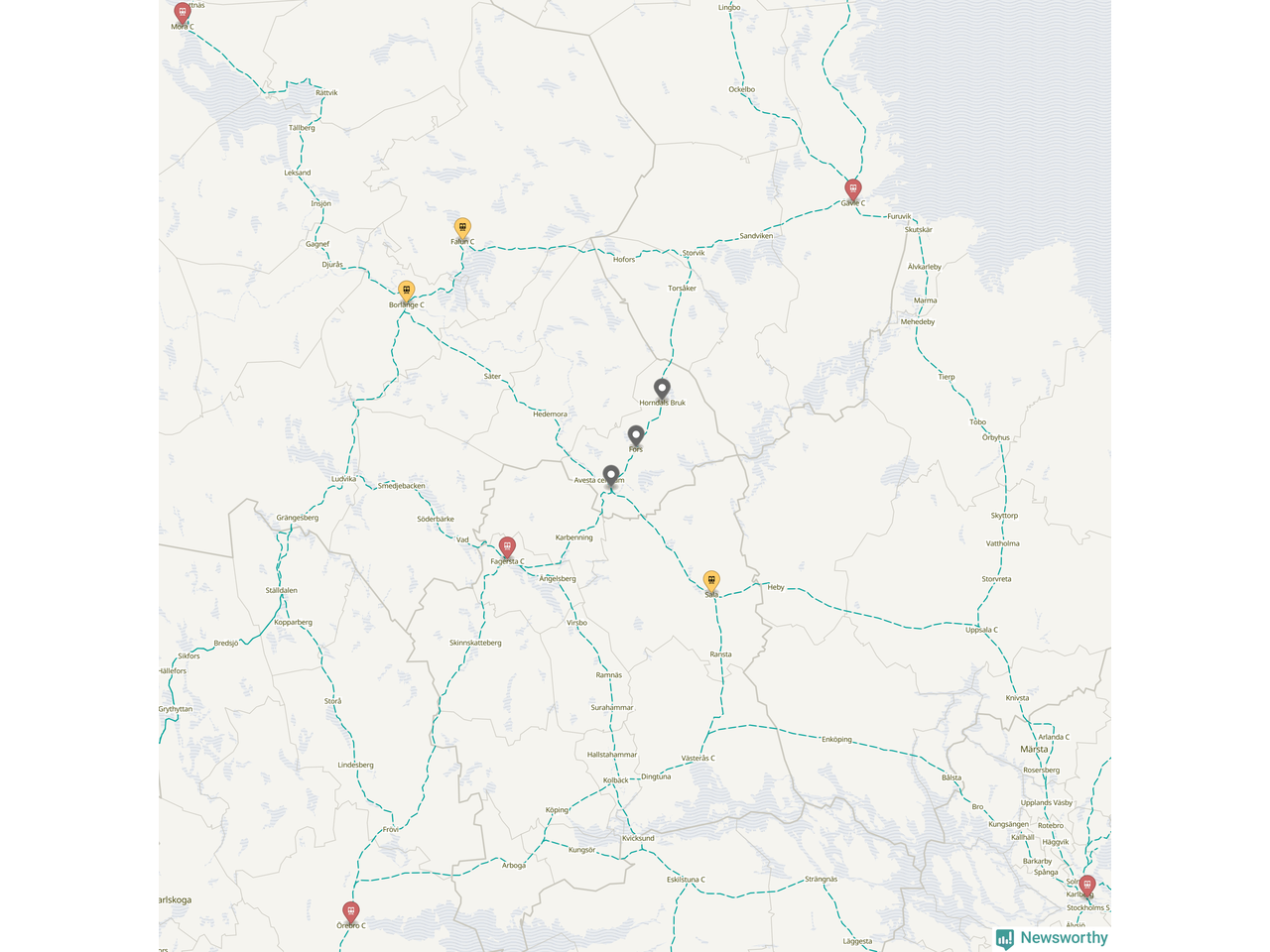 Kartdata från Mapbox, Newsworthy, OpenStreetMap och Trafikverket. Uppgifter om sträckor med passagerartrafik från jarnvag.net.