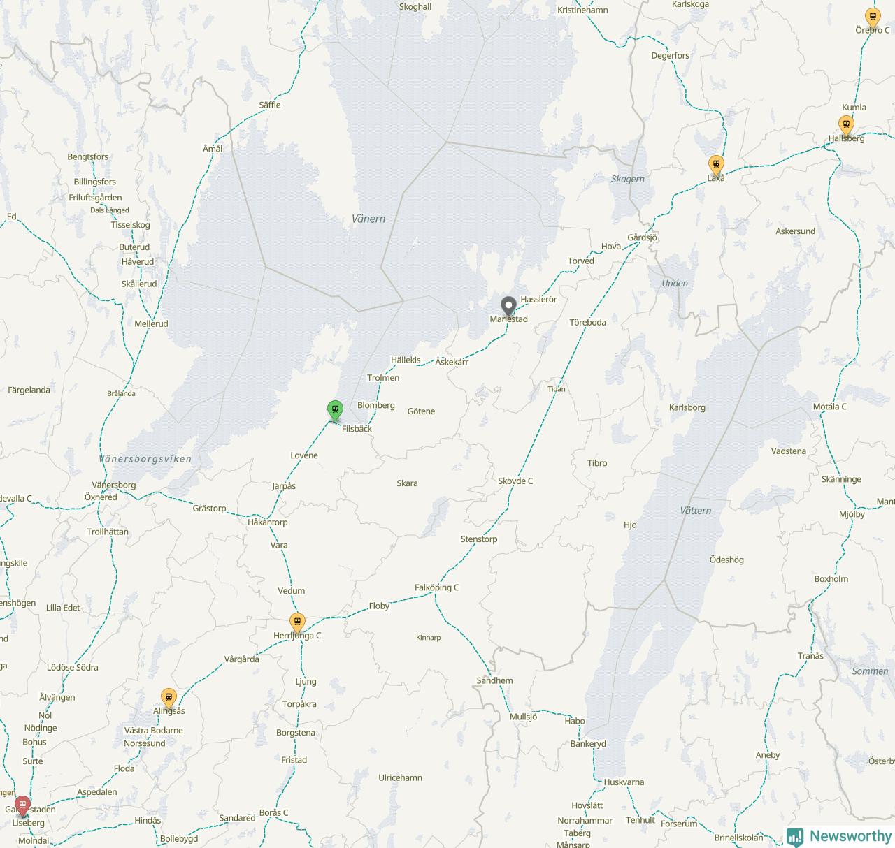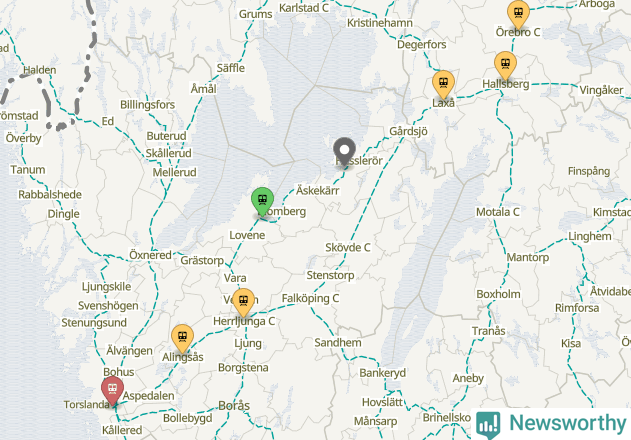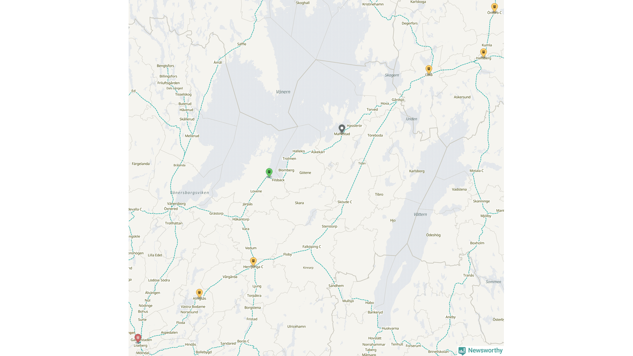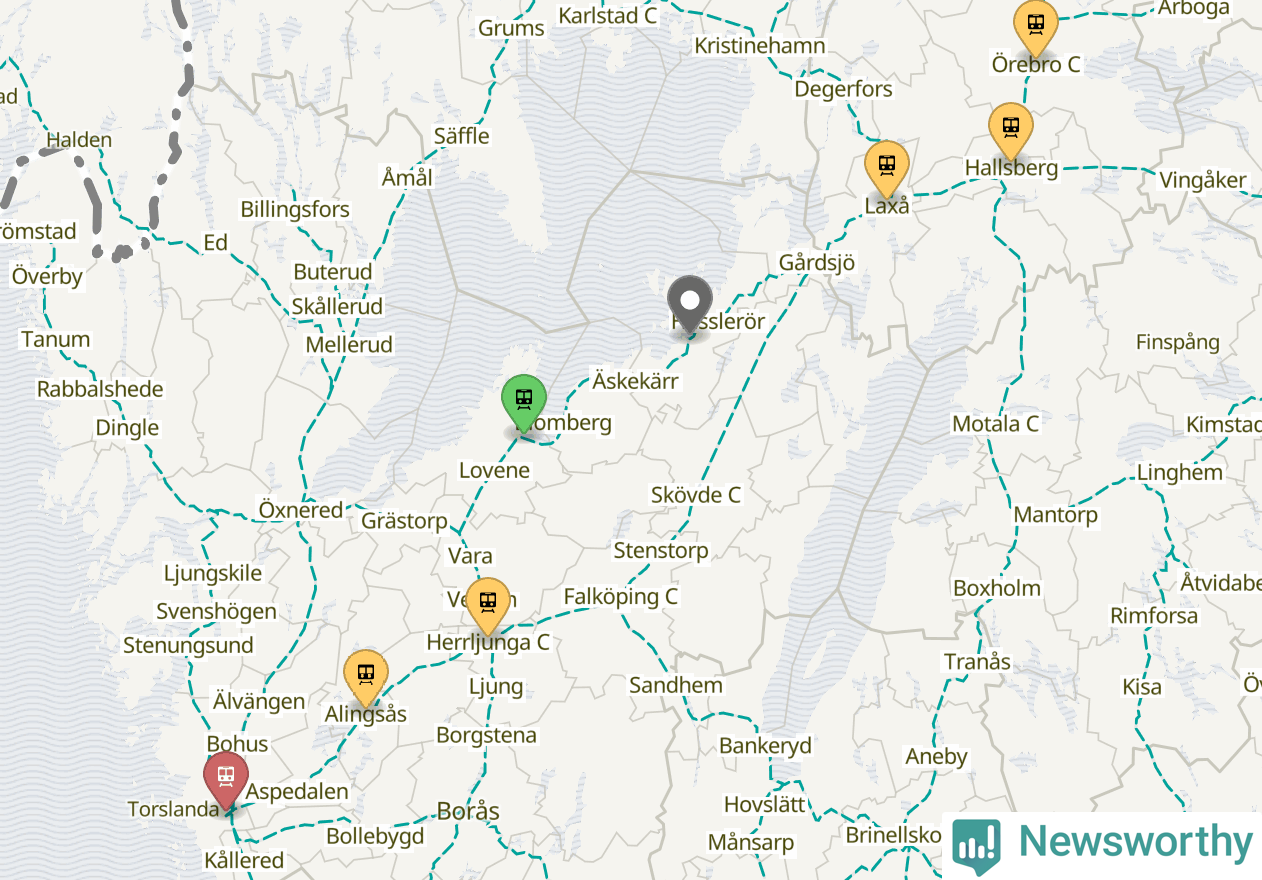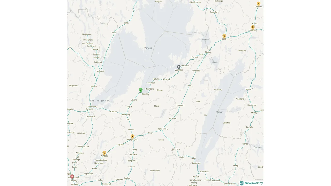 Kartdata från Mapbox, Newsworthy, OpenStreetMap och Trafikverket. Uppgifter om sträckor med passagerartrafik från jarnvag.net.